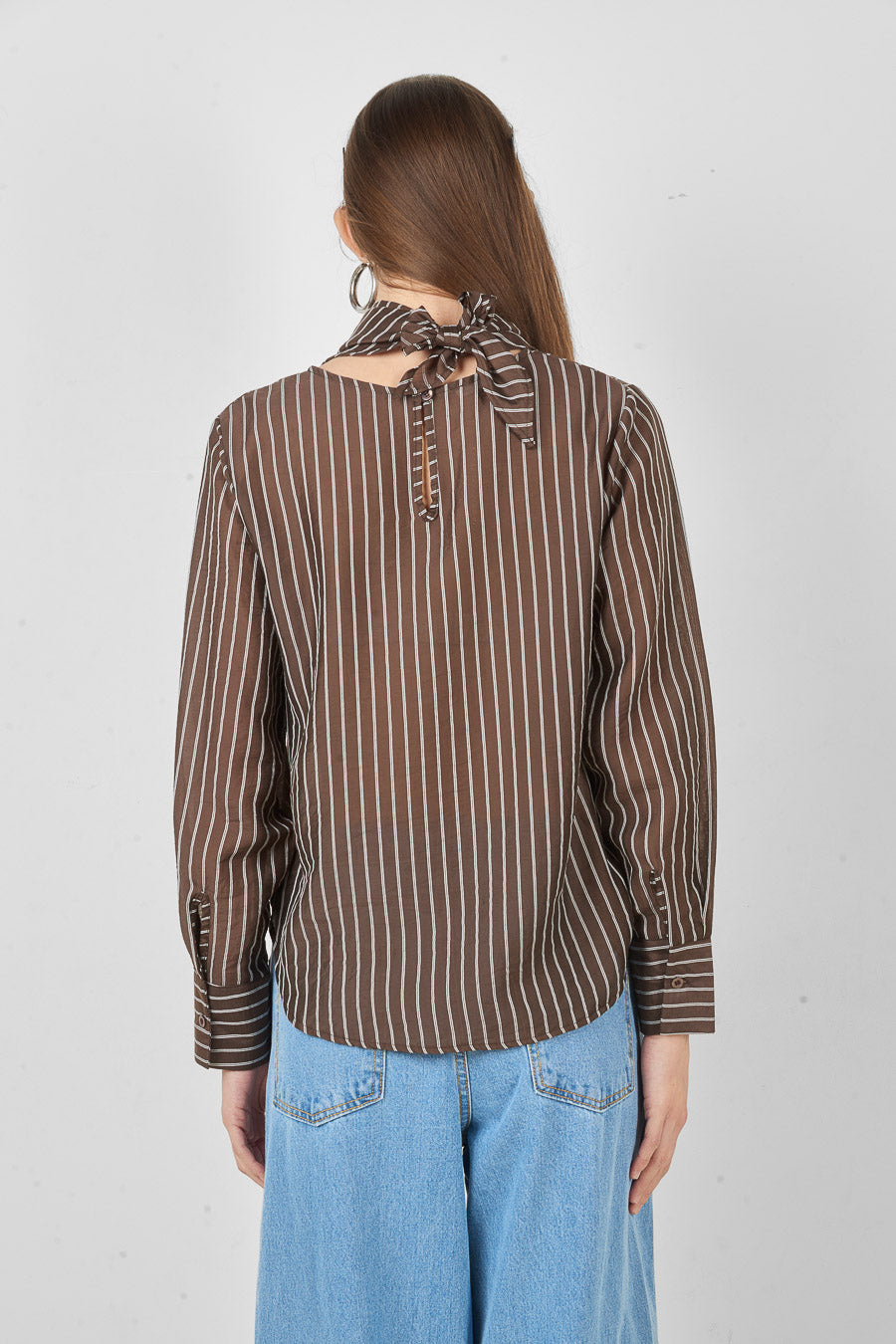 - بلوزة بأكمام طويلة مزودة بنمط شريط عمودي