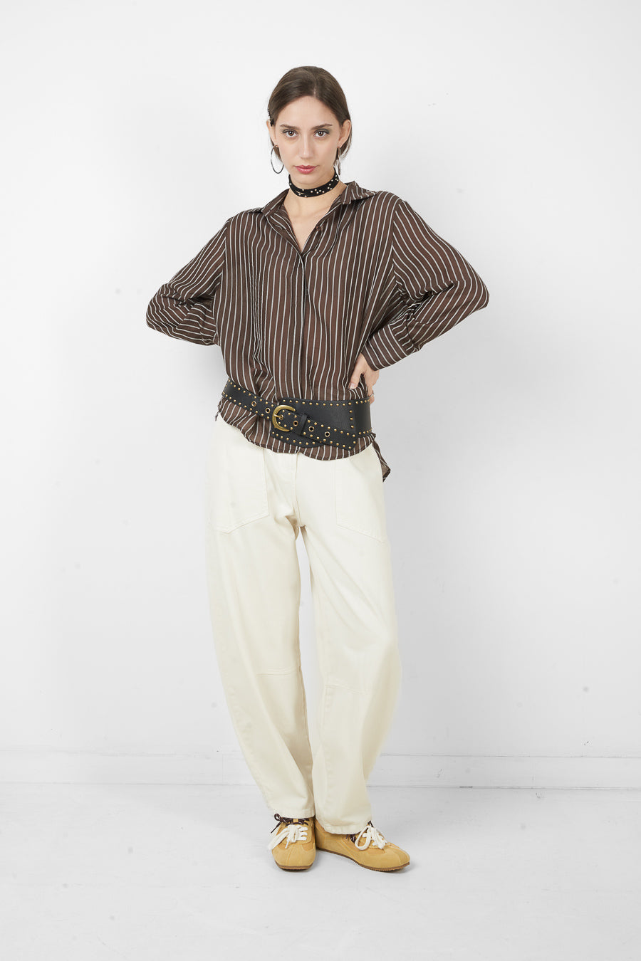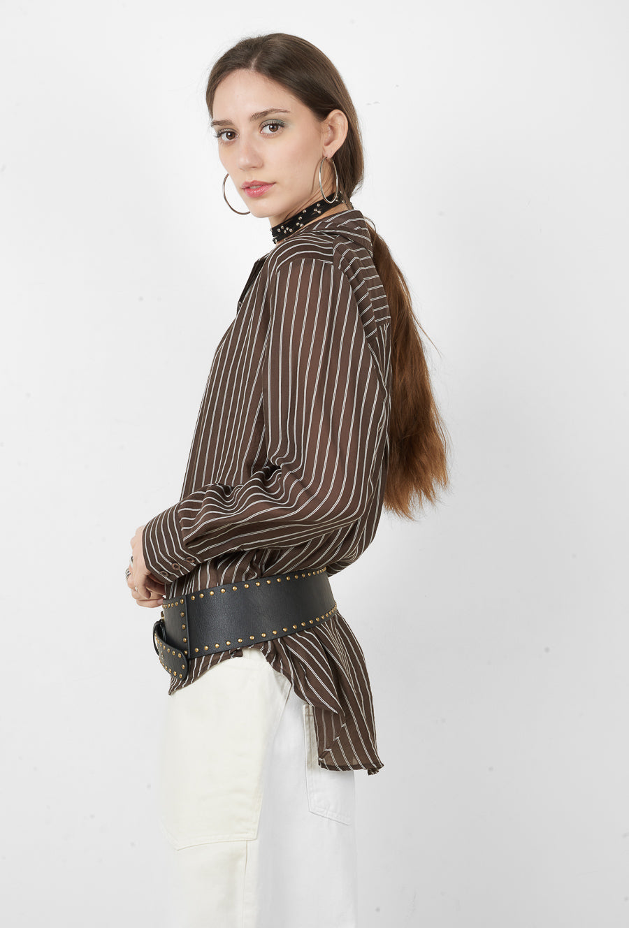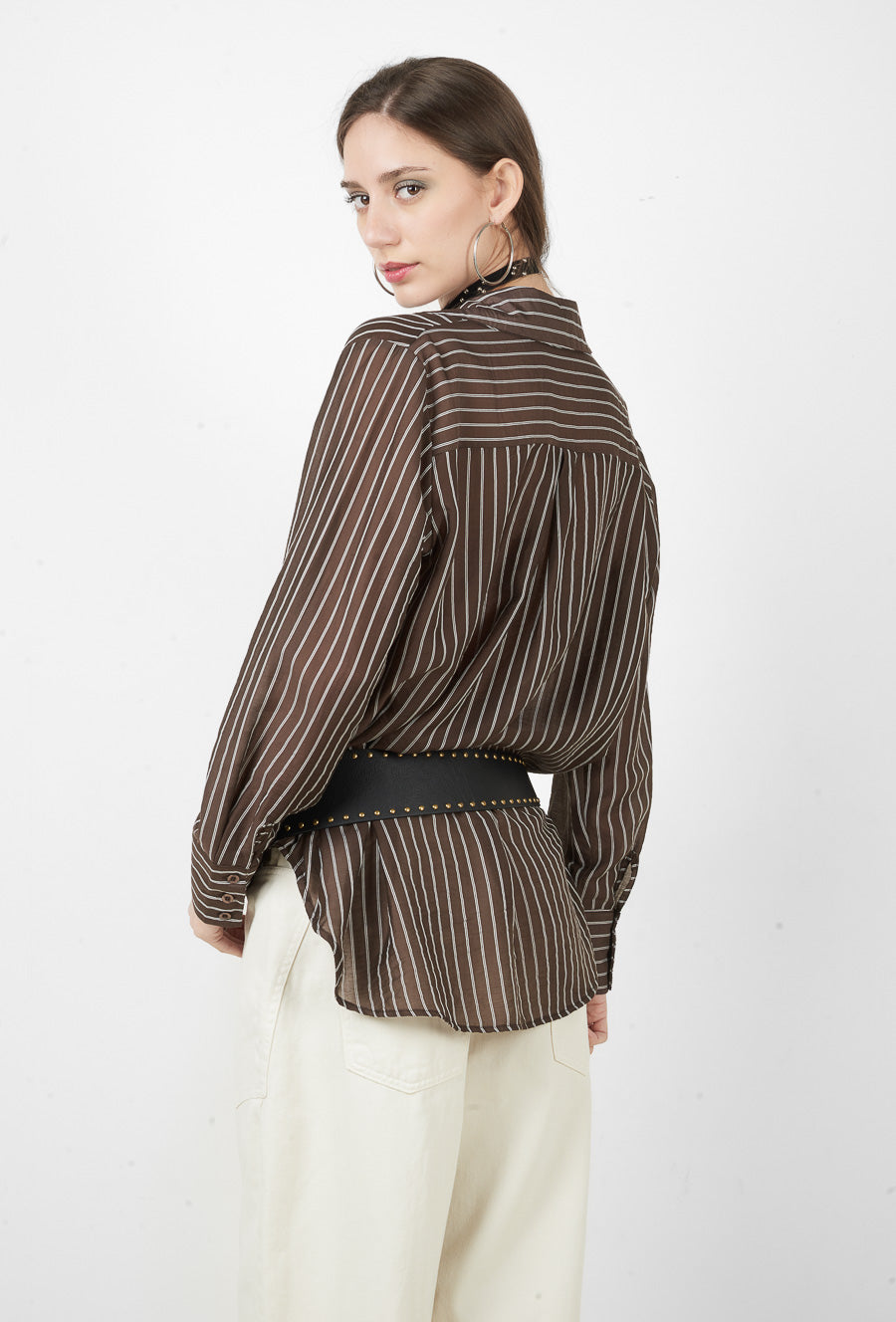 - قميص طويل الأكمام بنمط خطوط عمودية