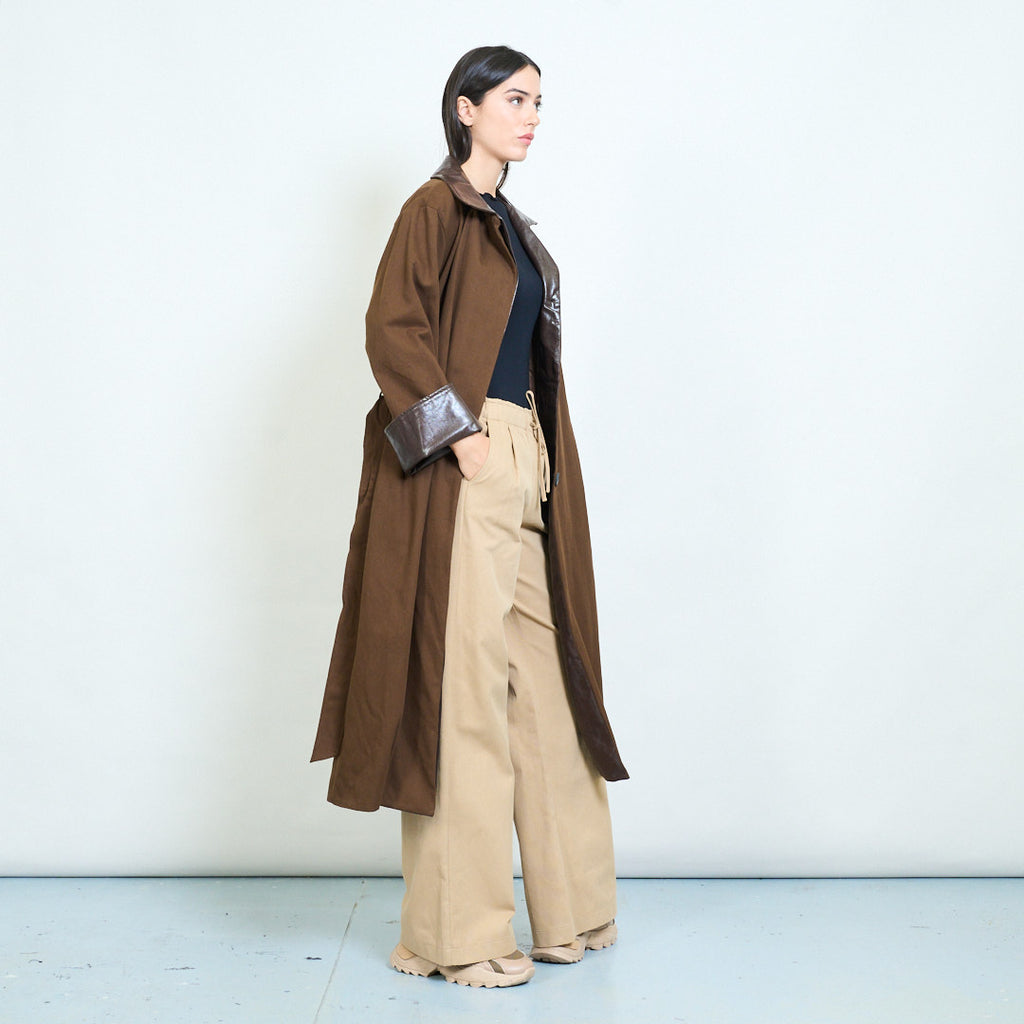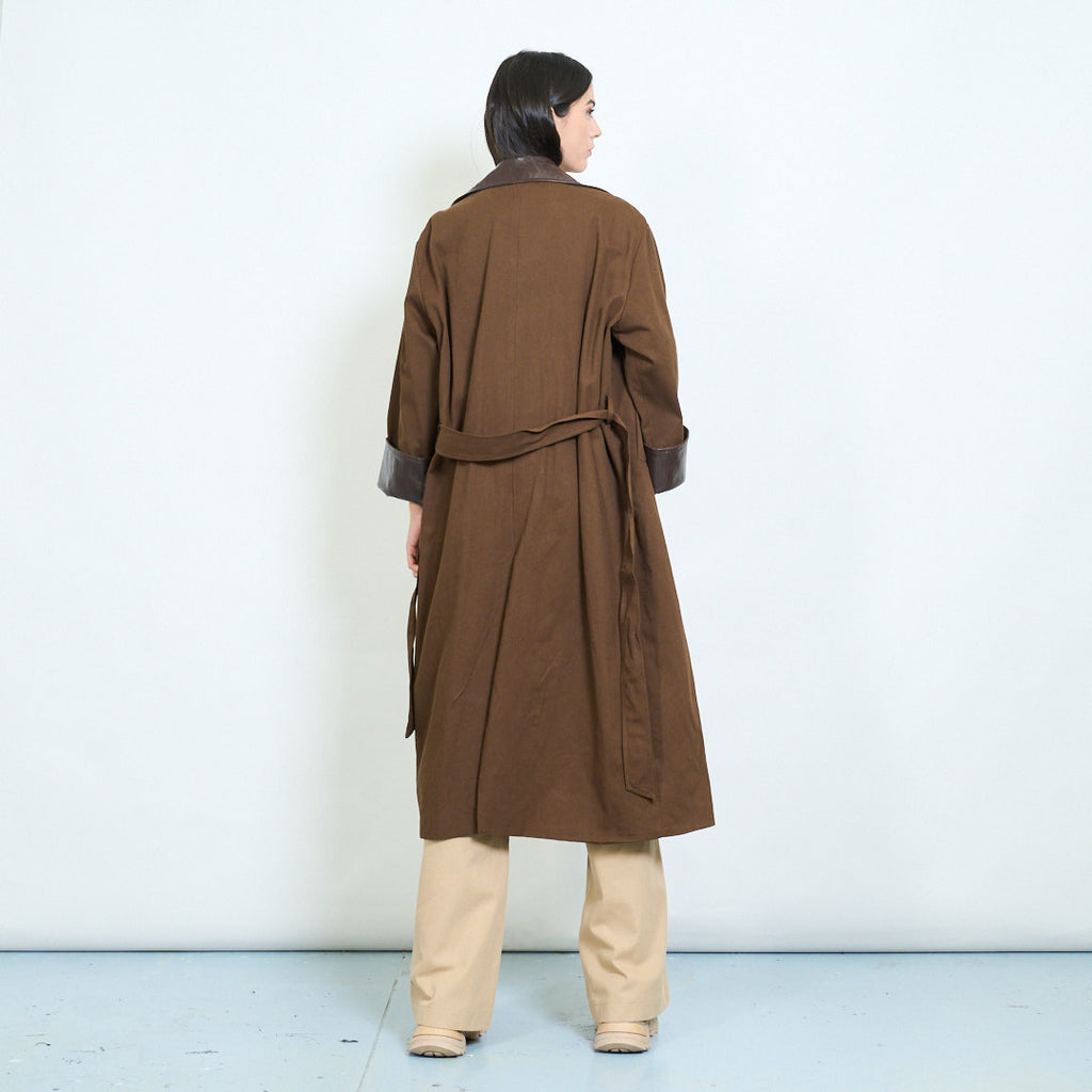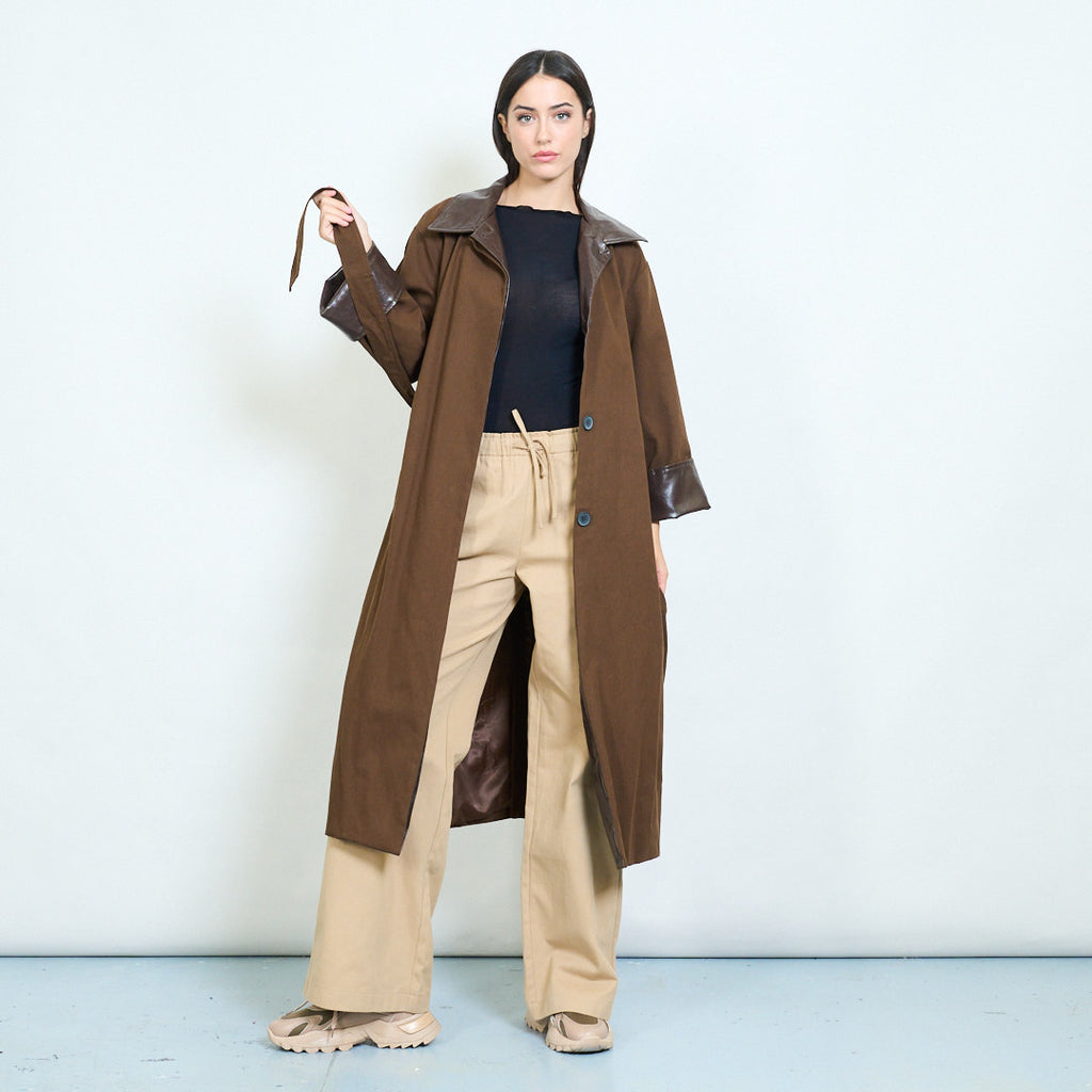 • ياقة جلدية متباينة وأساور أكمام تضيف لمسة عصرية