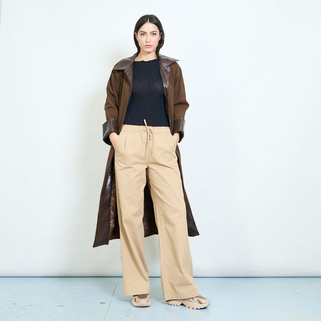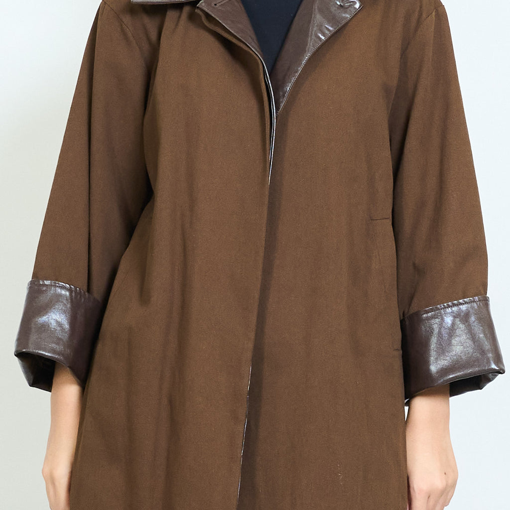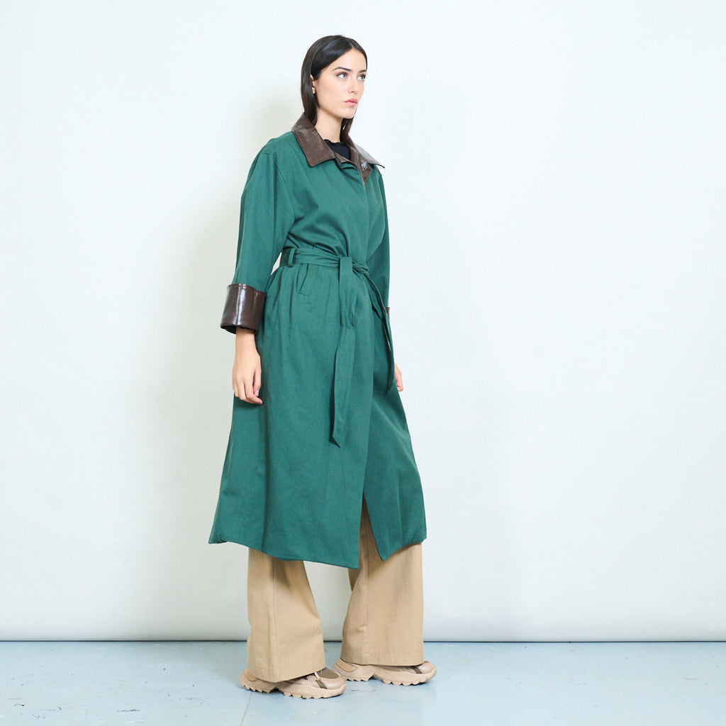 • ياقة جلدية متباينة وأساور أكمام تضيف لمسة عصرية