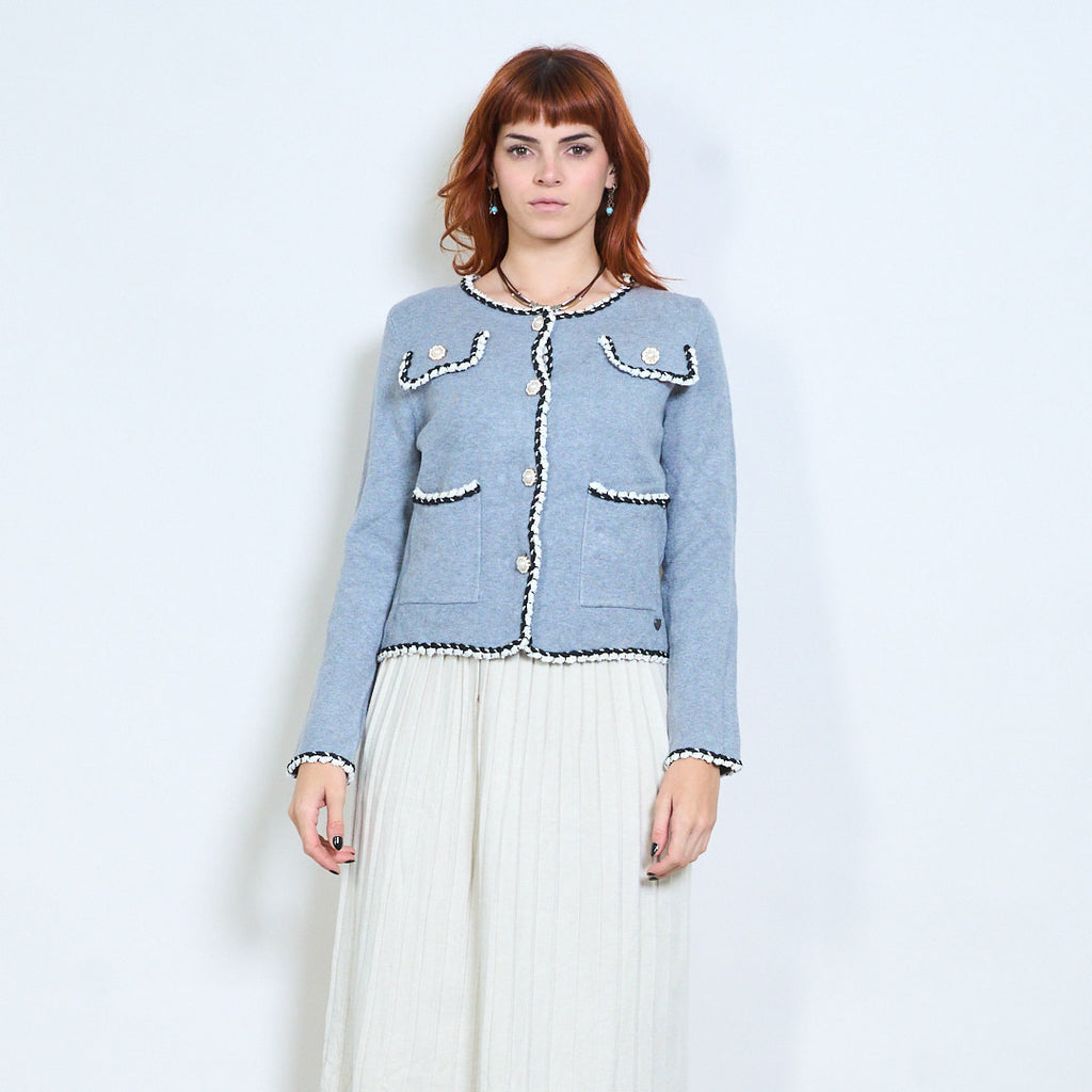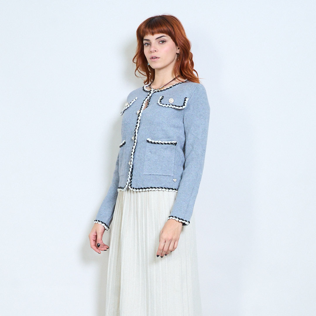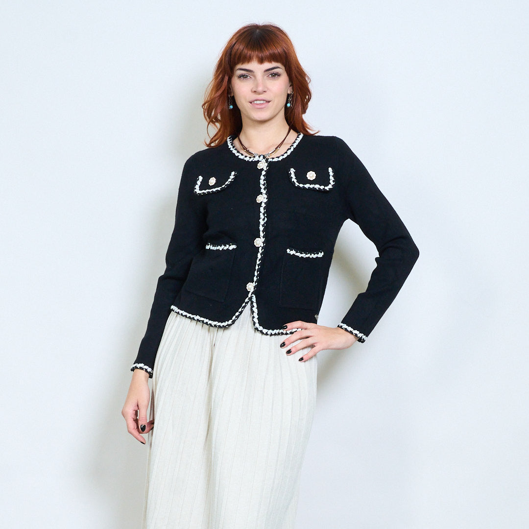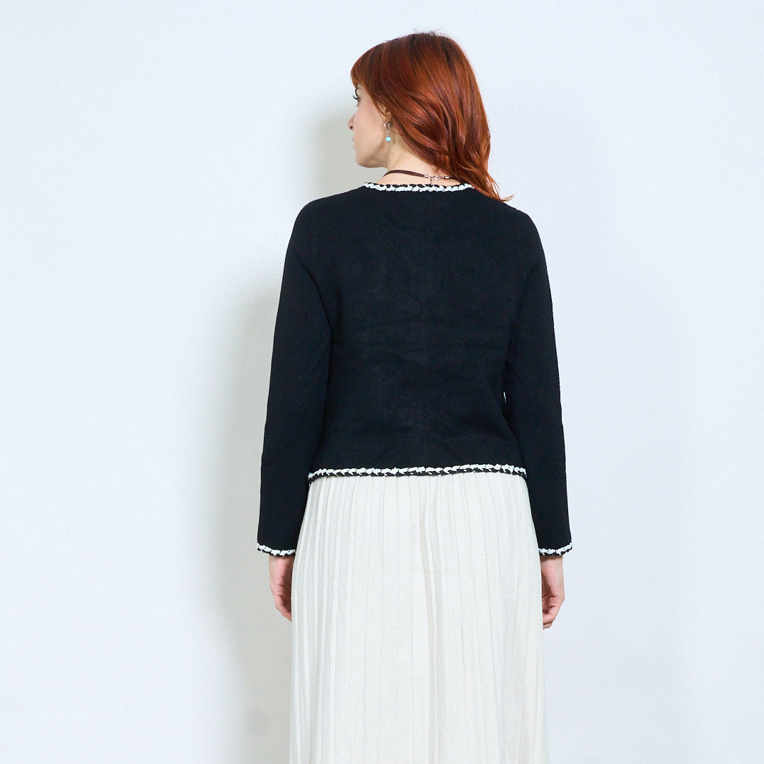 سترة صوفية محبوكة بأزرار لؤلؤية متباينة اللون بالجملة