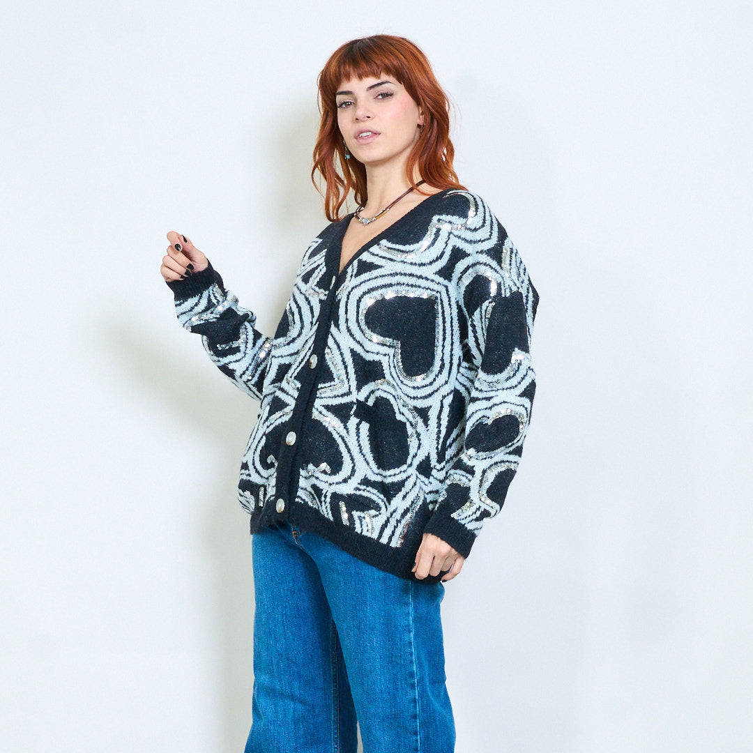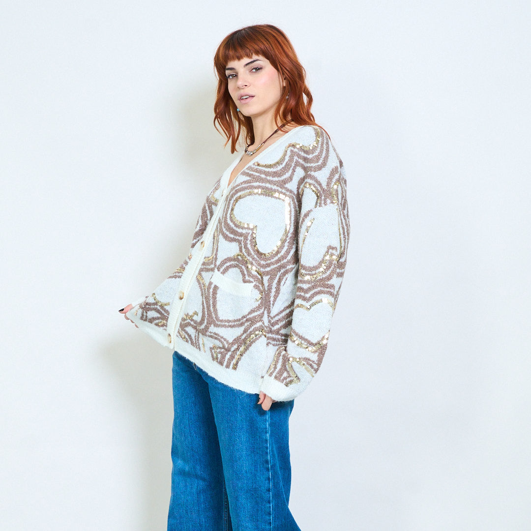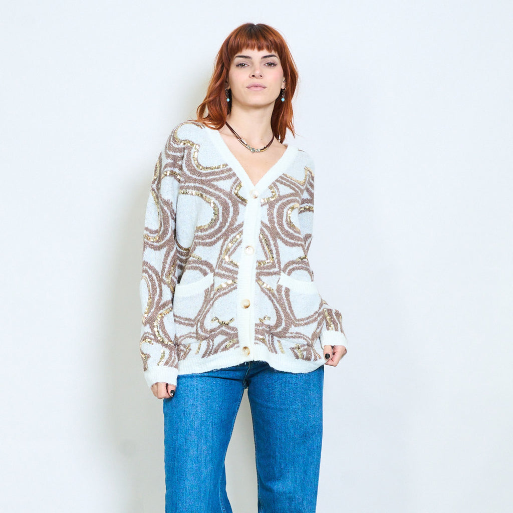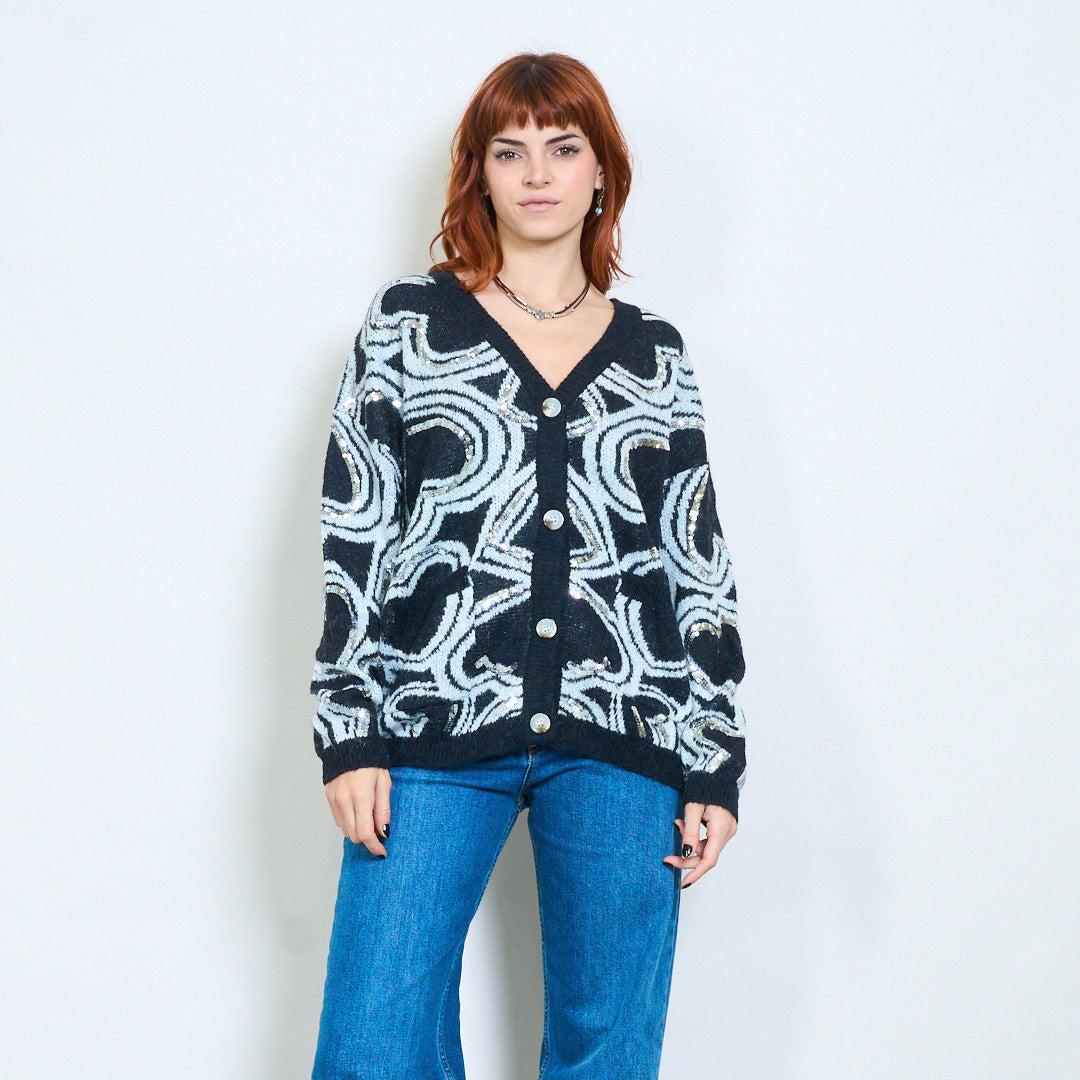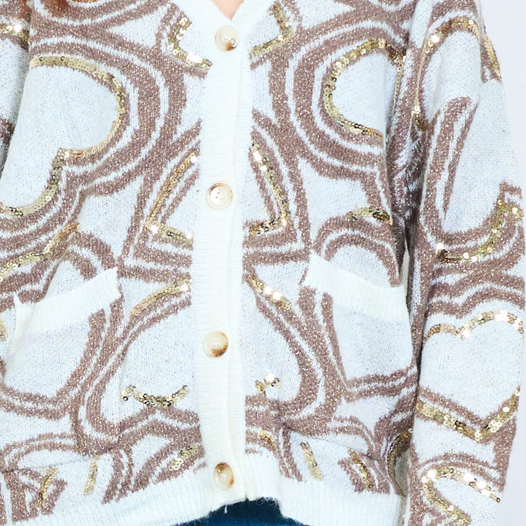 سترة محبوكة بأزرار أمامية على شكل حرف V منقوشة بالترتر للبيع بالجملة