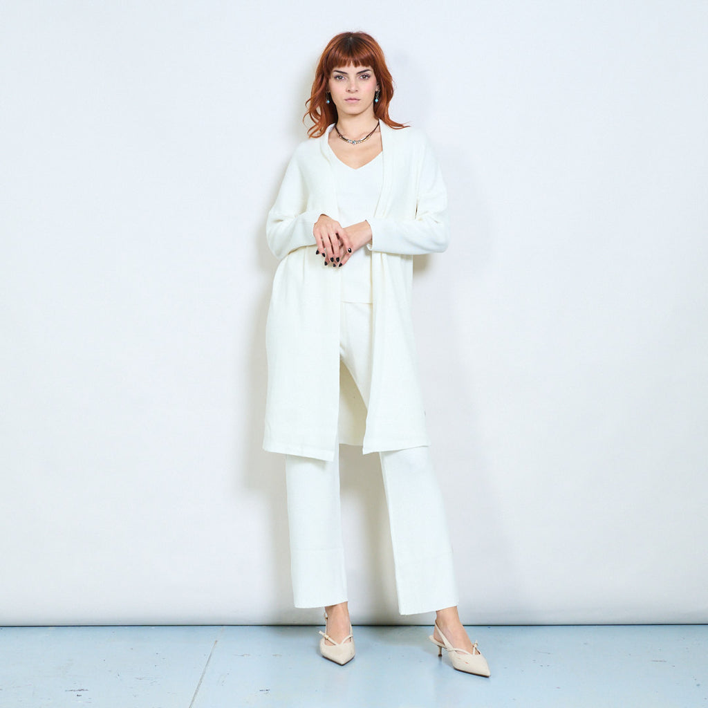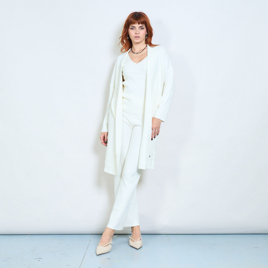 طقم سترة مضلعة مفتوحة من الأمام وصالة متماسكة واسعة الساق بالجملة