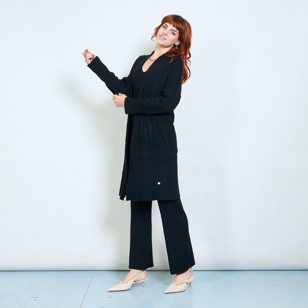 - سترة طويلة مفتوحة من الأمام توفر ثنية سهلة وطبقات مريحة
