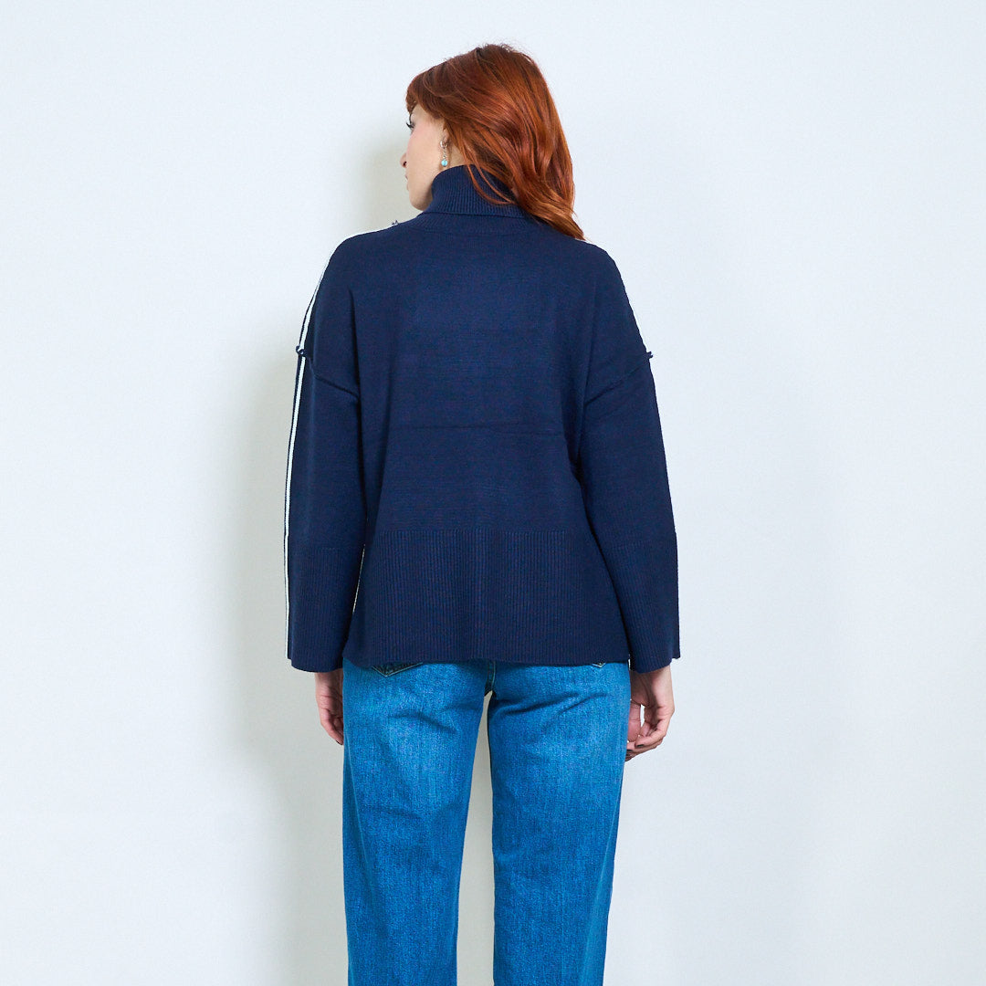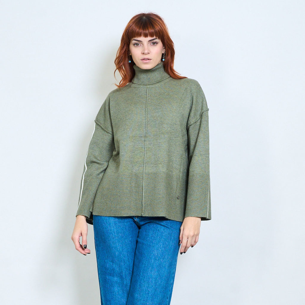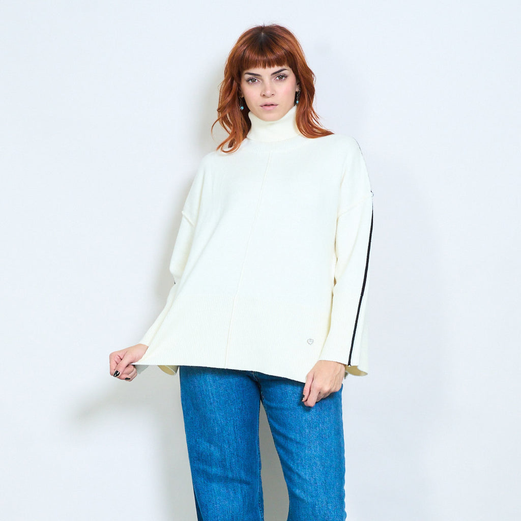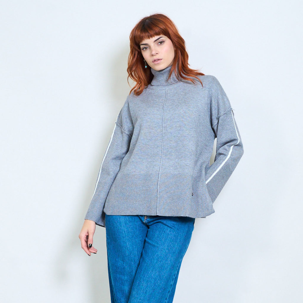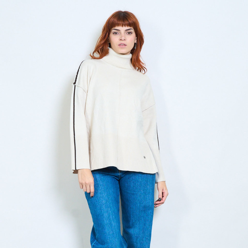 كم مخطط عالية الرقبة استرخاء محبوك السترة بالجملة