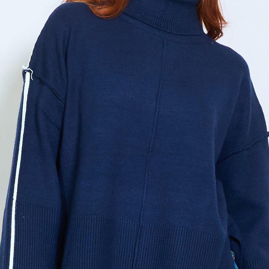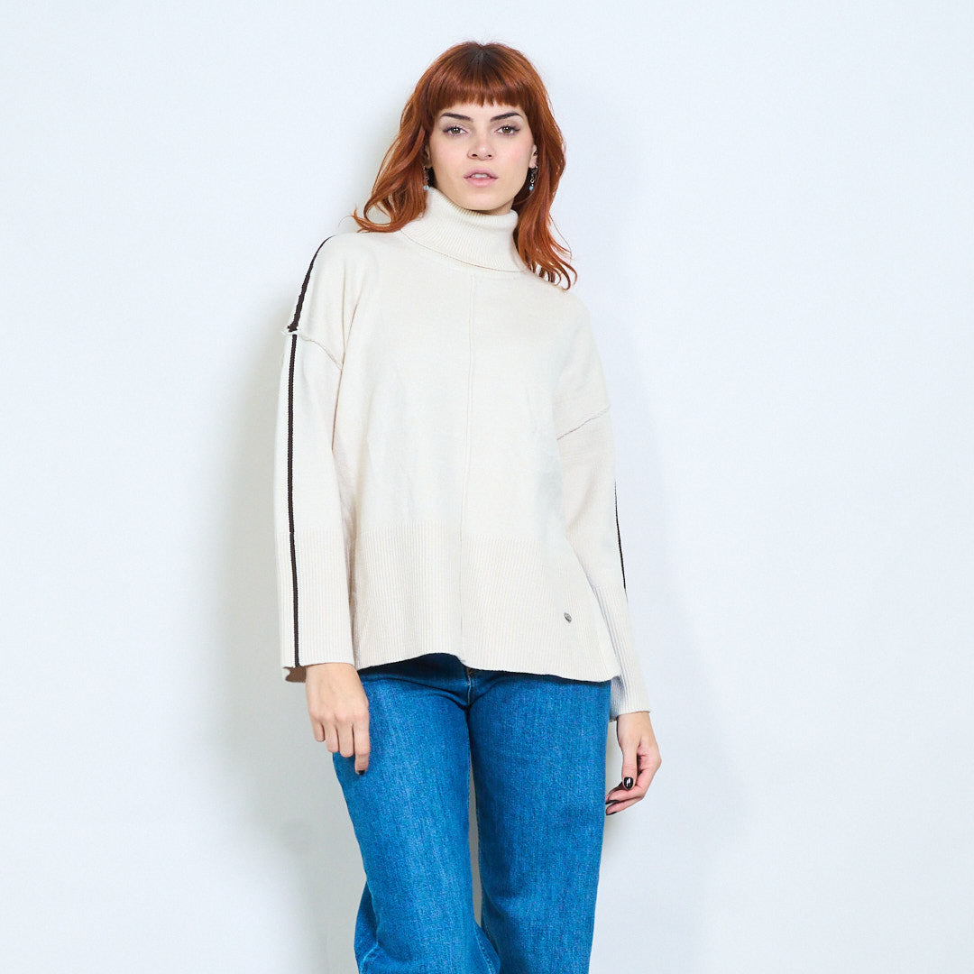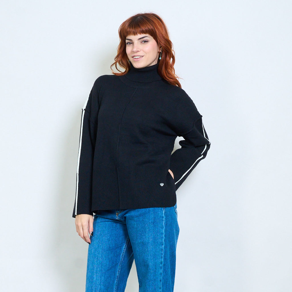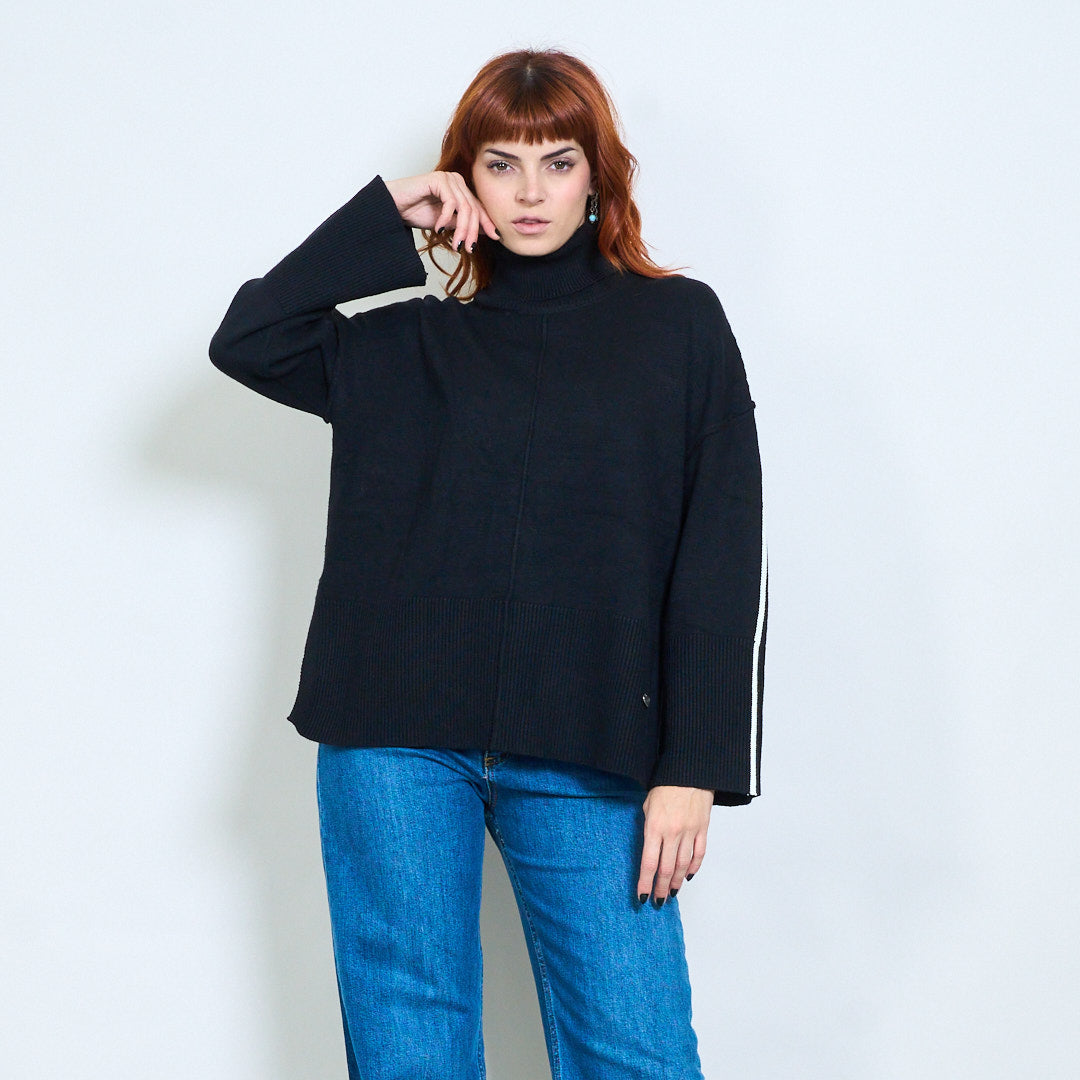 كم مخطط عالية الرقبة استرخاء محبوك السترة بالجملة