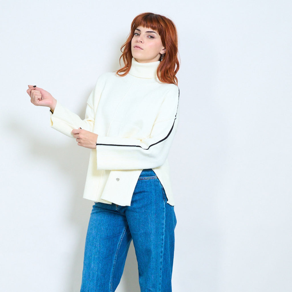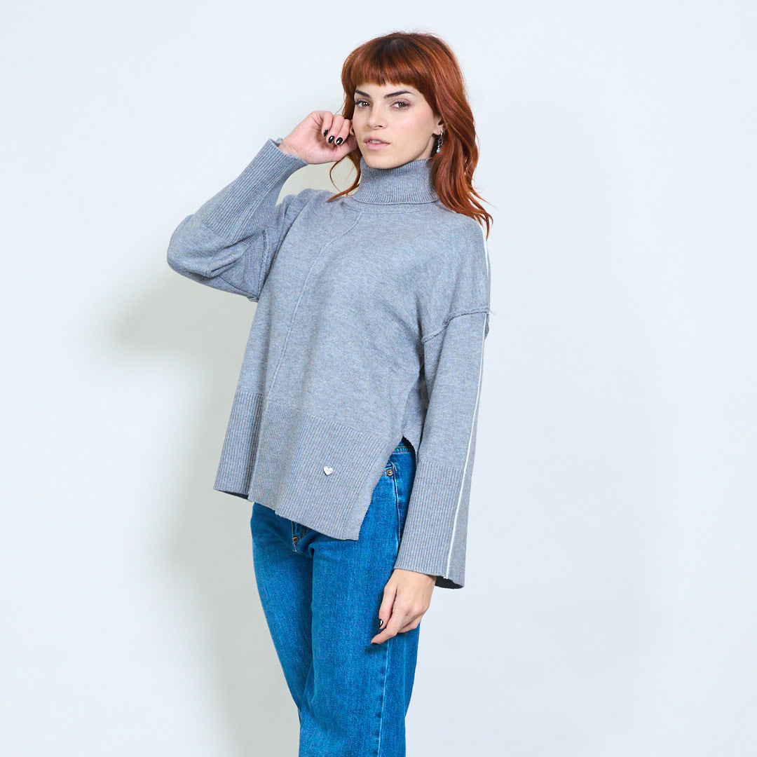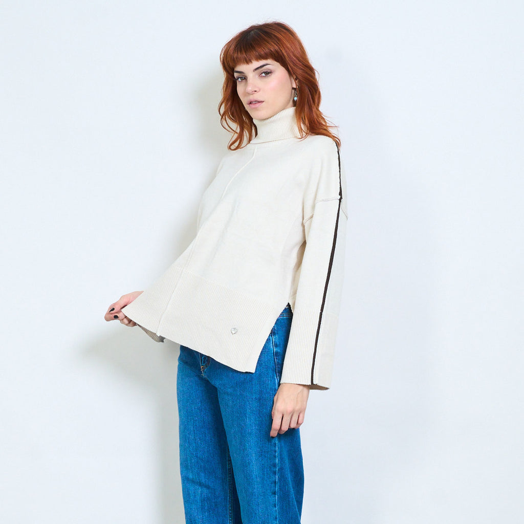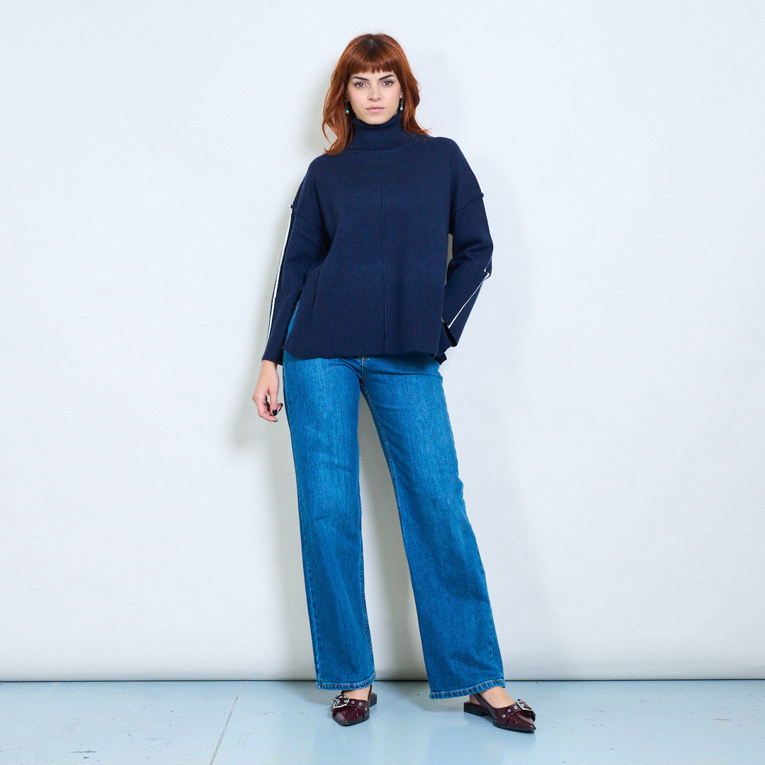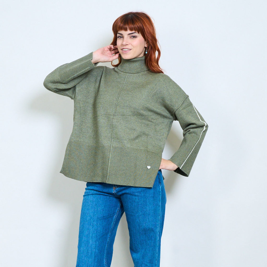 كم مخطط عالية الرقبة استرخاء محبوك السترة بالجملة