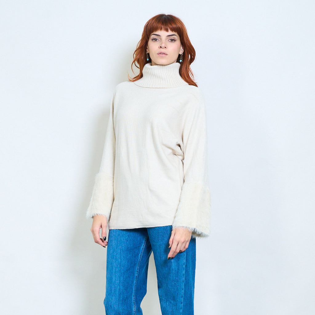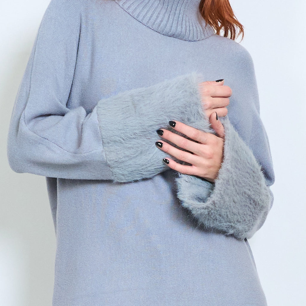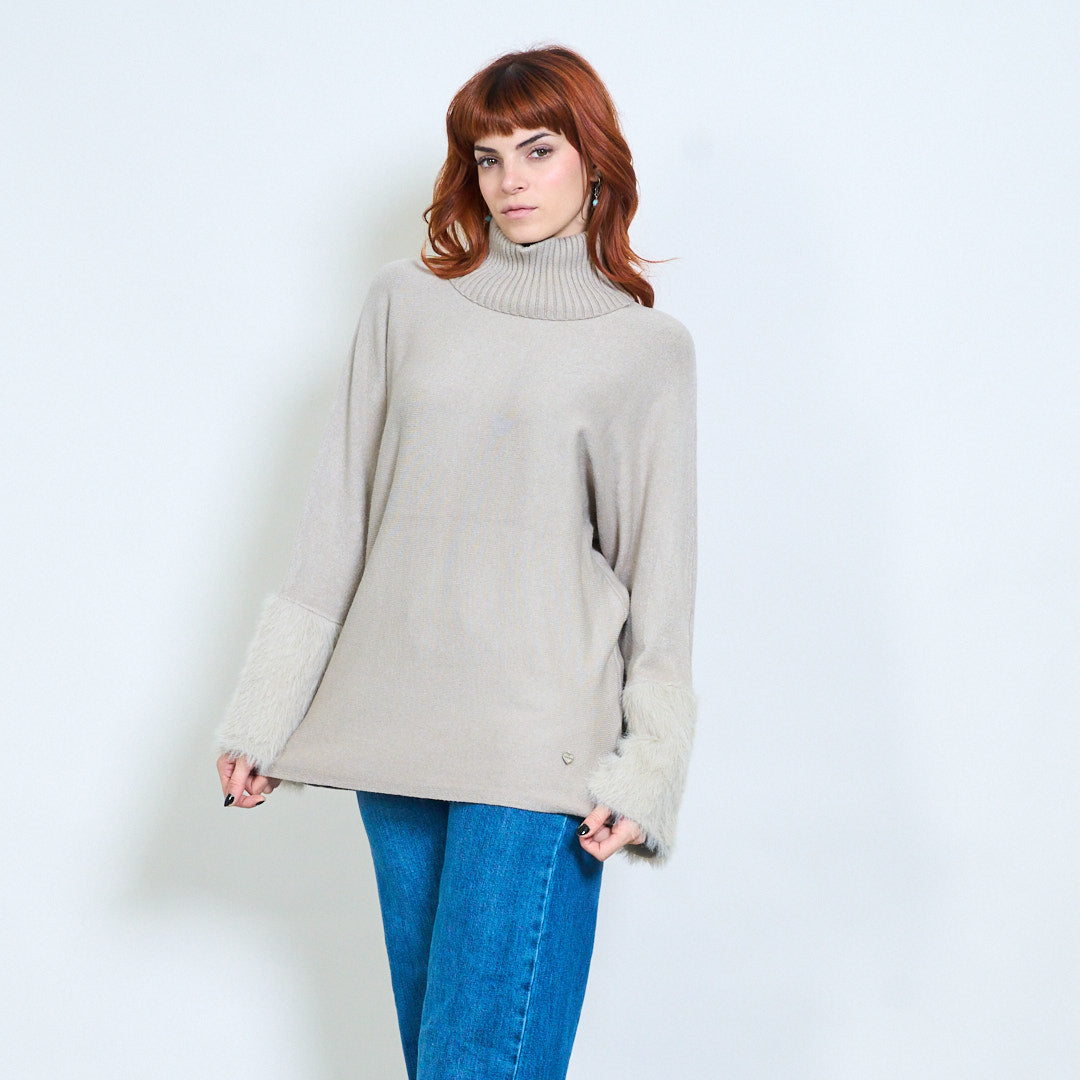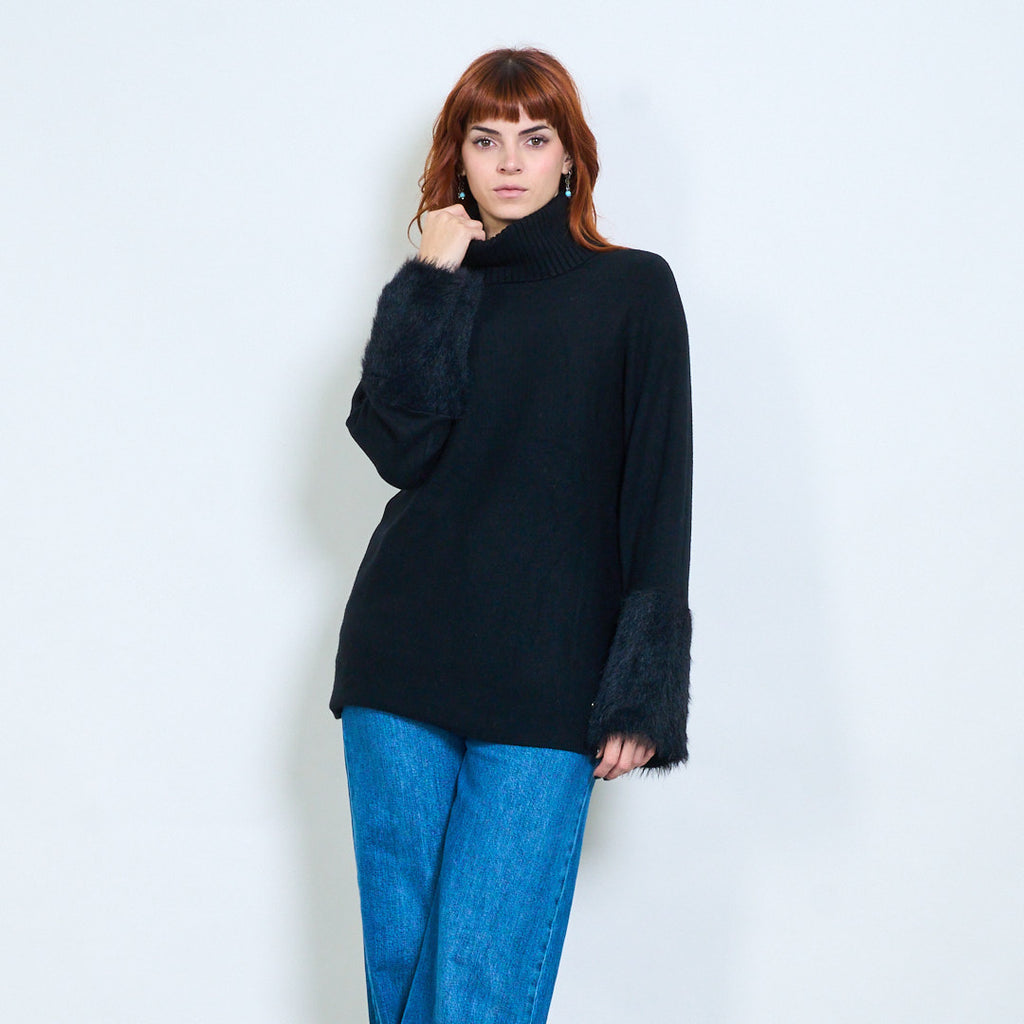 - أكمام واسعة تتميز بلمسات من الفرو الفخم لإضفاء لمسة فاخرة