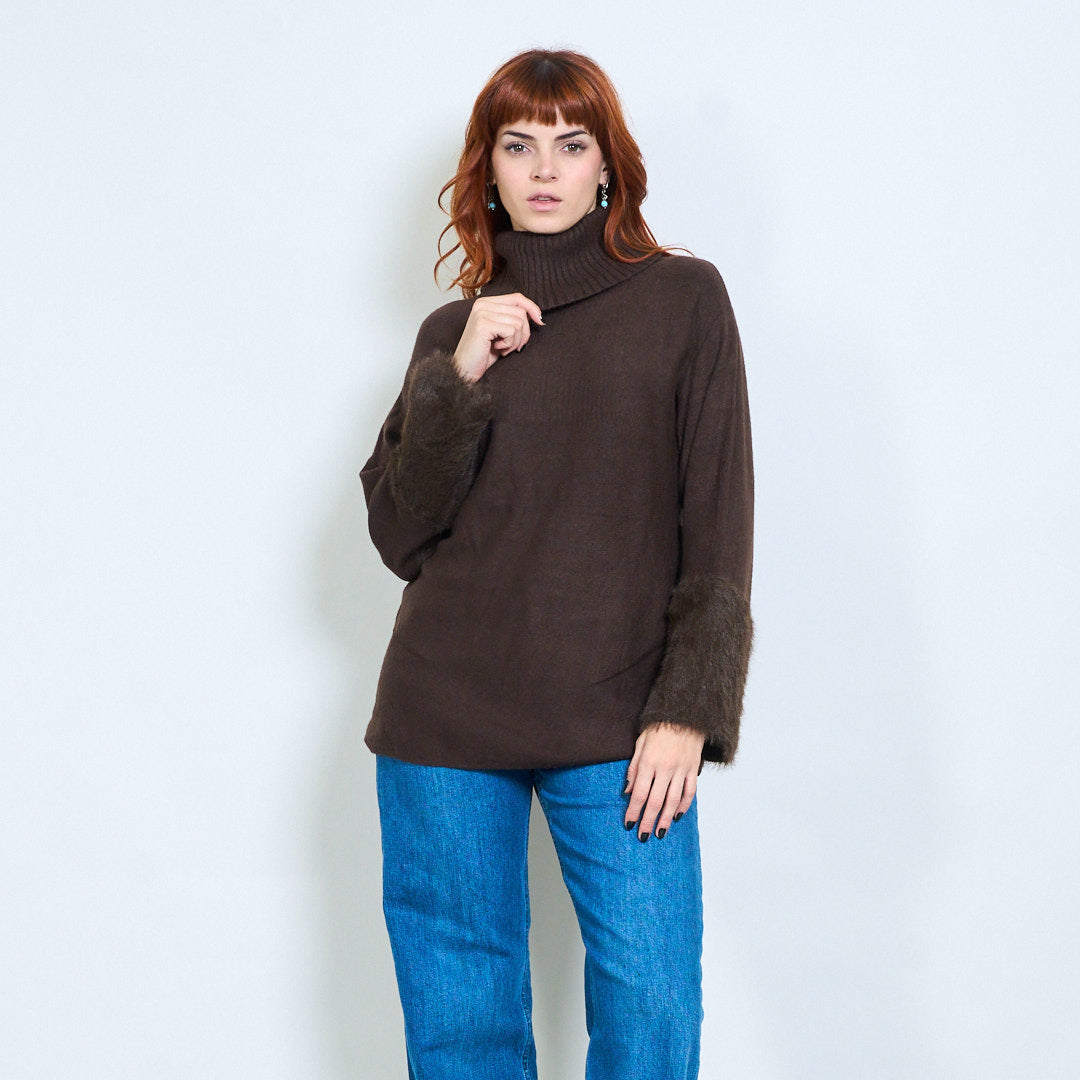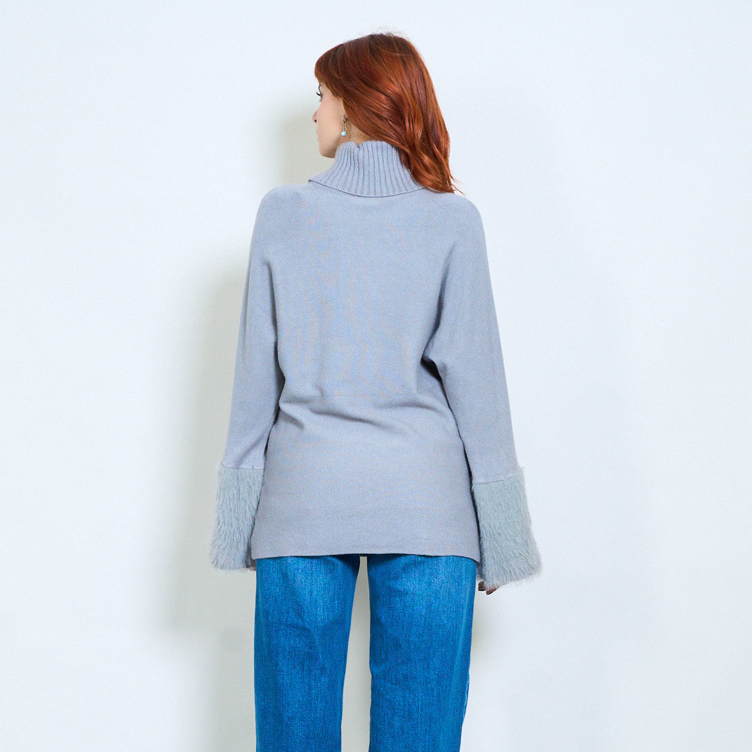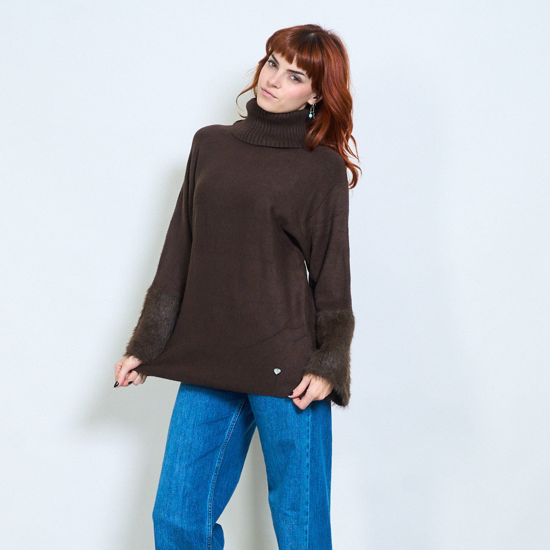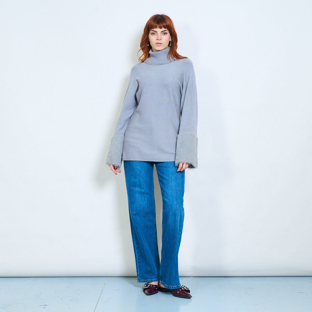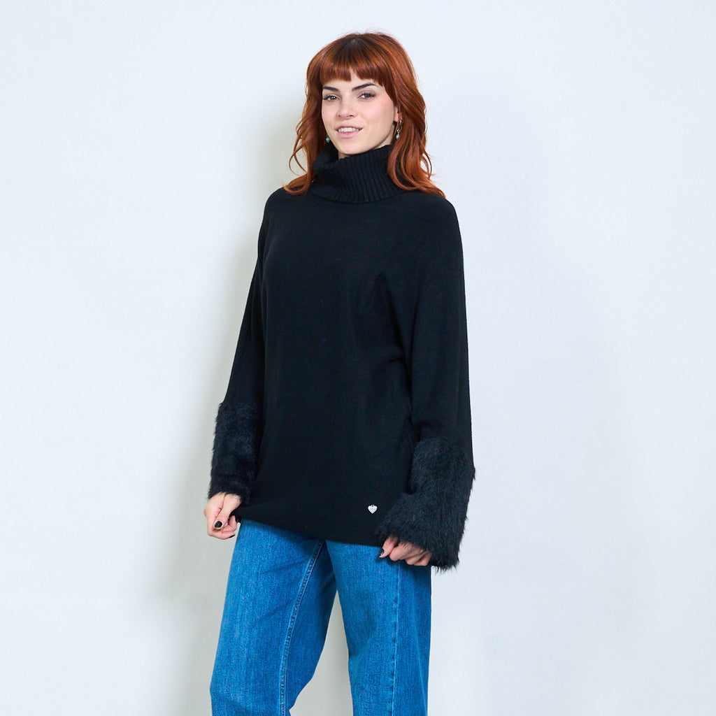 - أكمام واسعة تتميز بلمسات من الفرو الفخم لإضفاء لمسة فاخرة