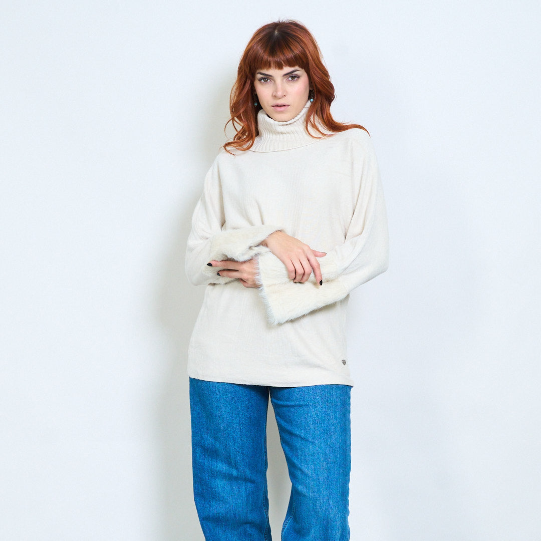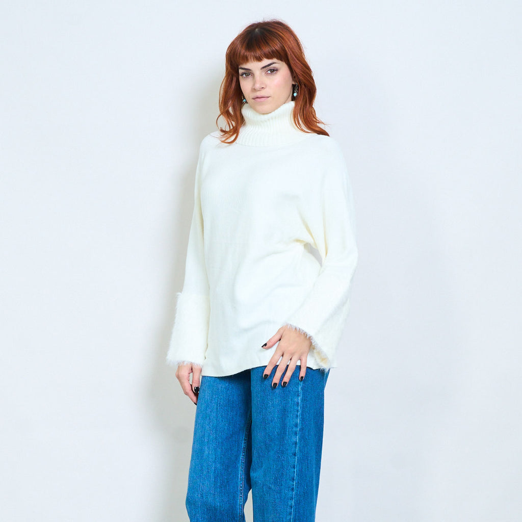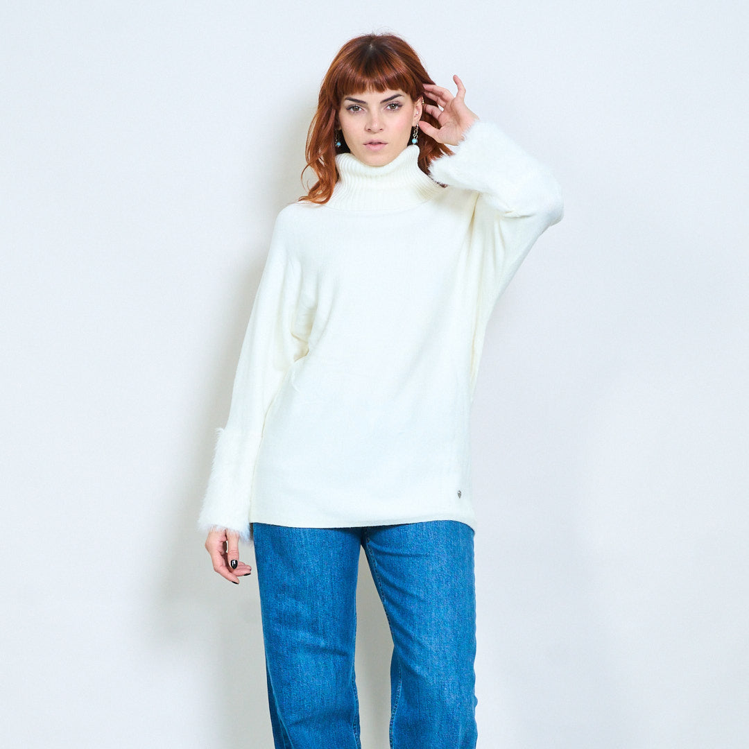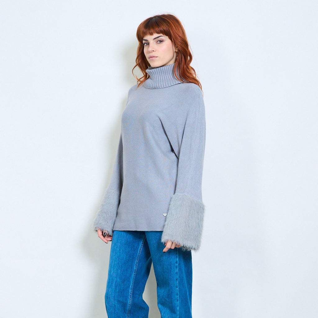 - أكمام واسعة تتميز بلمسات من الفرو الفخم لإضفاء لمسة فاخرة