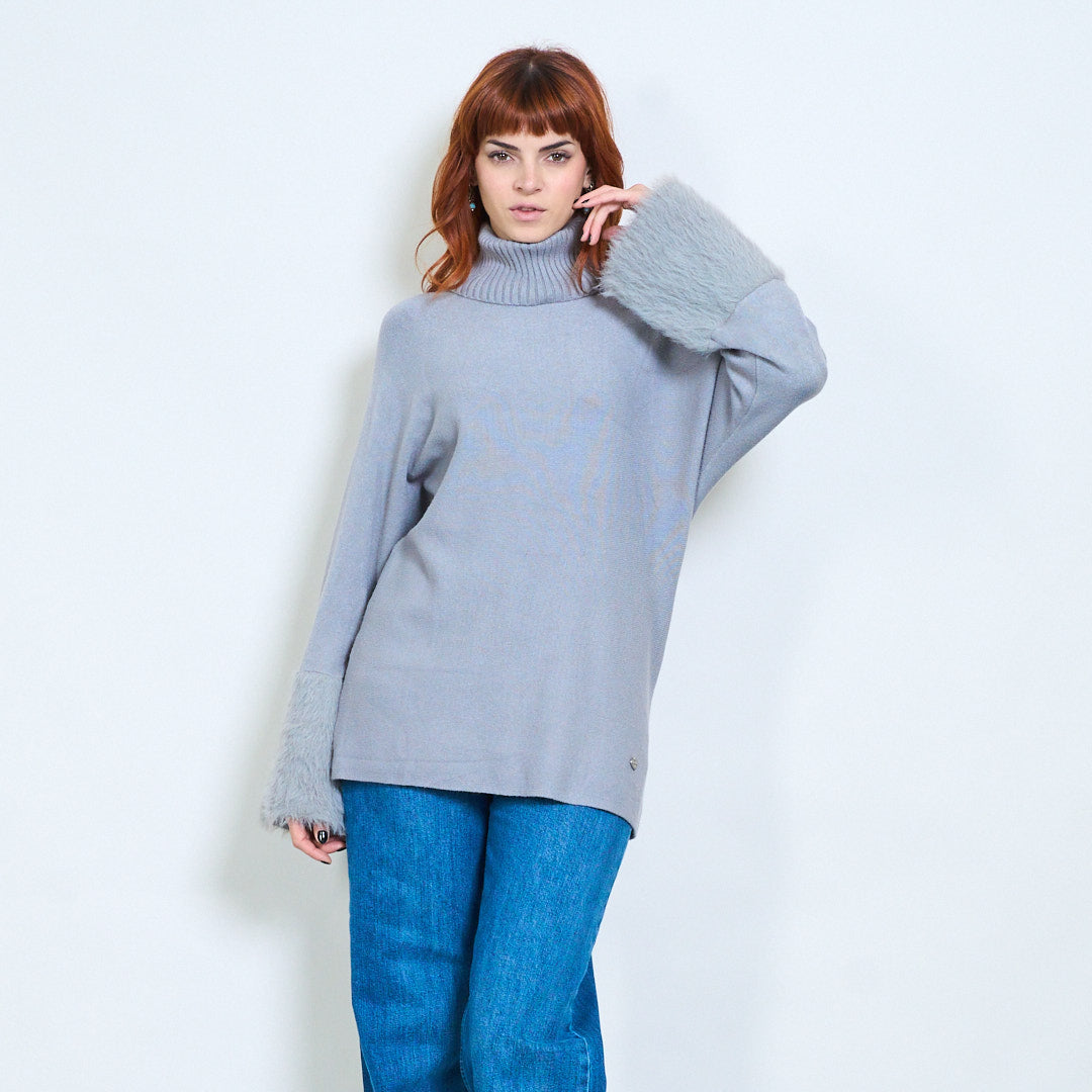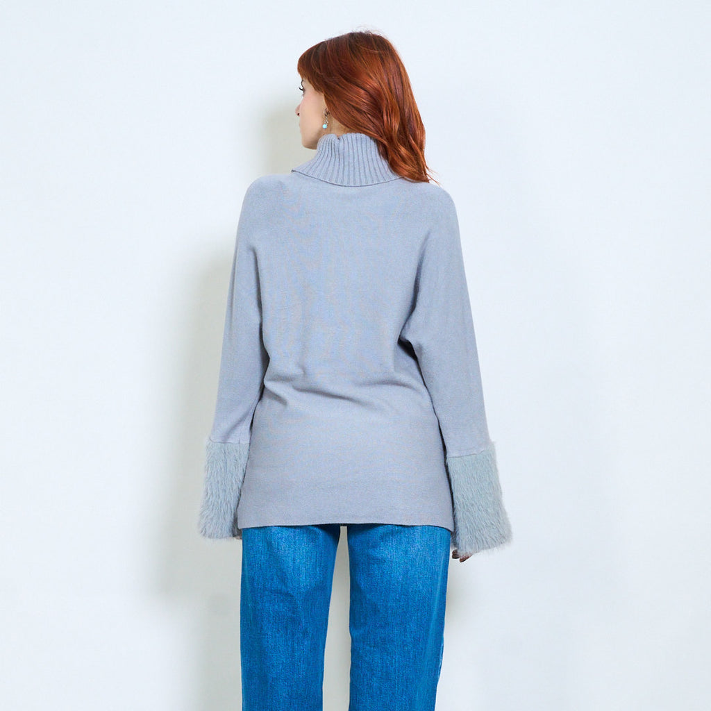 مضلع الياقة المدورة الفراء الكفة التفاصيل محبوك السترة بالجملة