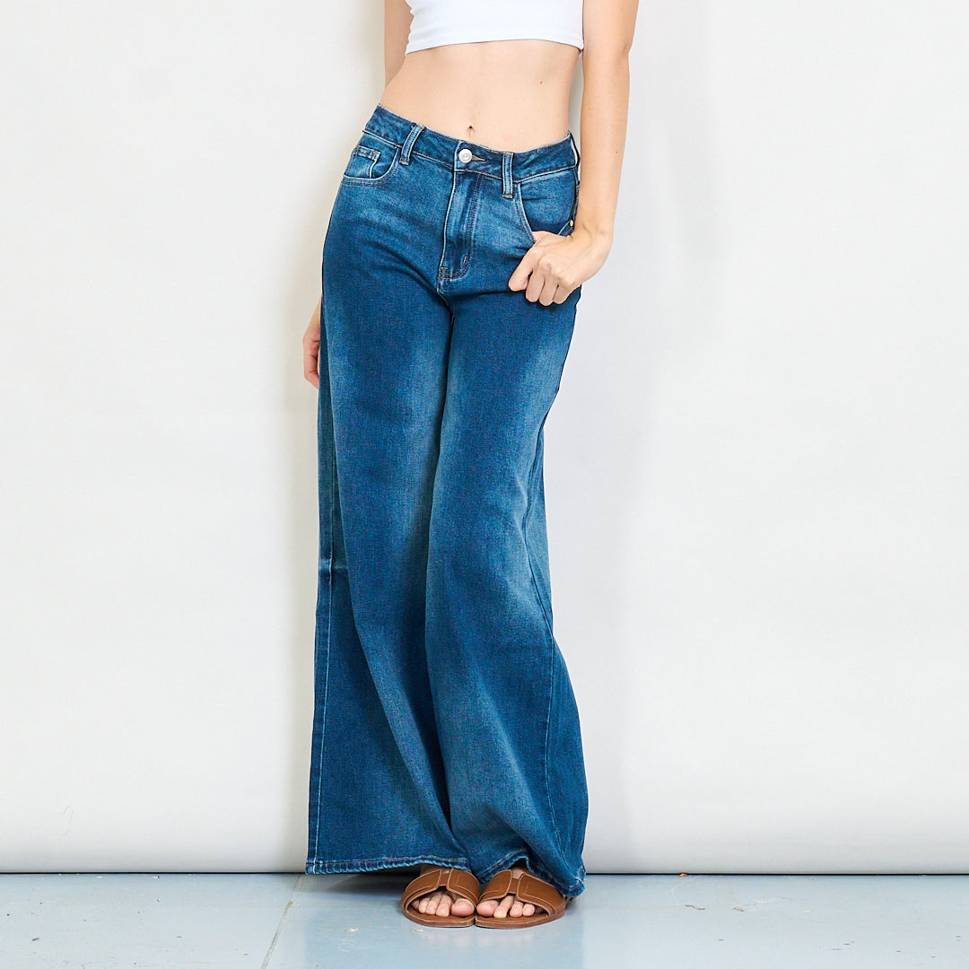الجينز غير المتماثل على عريض الساق مع غسل باهت بالجملة