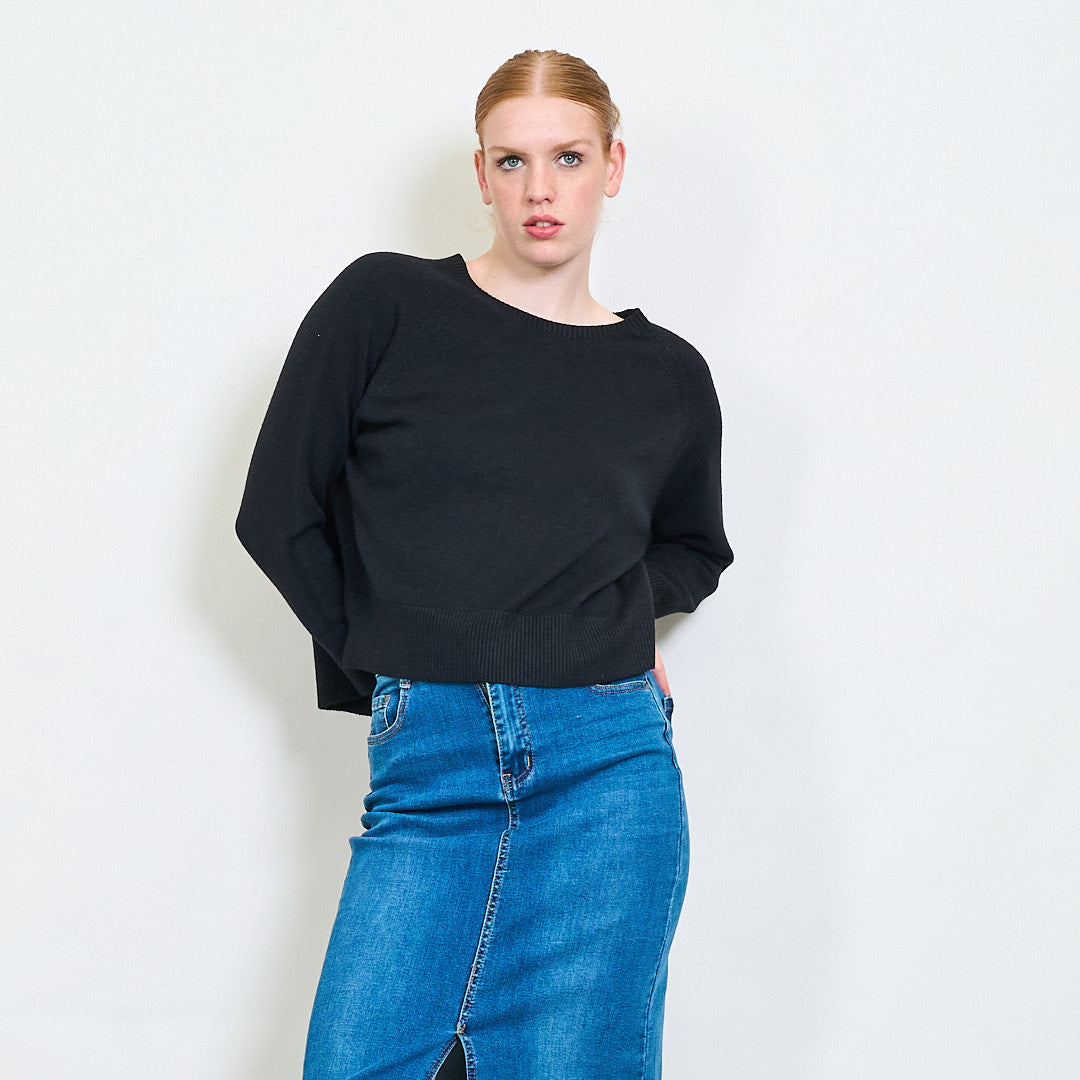 - خط عنق الطاقم الكلاسيكي مع حواف مضلعة نظيفة