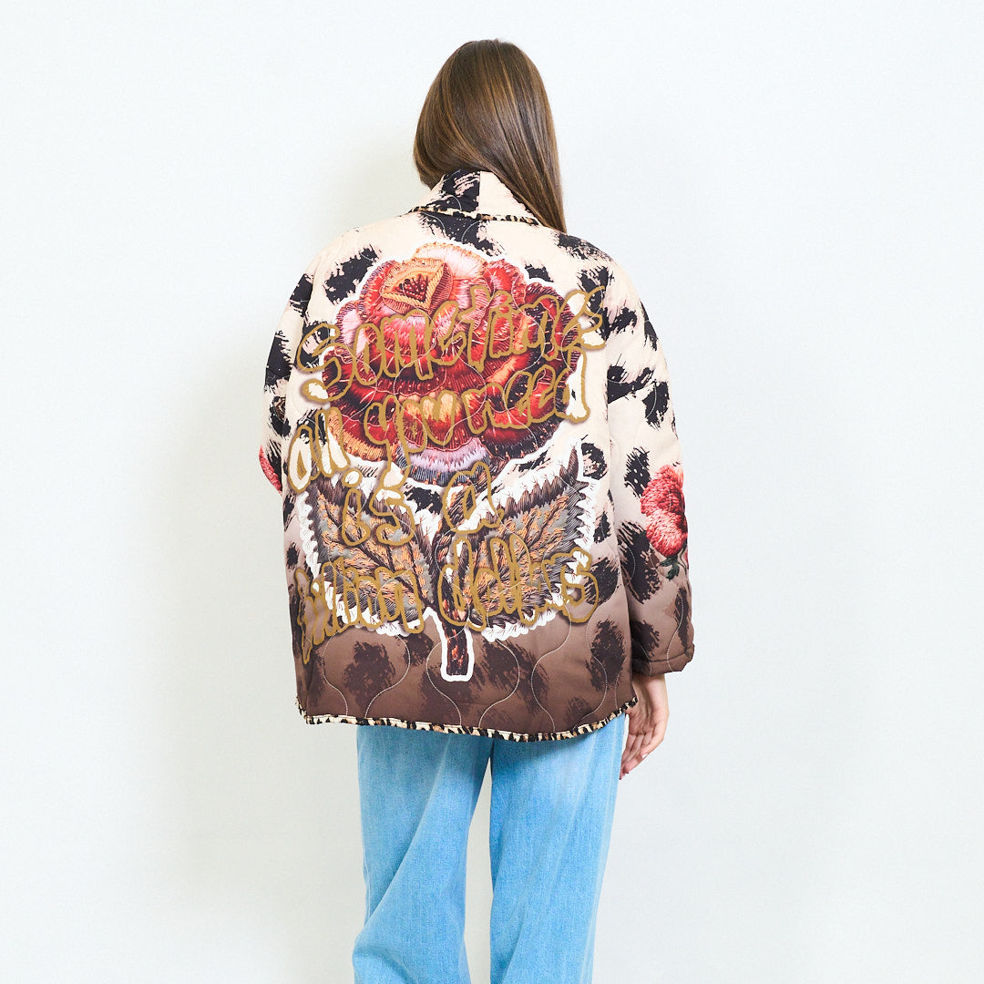 - سترة كبيرة الحجم مع حروف غامقة على طراز الكتابة على غرار الكتابة على الجدران