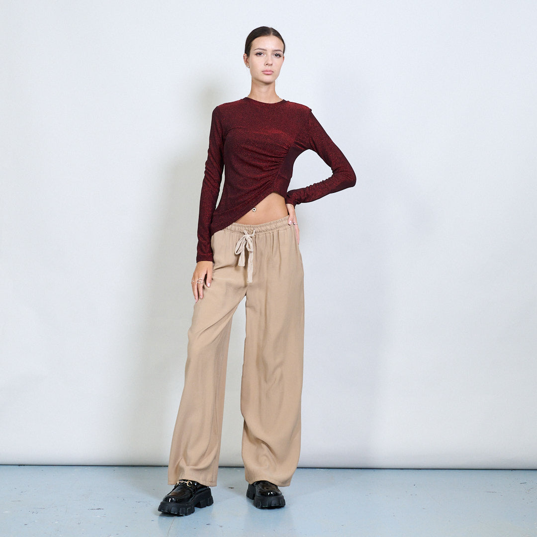 - يضيف تفاصيل Ruched غير المتماثلة تطورًا حديثًا