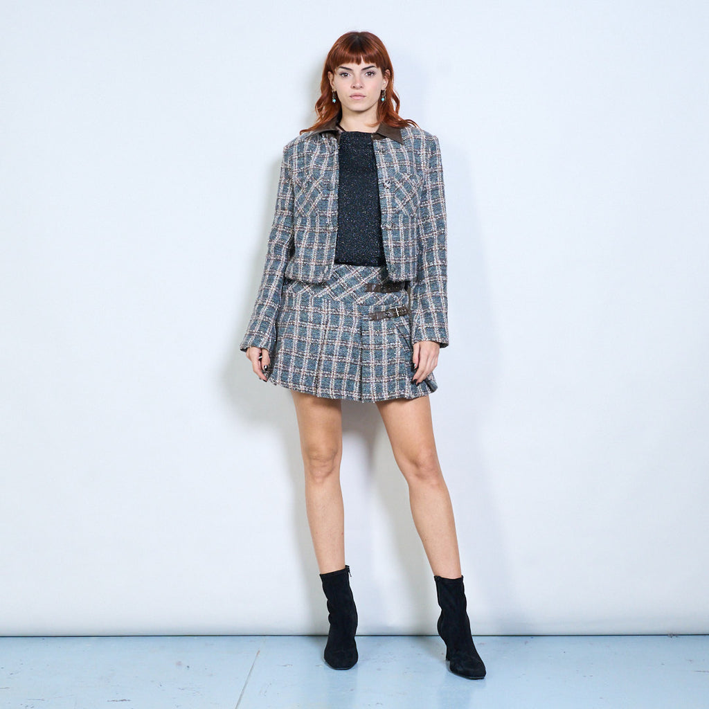 سترة منقوشة من التويد مع ياقة جلدية بالجملة
