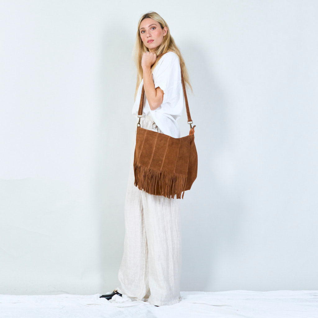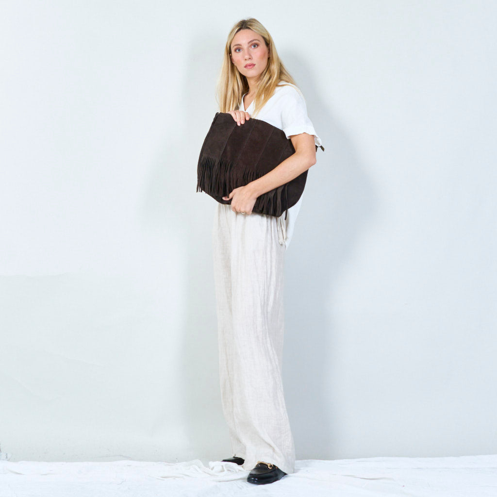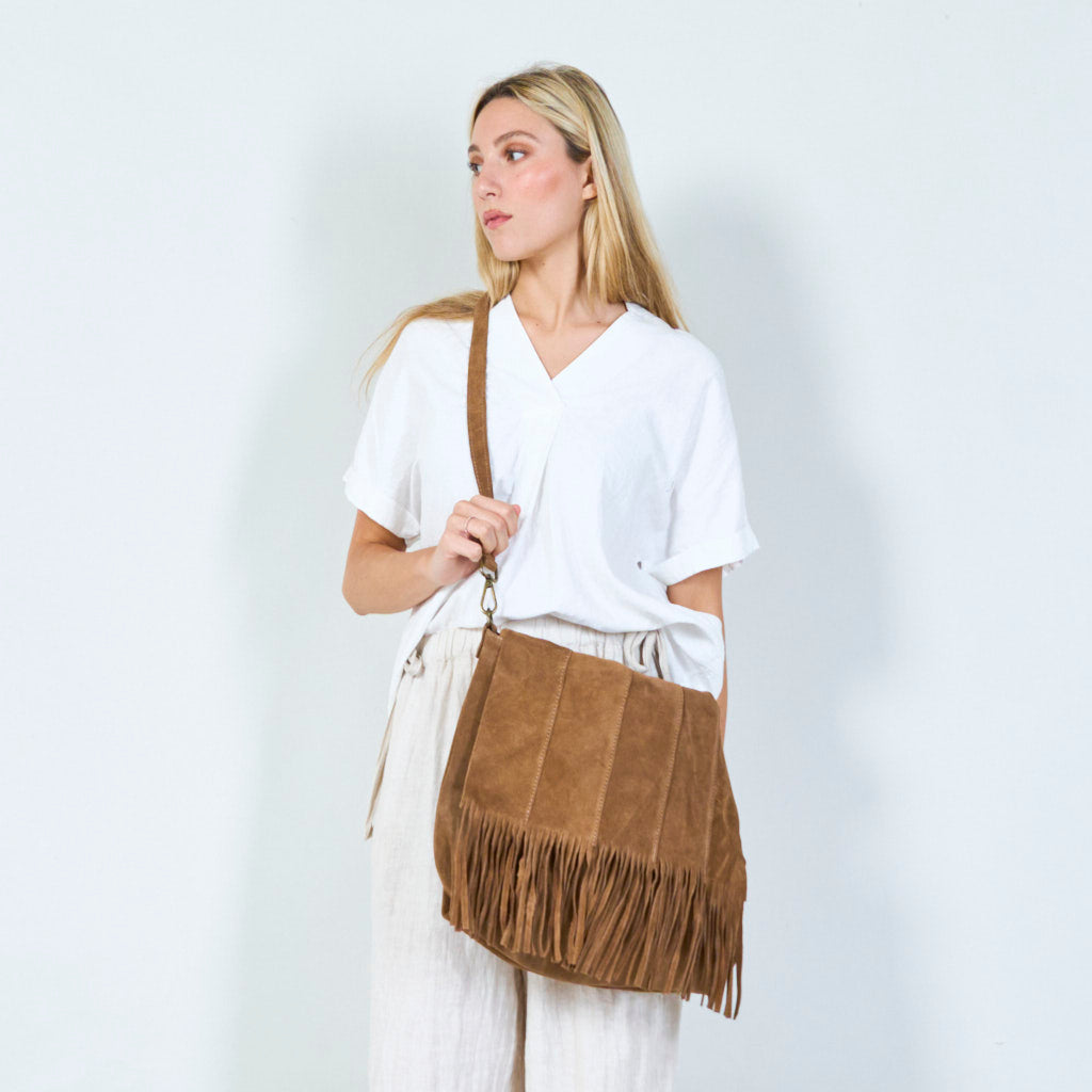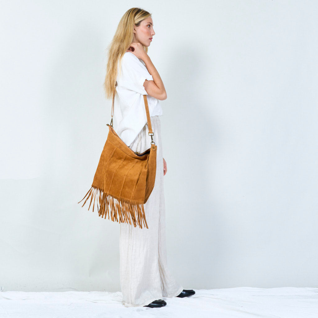 هامش حقيبة كتف من جلد الغزال بالجملة