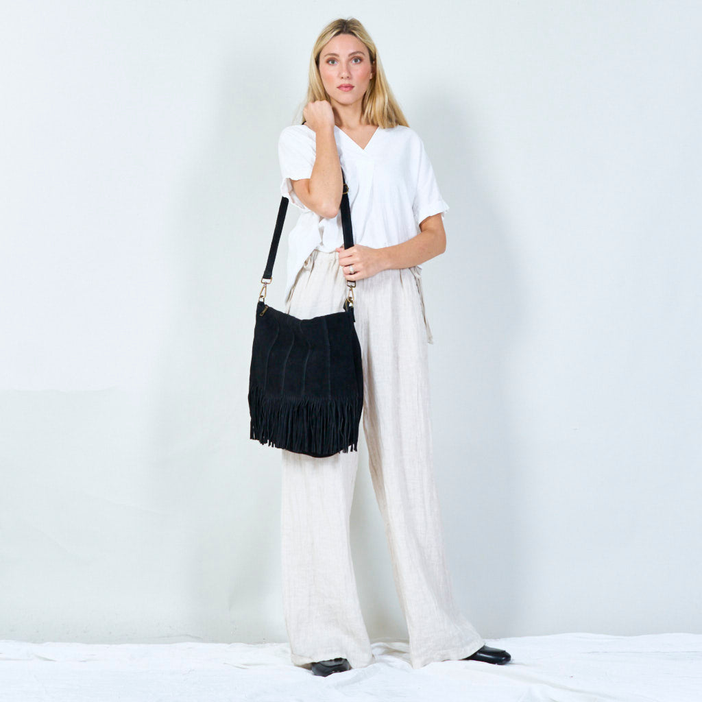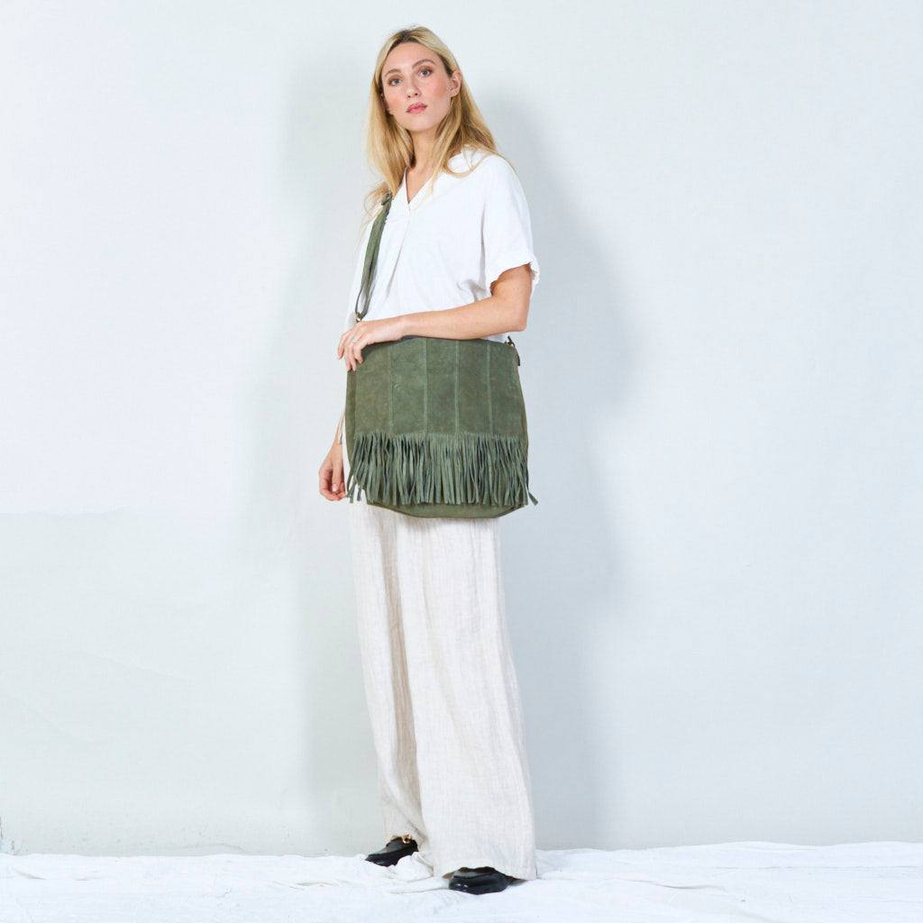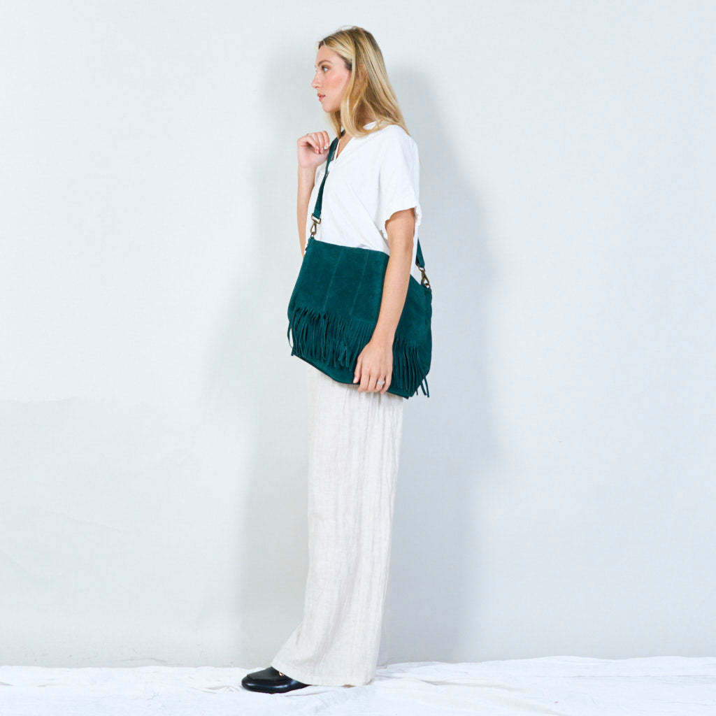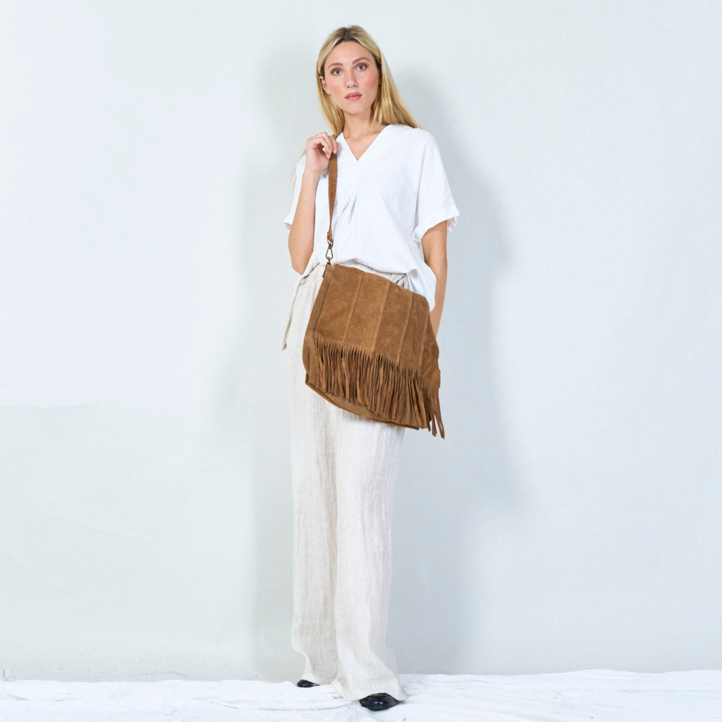 هامش حقيبة كتف من جلد الغزال بالجملة