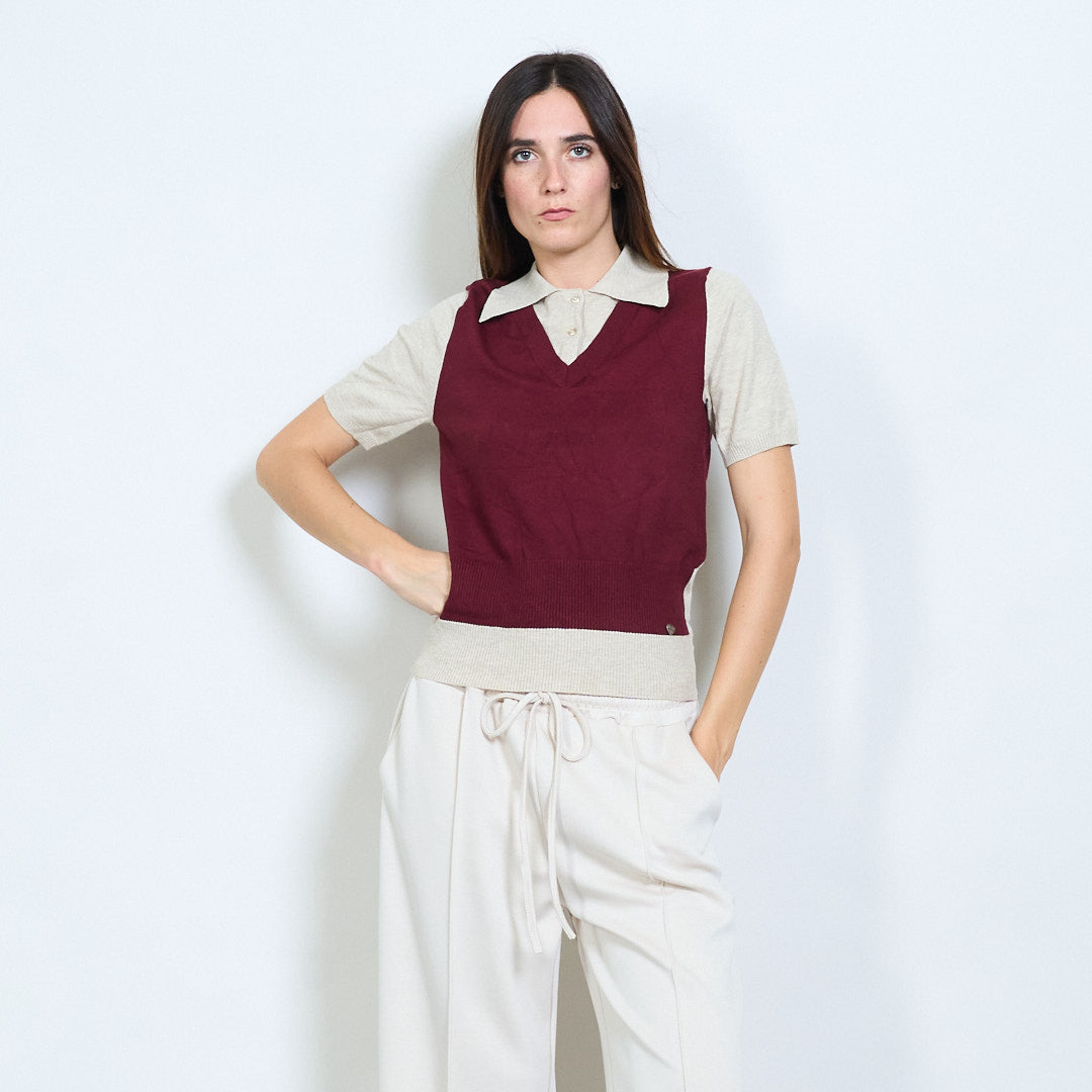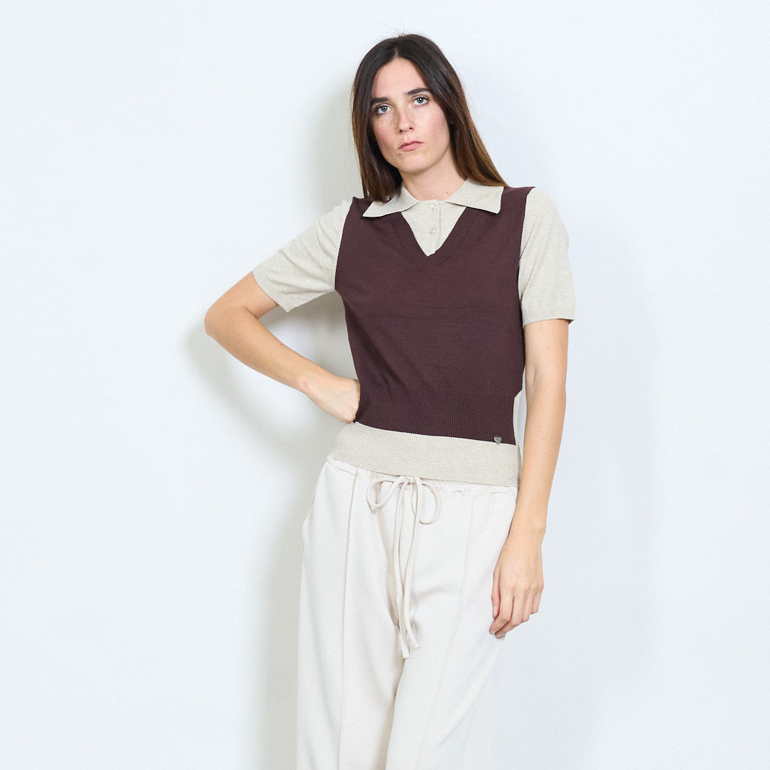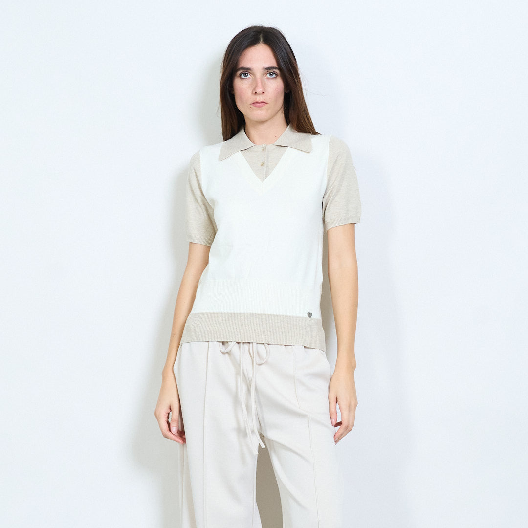 التأثير الطبقات متماسكة أعلى بولو مع تفاصيل V-seace سترة وشعار القلب بالجملة