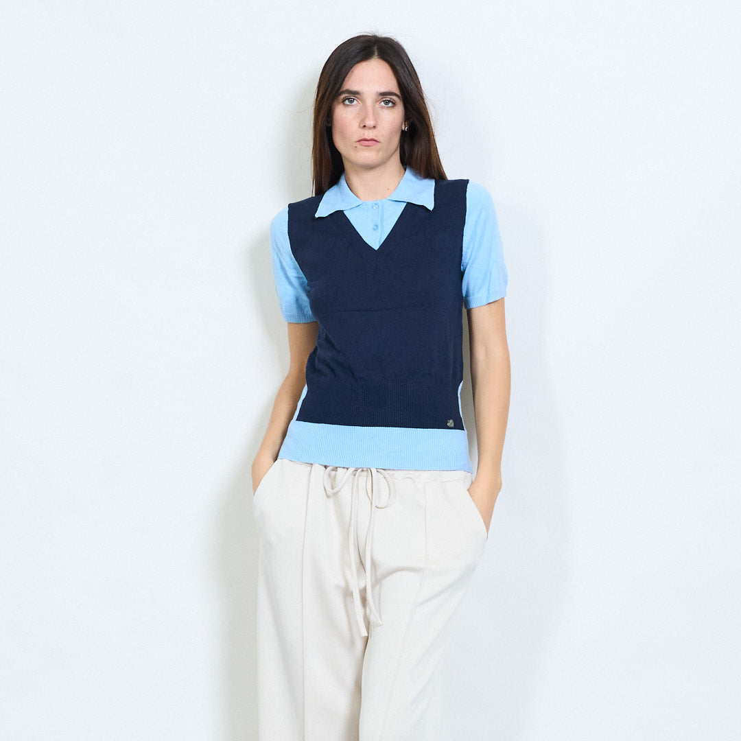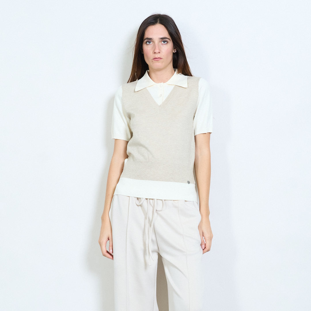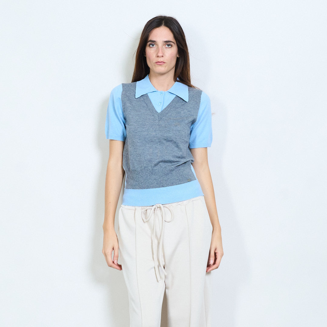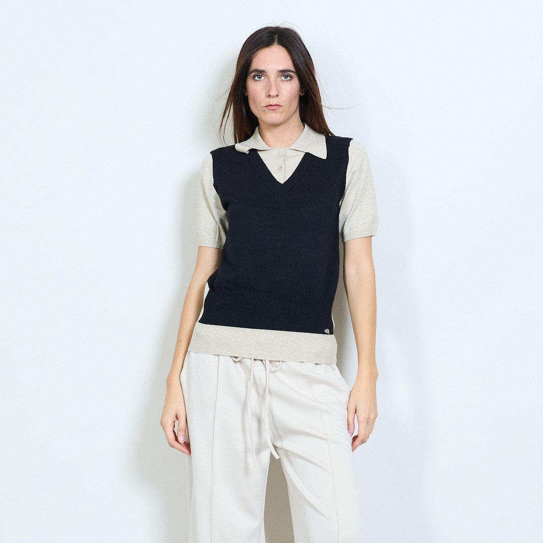 التأثير الطبقات متماسكة أعلى بولو مع تفاصيل V-seace سترة وشعار القلب بالجملة