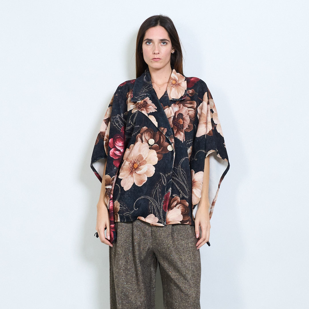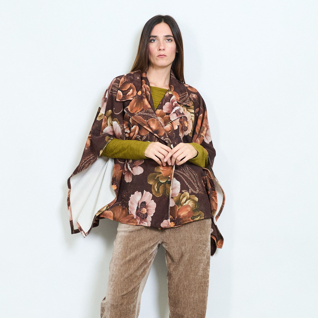 سترة على غرار كيب المطبوعة الأزهار مع التفاصيل المزدوجة بالجملة