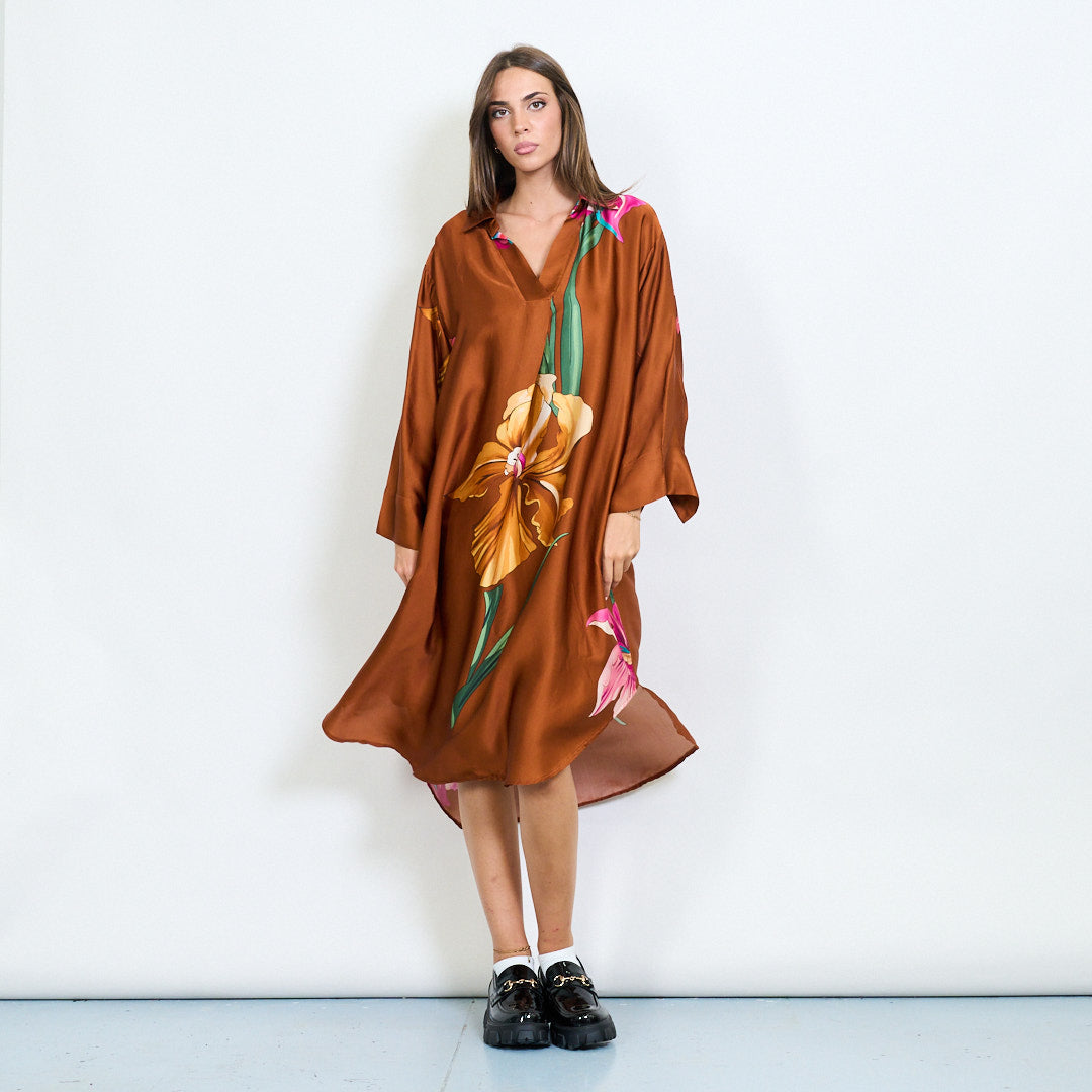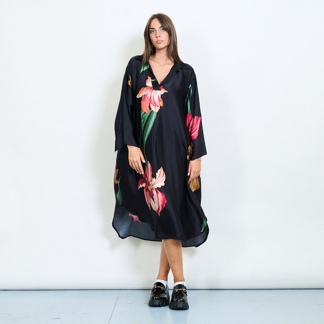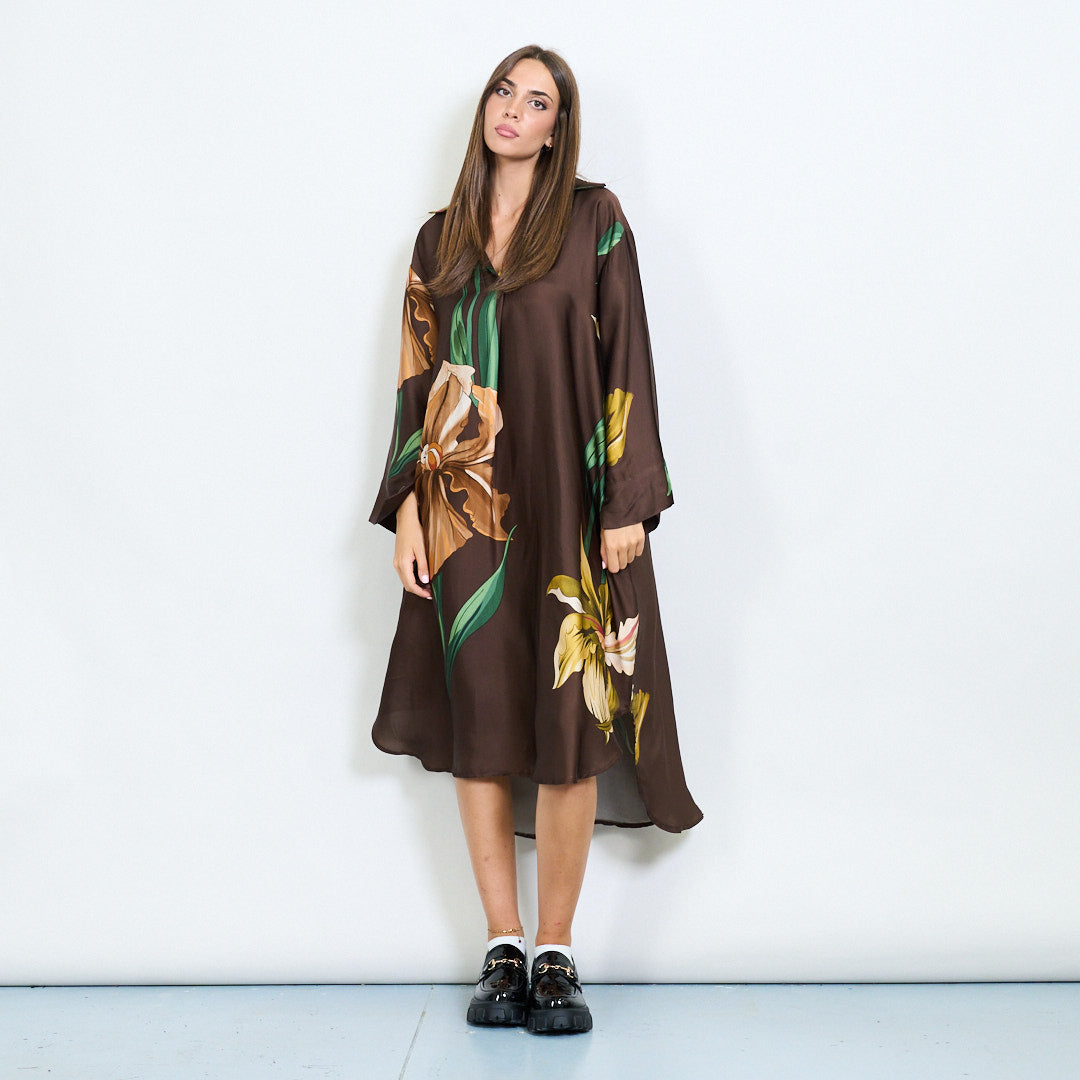 - عزر الأزهار الجريء الموضوعة عبر الفستان كميزة بيان