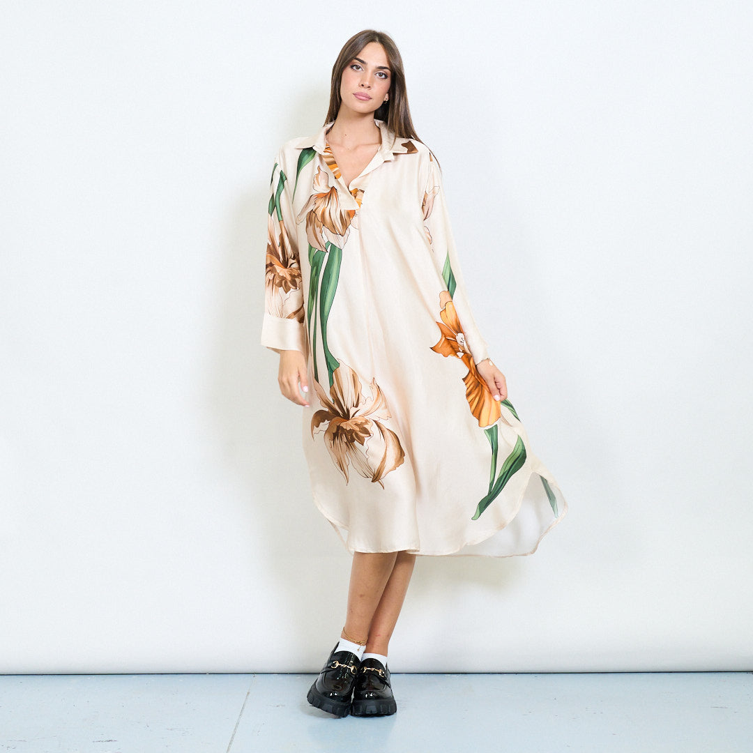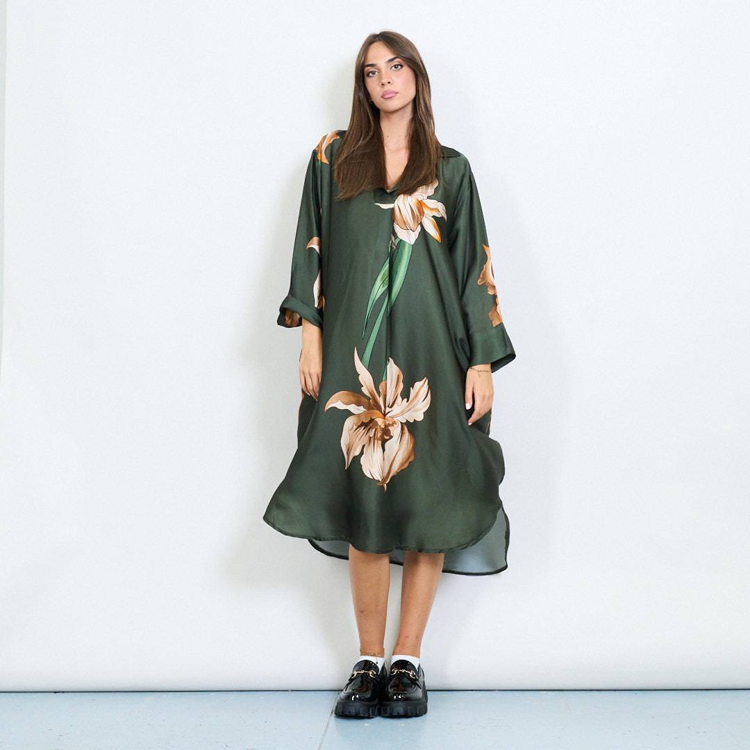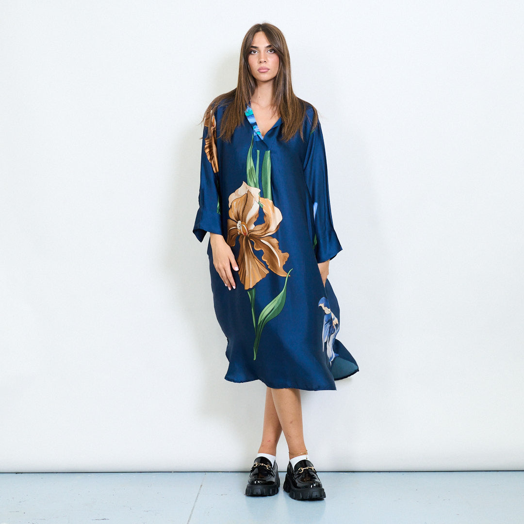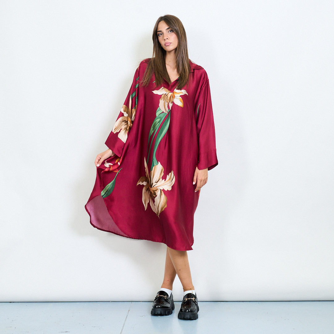- عزر الأزهار الجريء الموضوعة عبر الفستان كميزة بيان