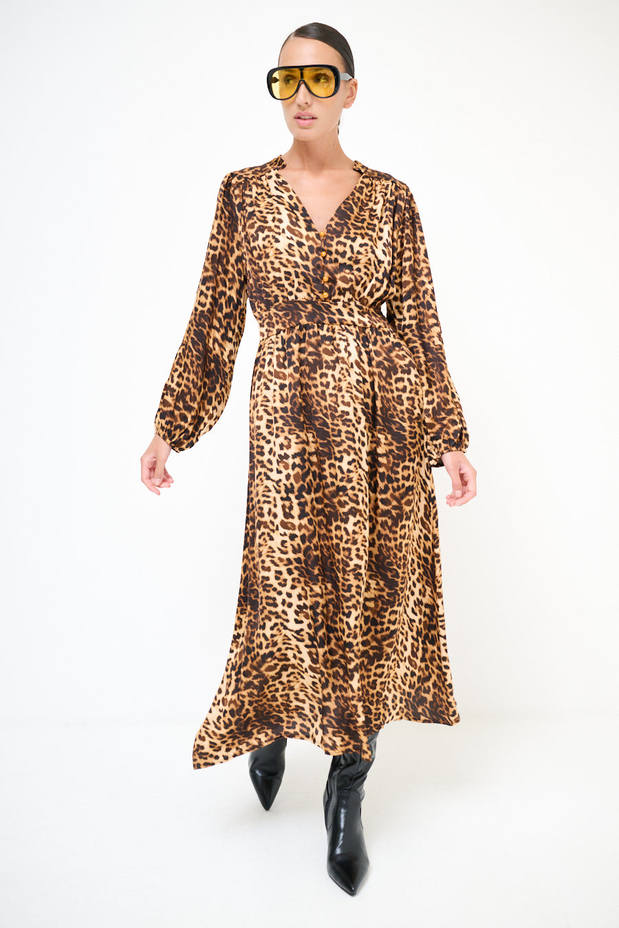 Leopard Print V-tech Long Sleeve Maxi Dressy بالجملة