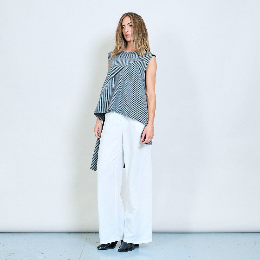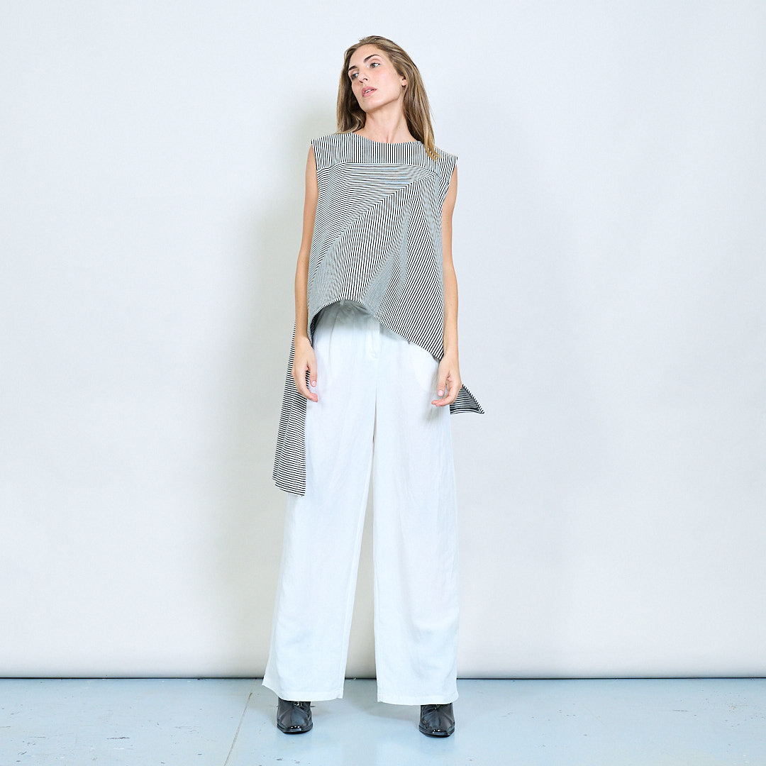 الشريط الهندسي غير المتماثل بلا أكمام بلوزة طويلة بالجملة