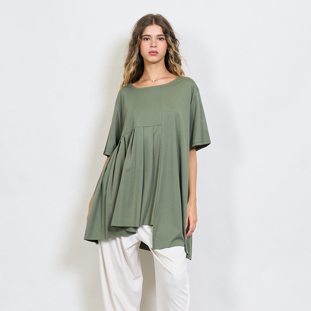 بلوزة لوحة مطوية تتدفق مع جولة بالجملة