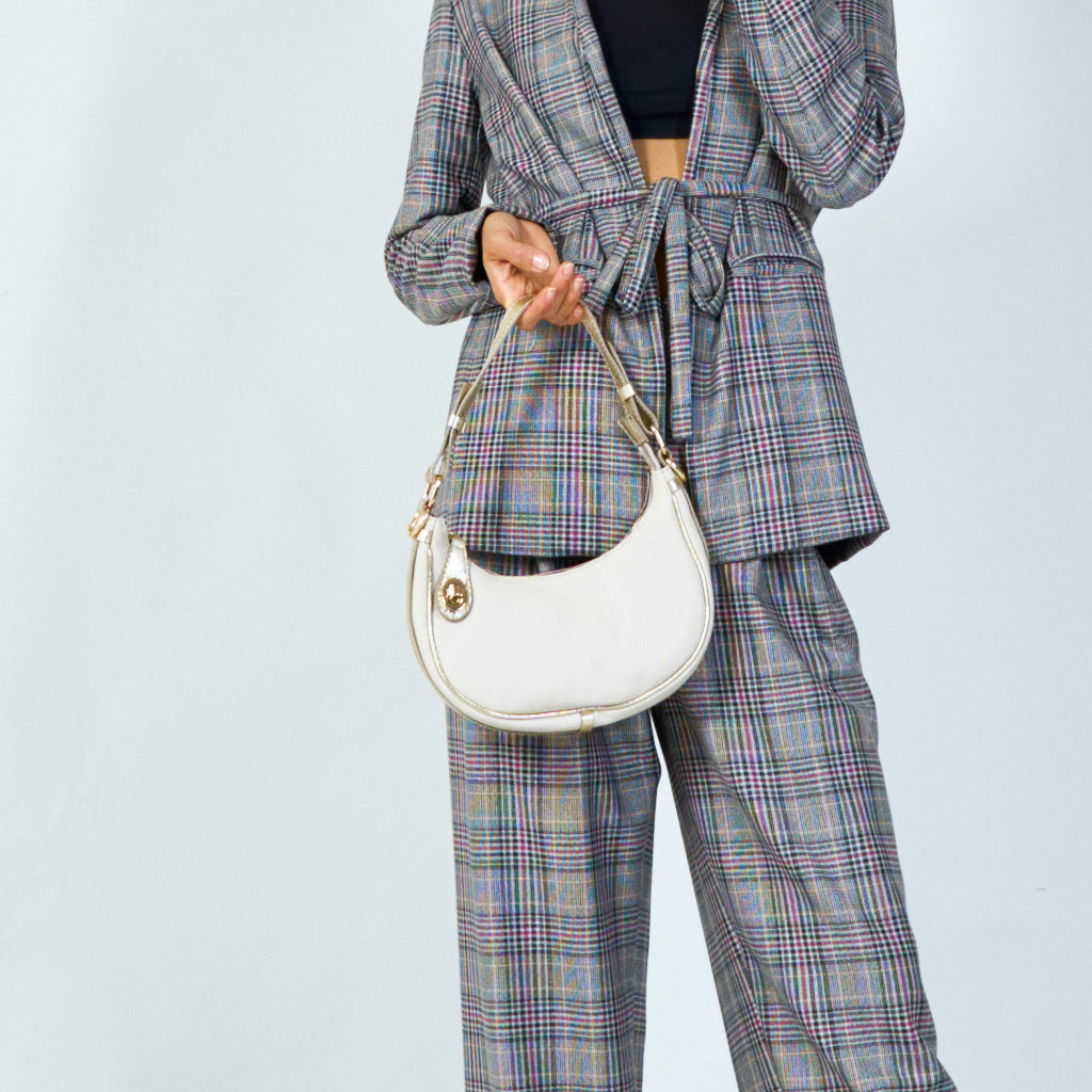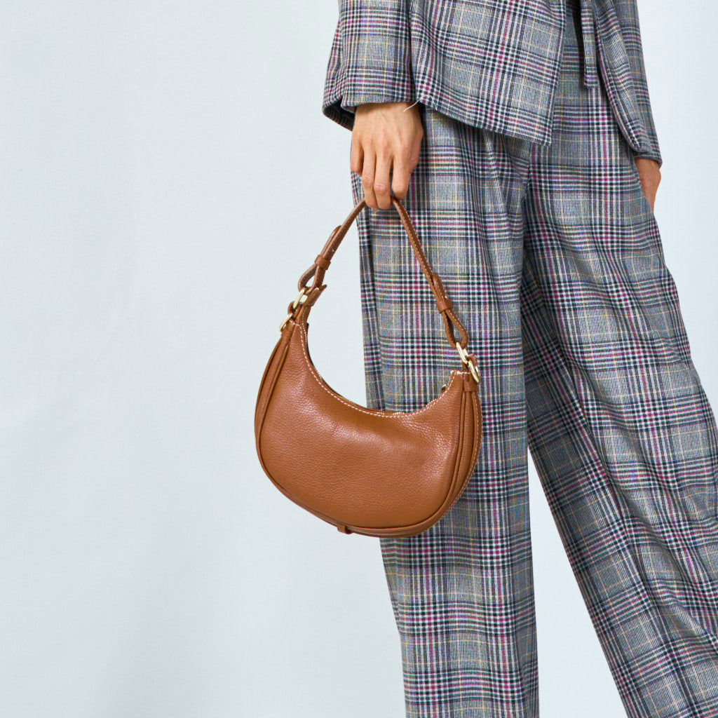 حقيبة كتف من الجلد ذو اللونين والحبوب...