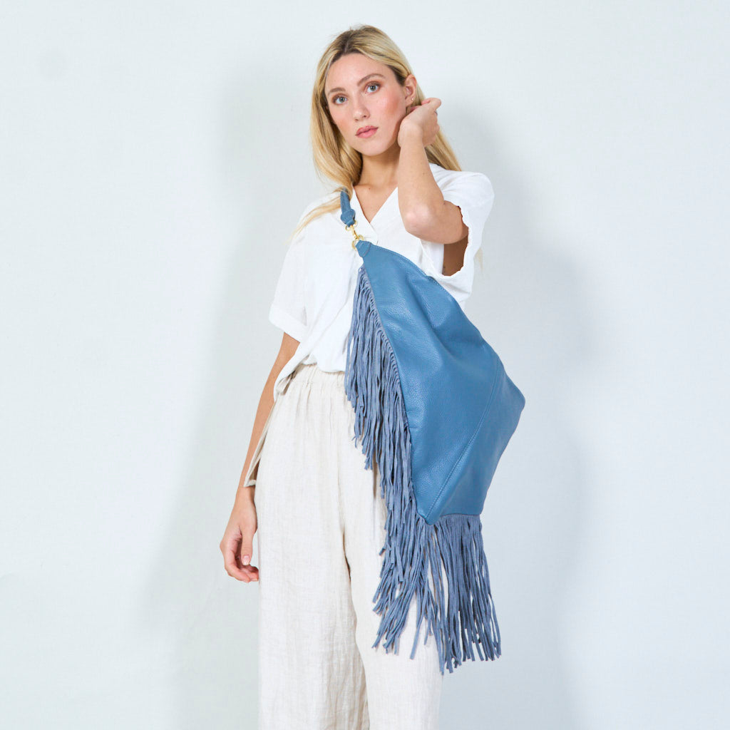 • جلد أصلي ناعم مع تفاصيل مهدبة