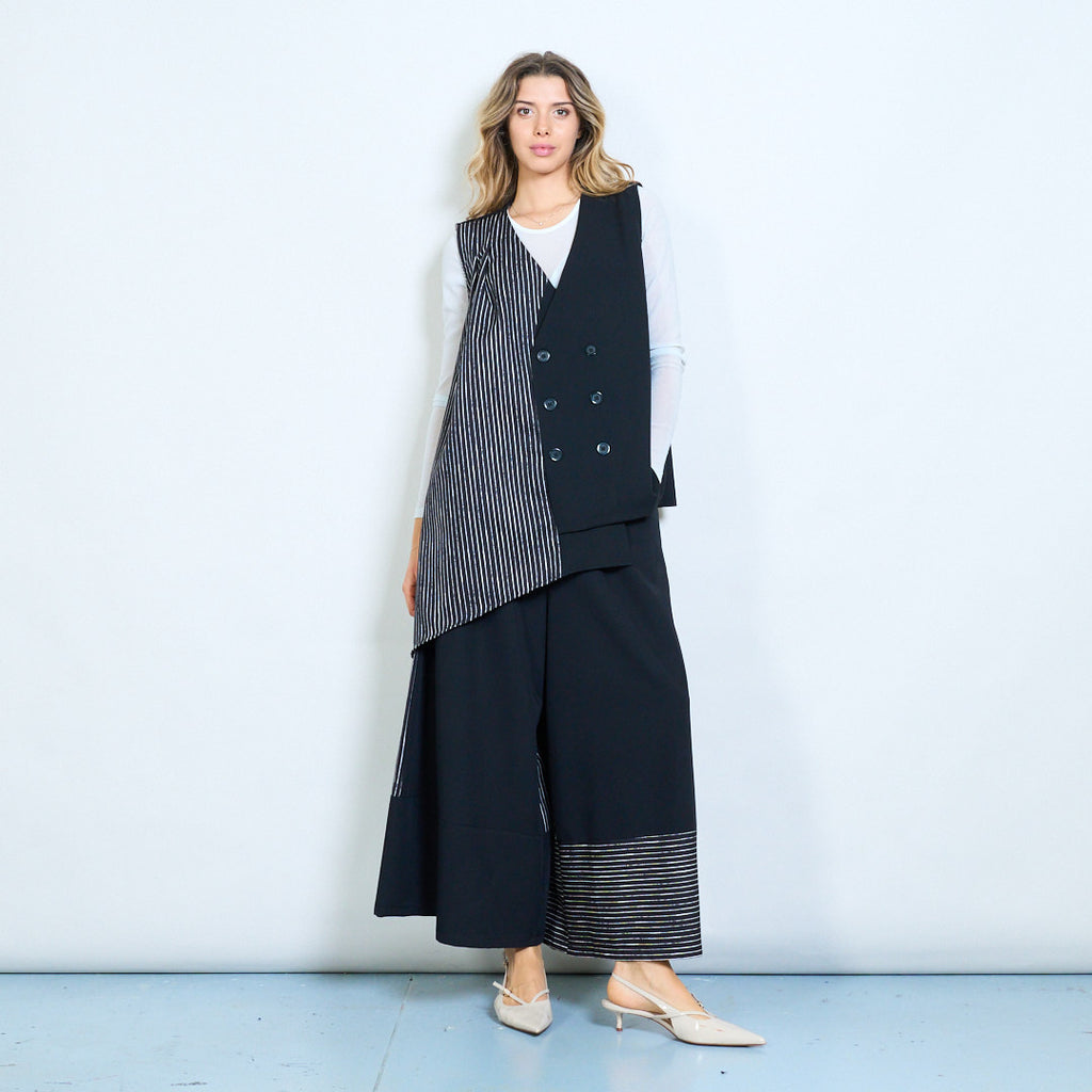 - تصميم فريد غير متماثل يجمع بين اللوحة الصلبة والمخططة لإضفاء لمسة عصرية