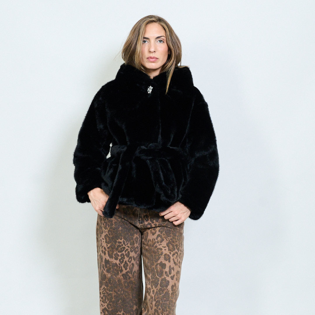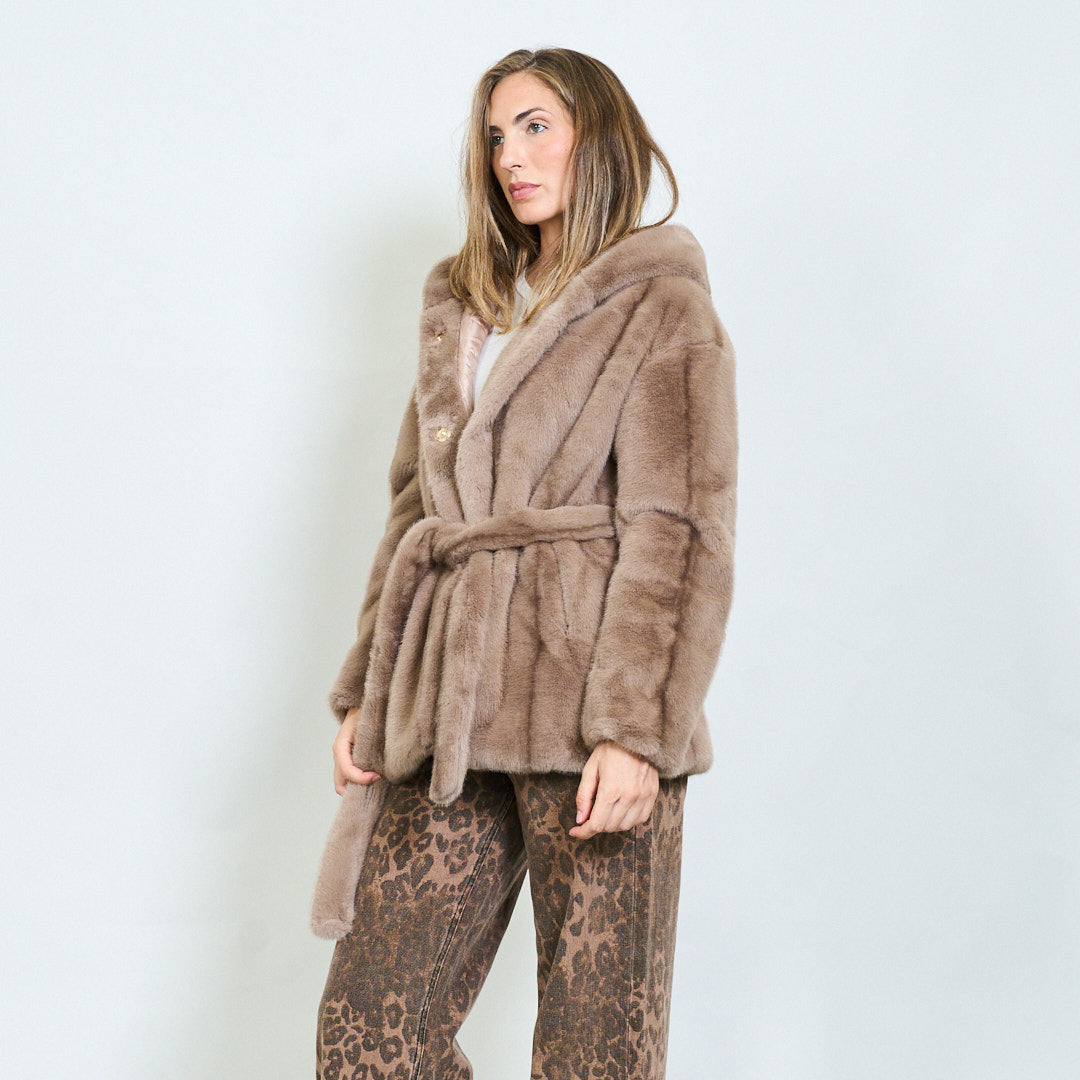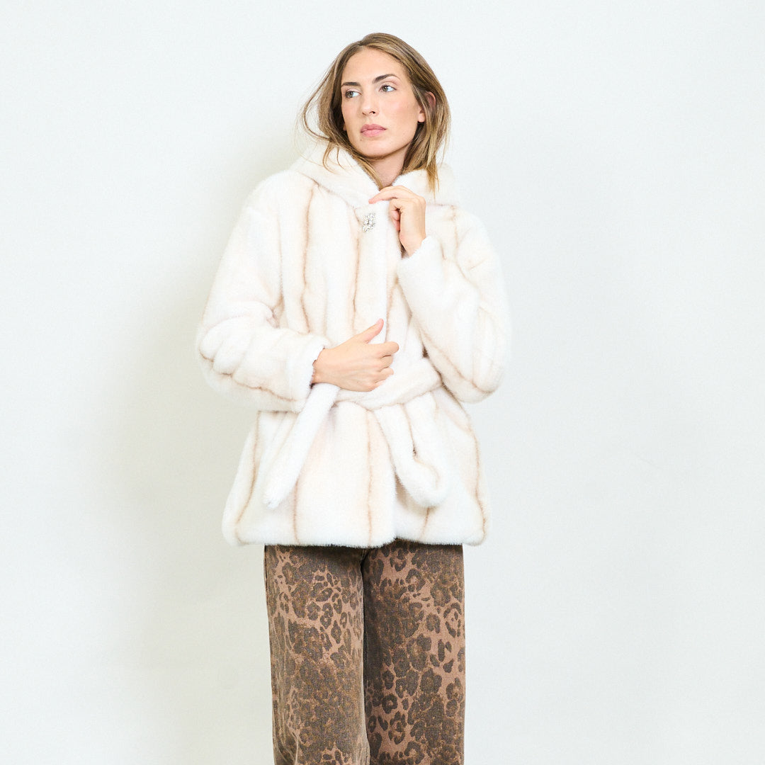 - قطع قصيرة كلاسيكية مع طوق دافئ دافئ