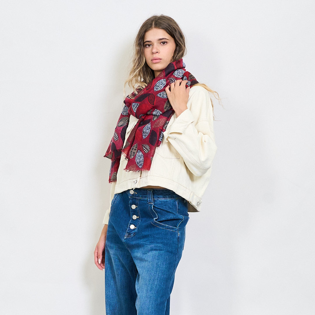 نمط ورقة مجردة طباعة وشاح خفيف الوزن بالجملة
