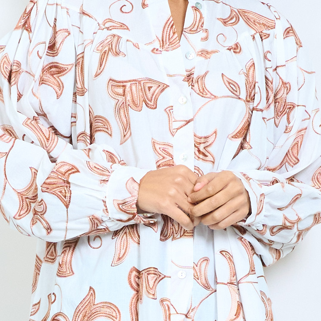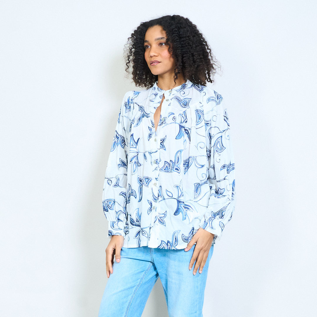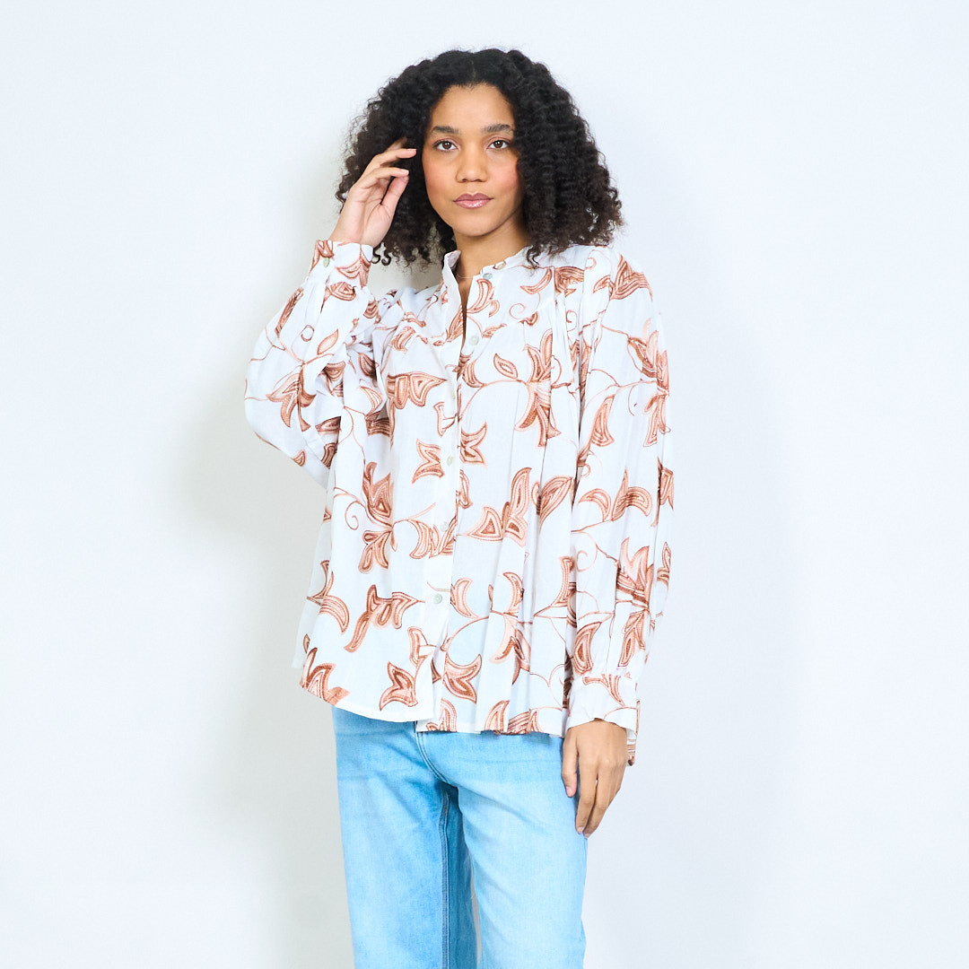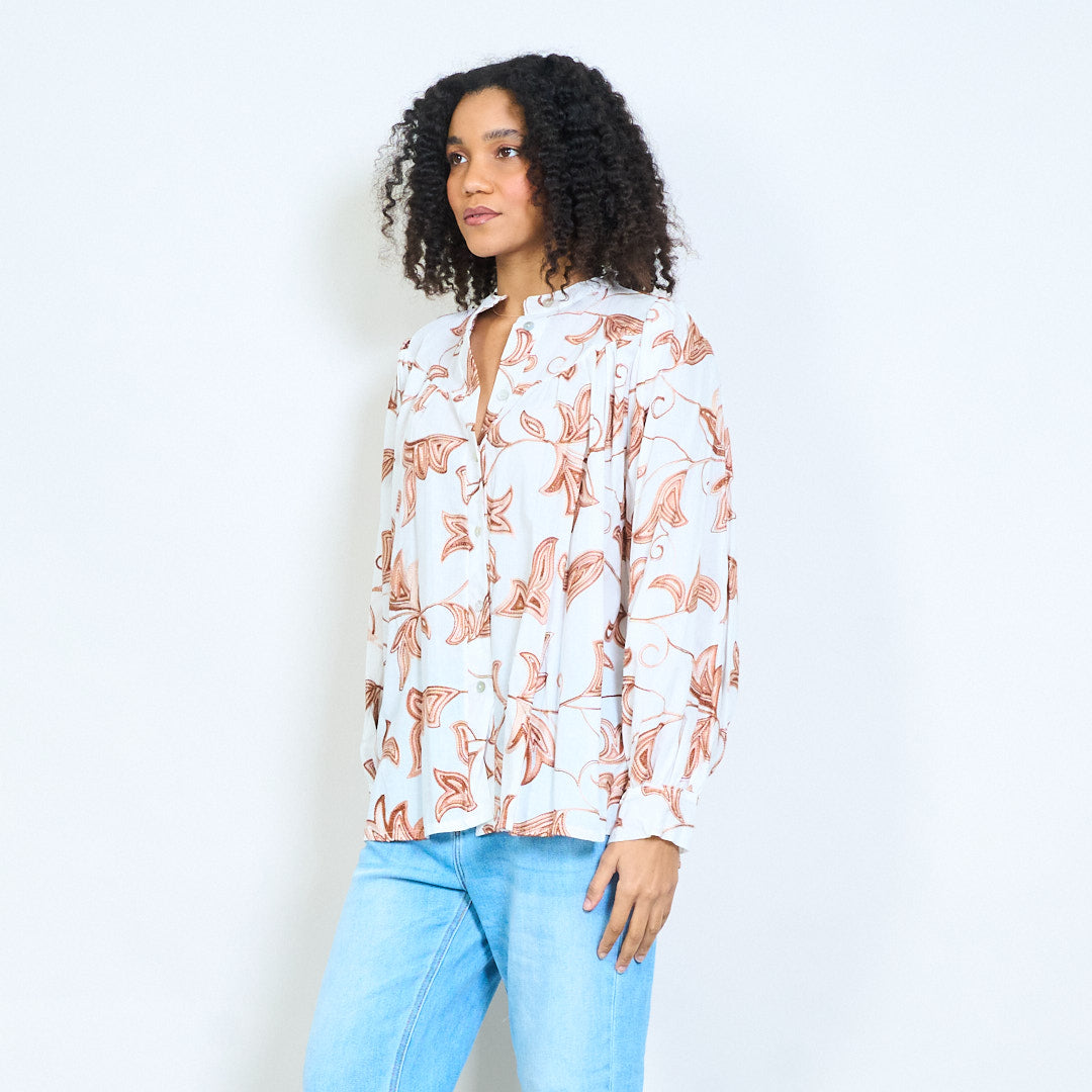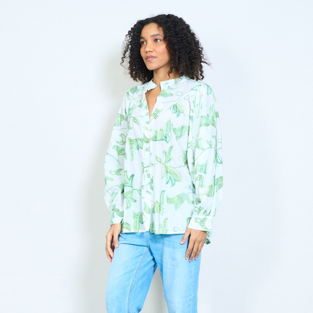 بلوزة بأزرار أمامية بطبعة أوراق شجر للبيع بالجملة