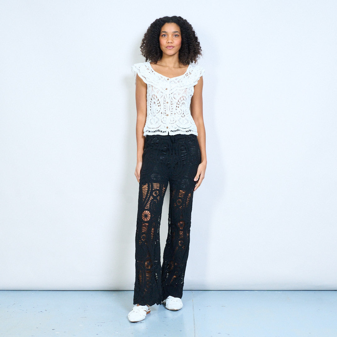 بنطلون واسع الساق منسوج من الكروشيه ب...