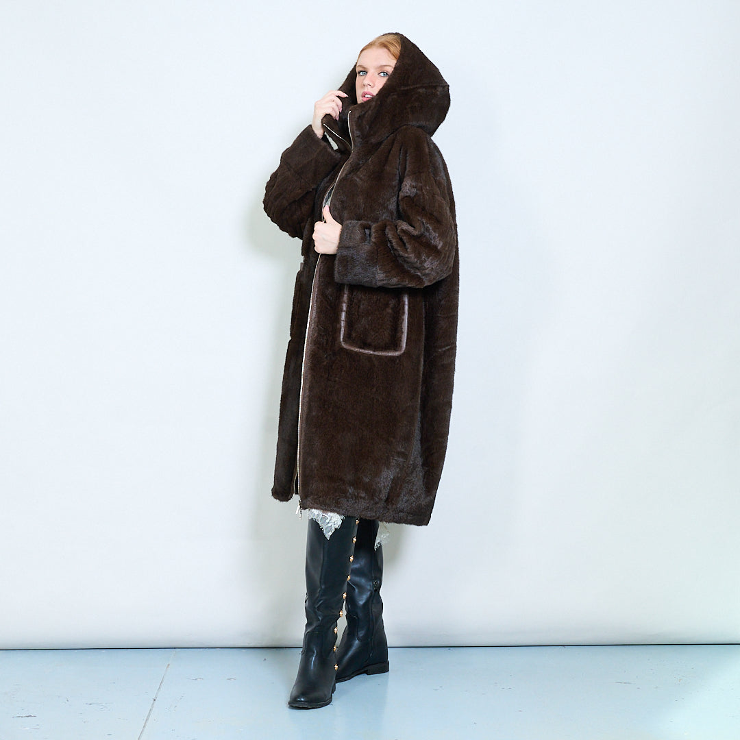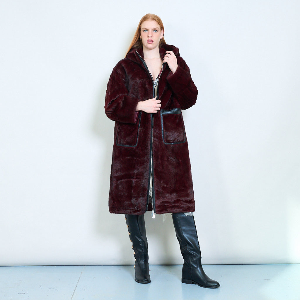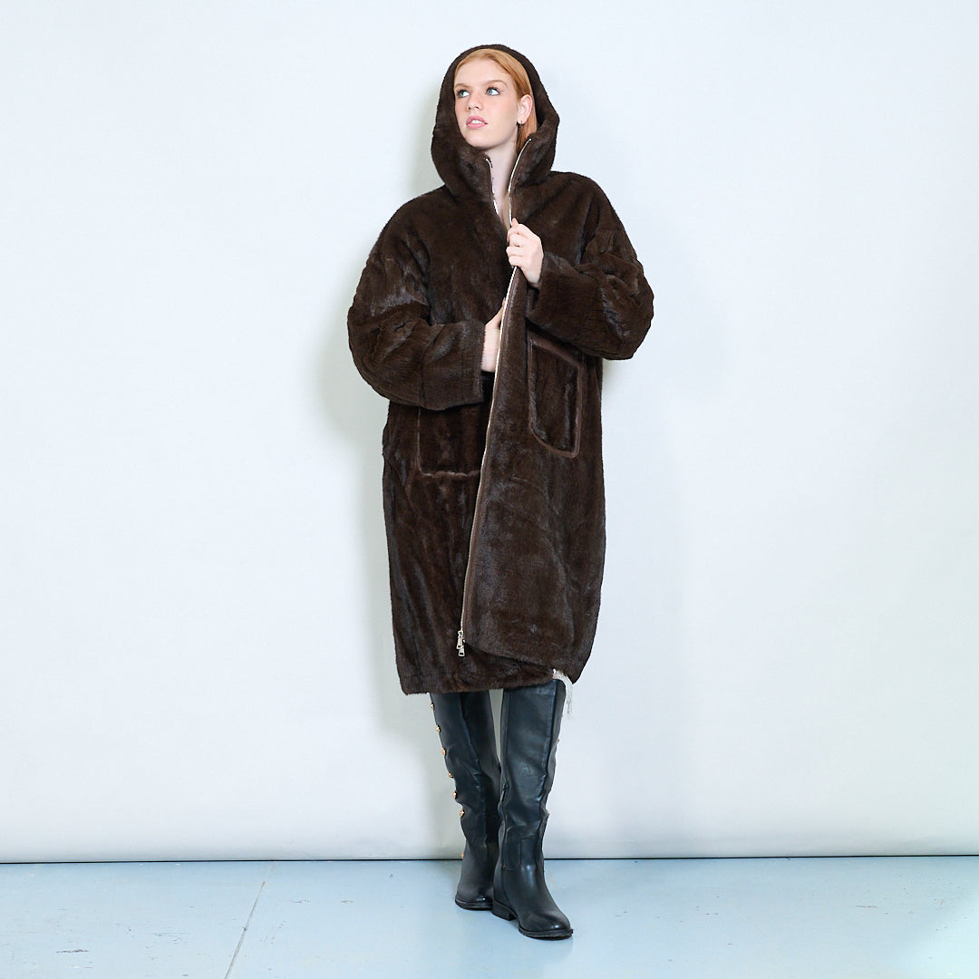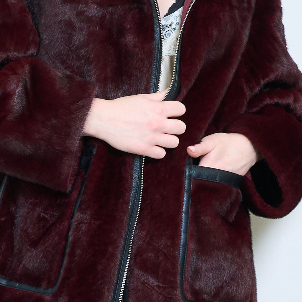 معطف فرو صناعي كبير الحجم بسحاب من القطيفة للبيع بالجملة