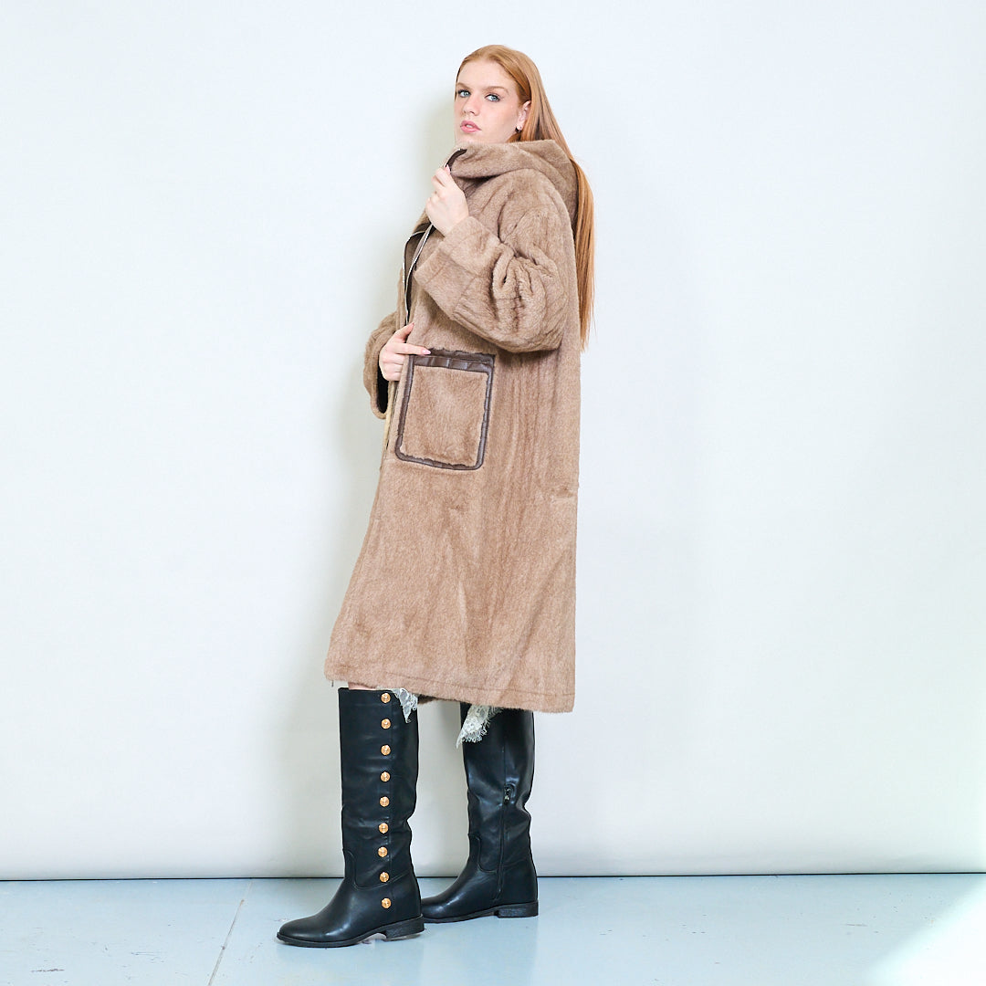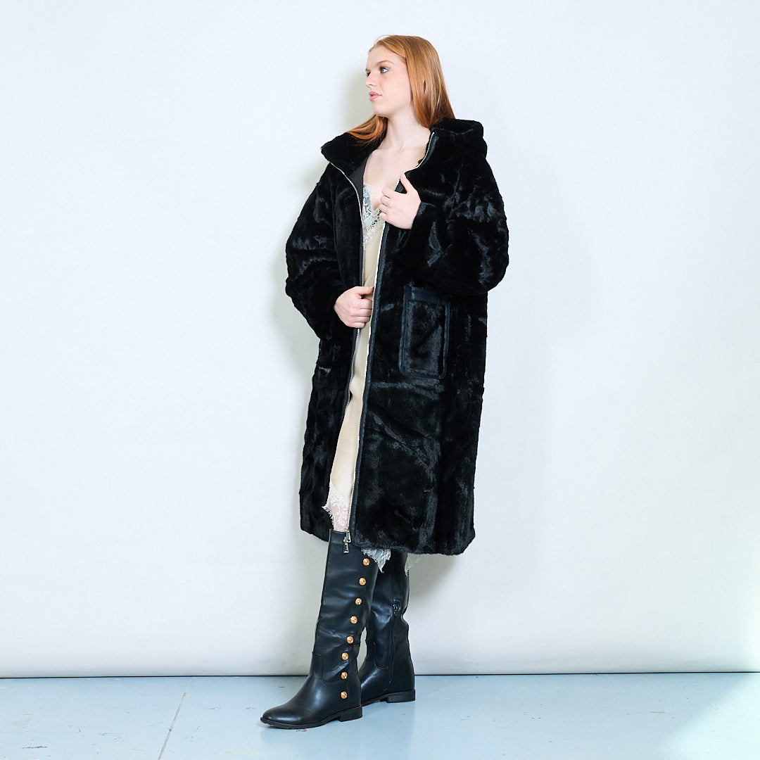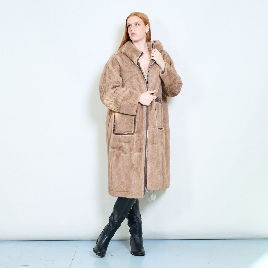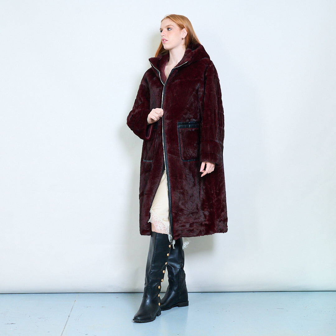 معطف فرو صناعي كبير الحجم بسحاب من القطيفة للبيع بالجملة