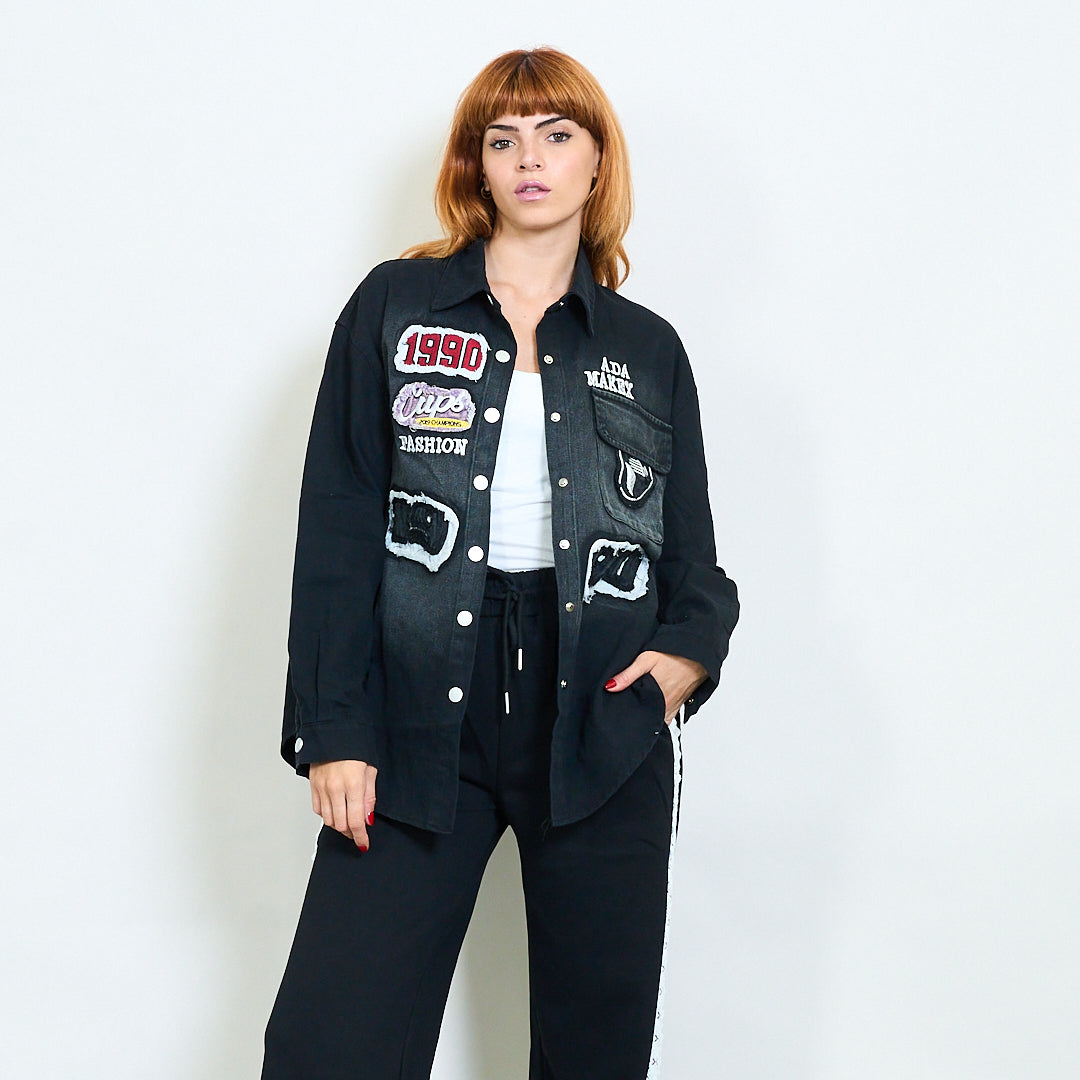 رقعة "1990 Fashion" Graphic Denim Shirt Jacket بالجملة