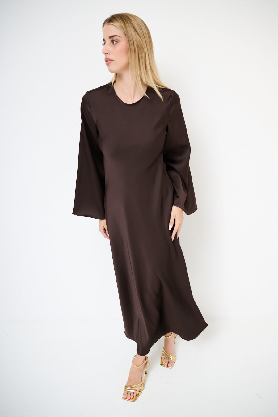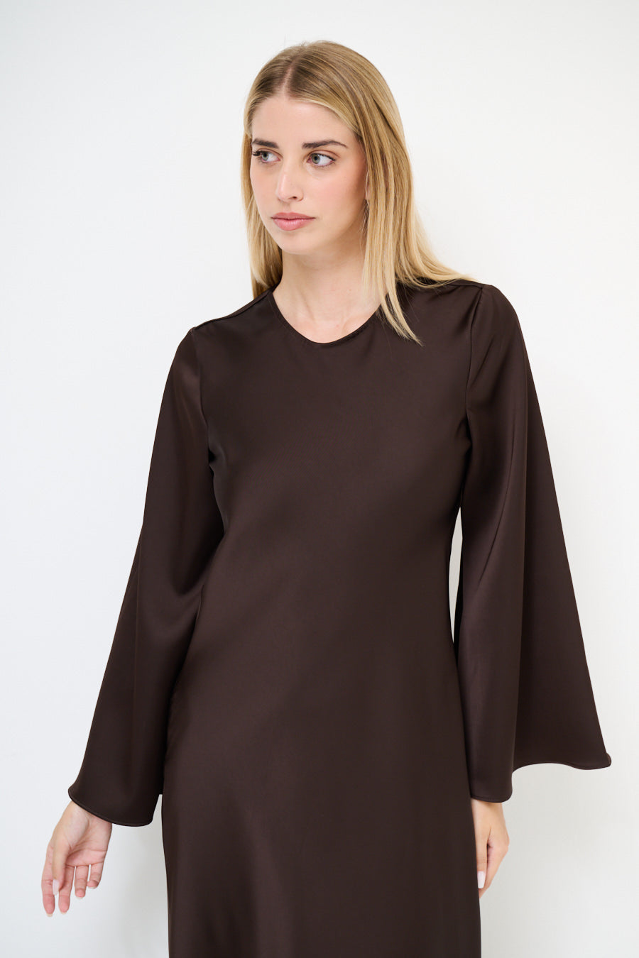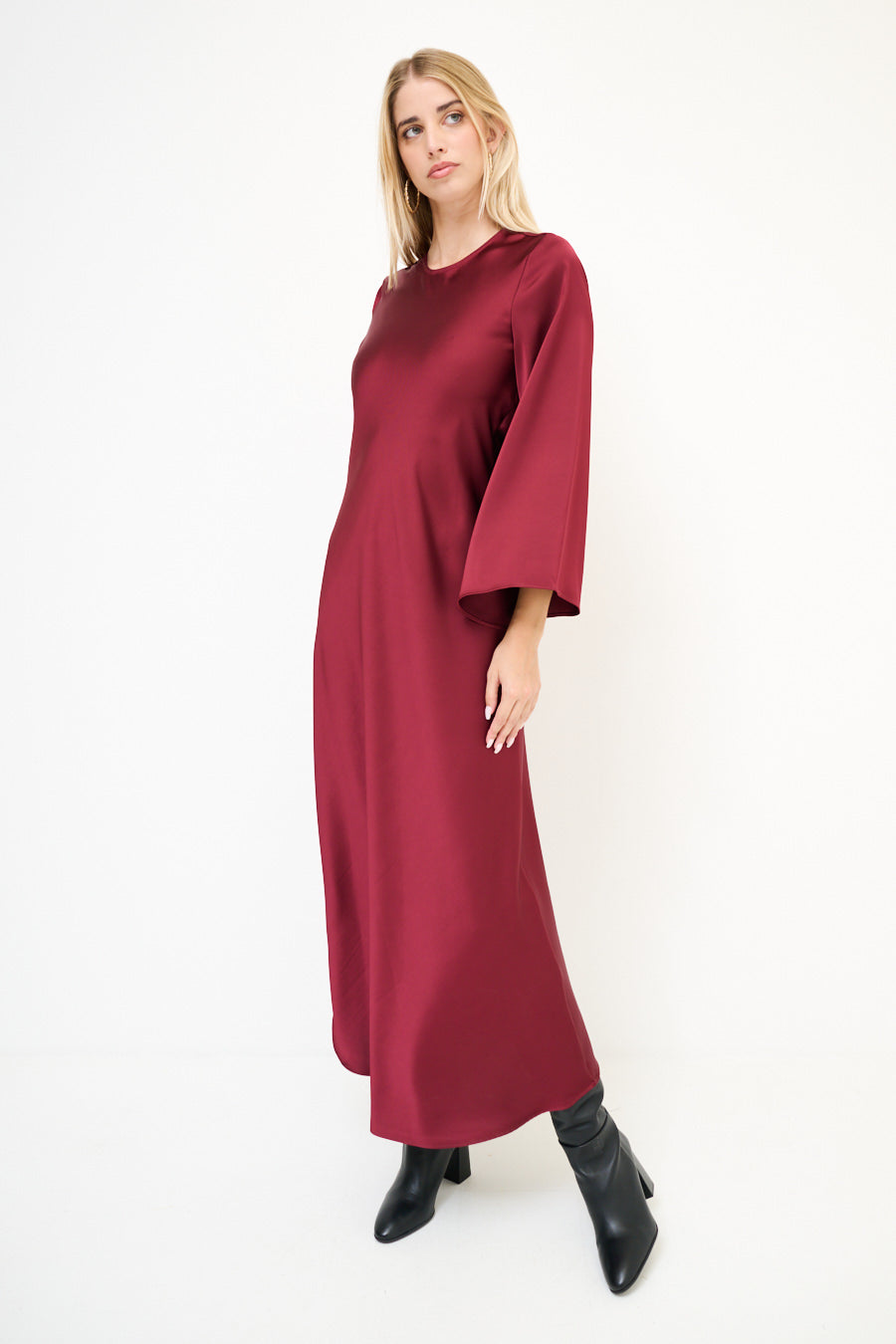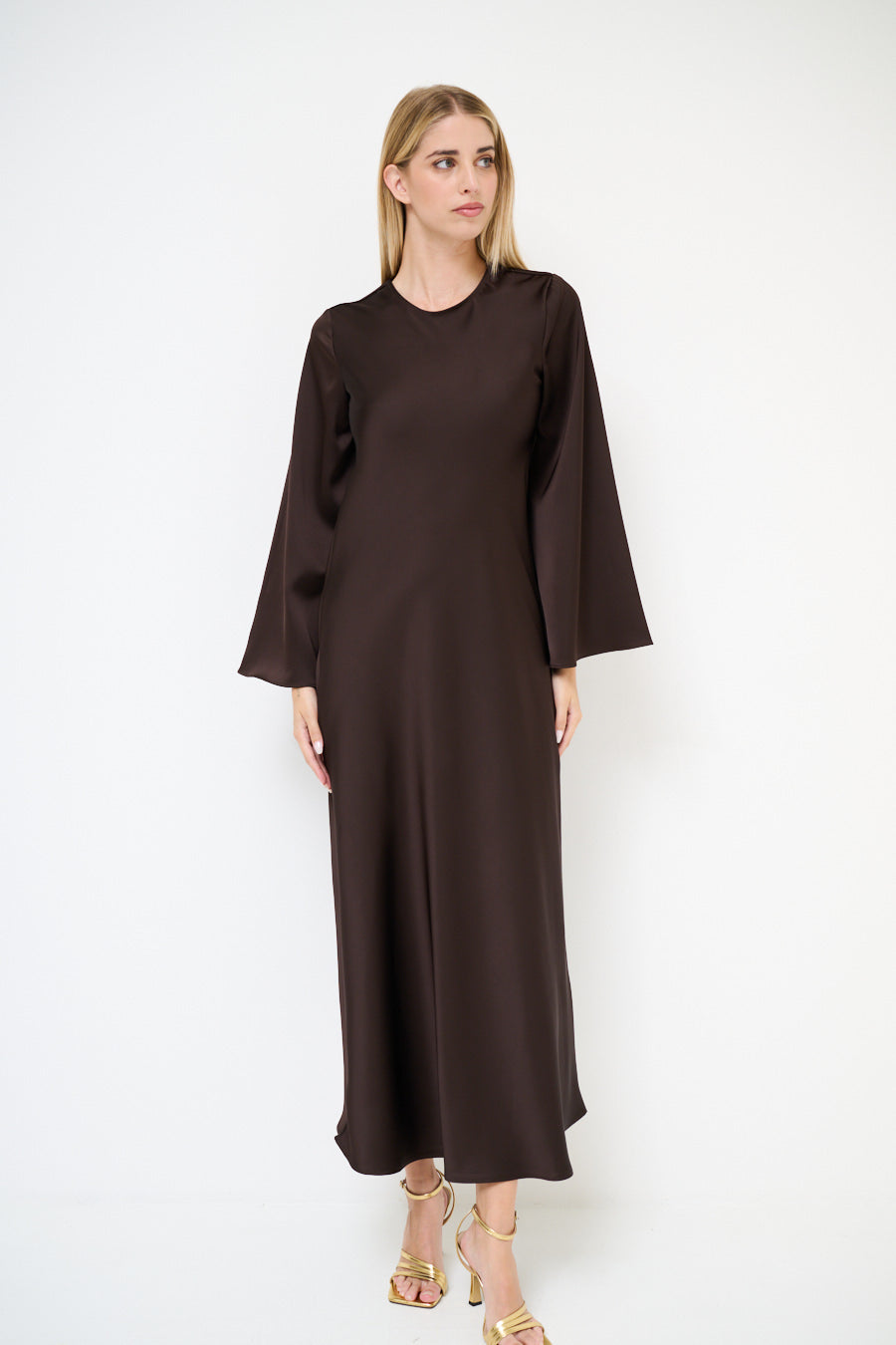 اندلعت طويلة الأكمام الساتان-تأثير الفستان ماكسي بالجملة