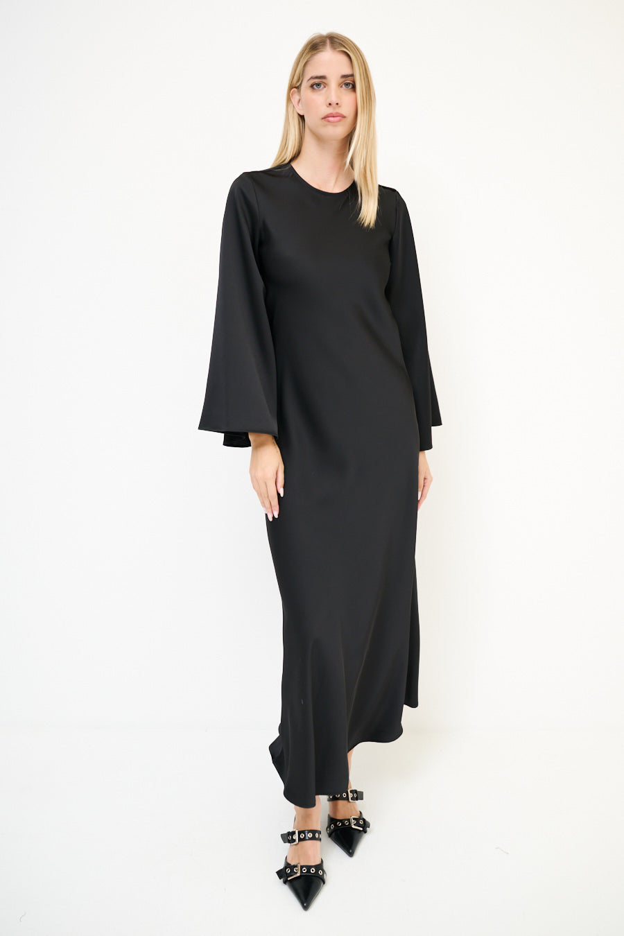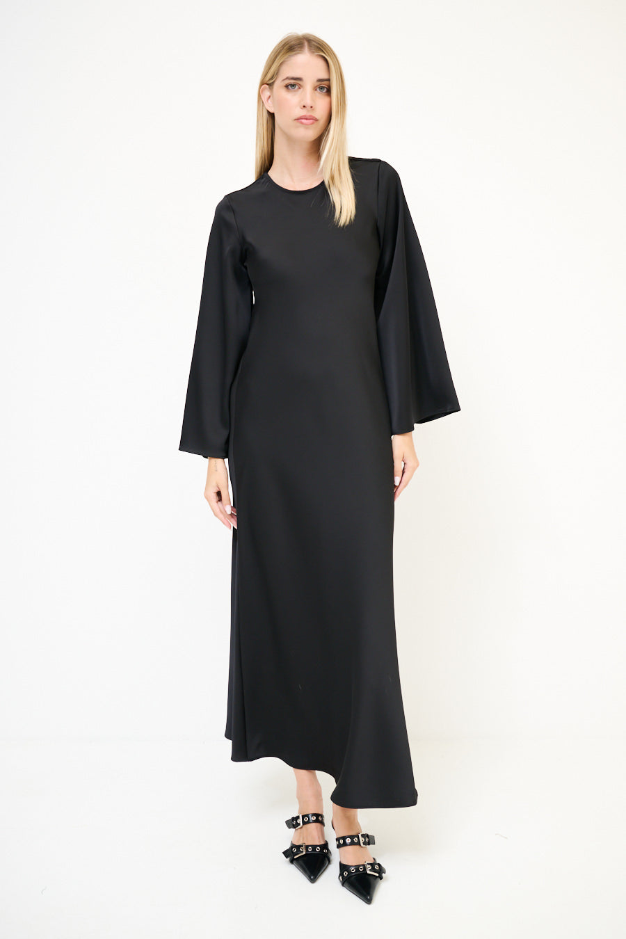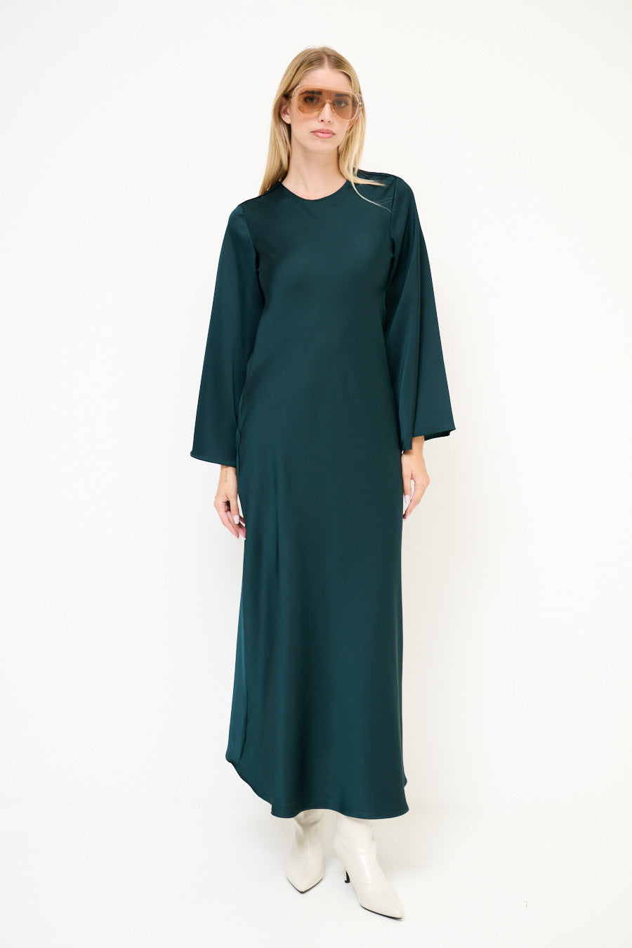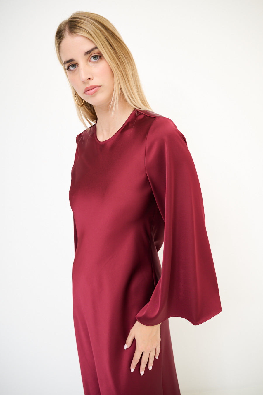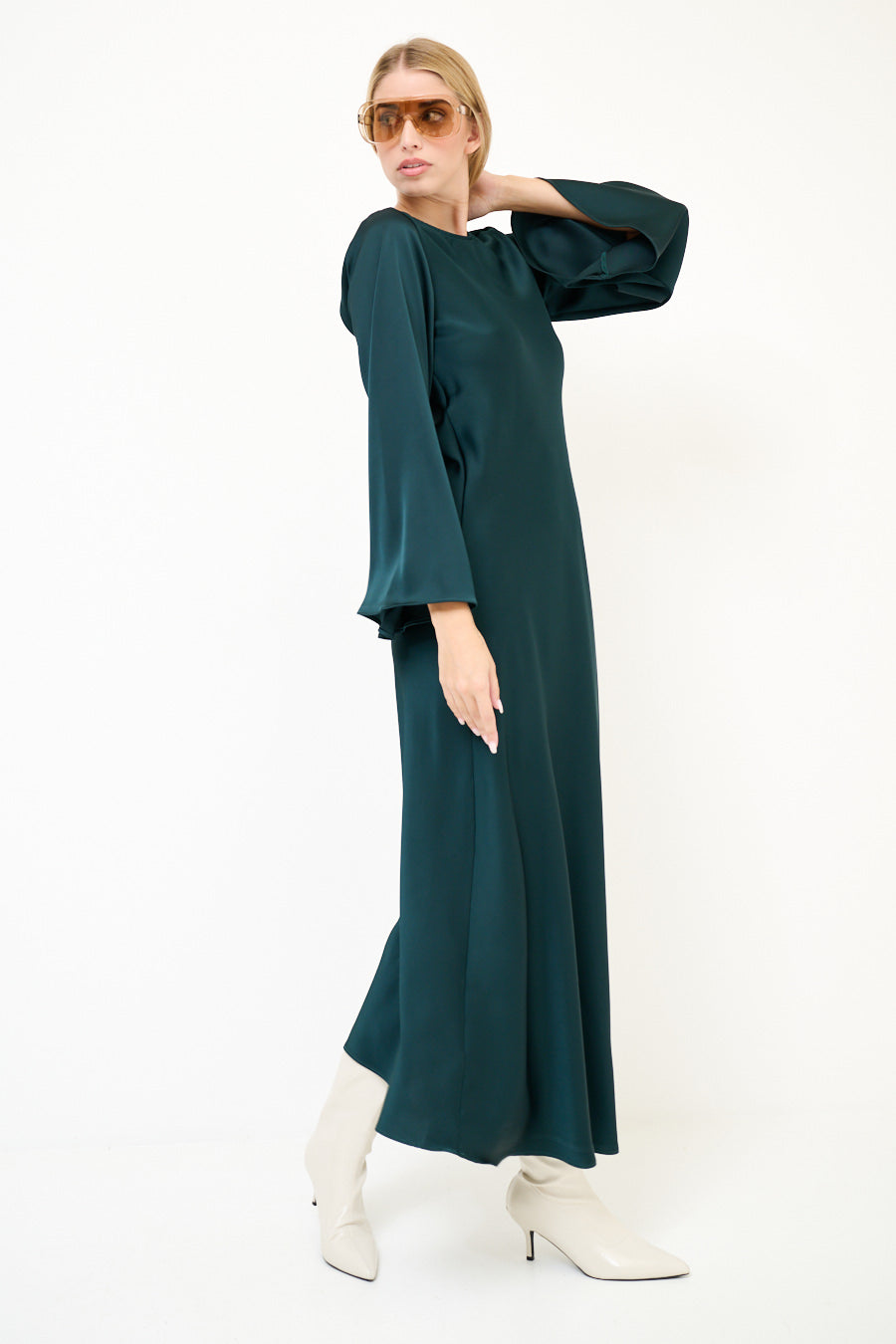 اندلعت طويلة الأكمام الساتان-تأثير الفستان ماكسي بالجملة