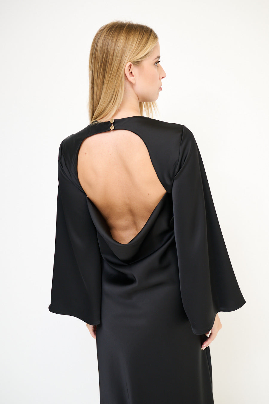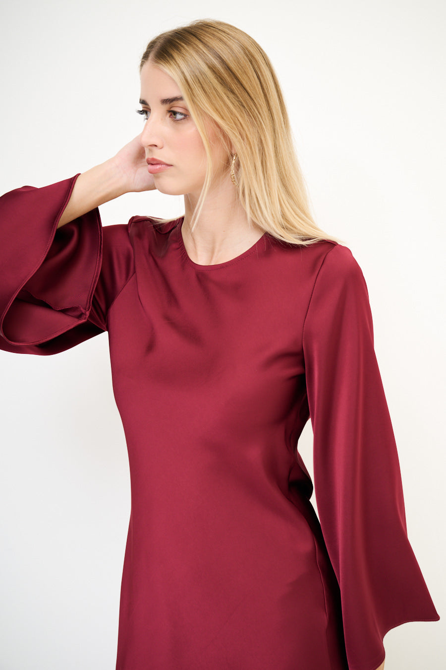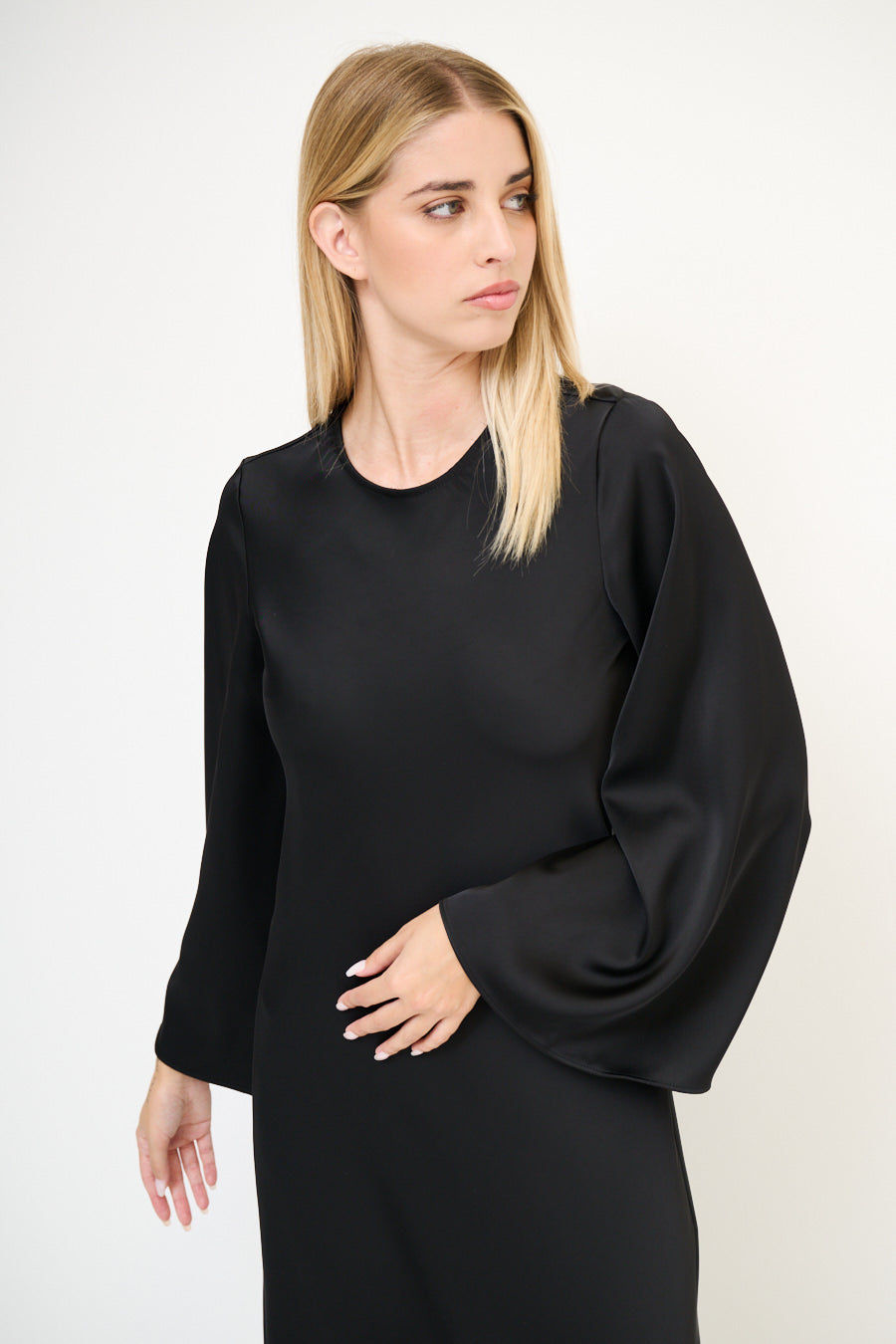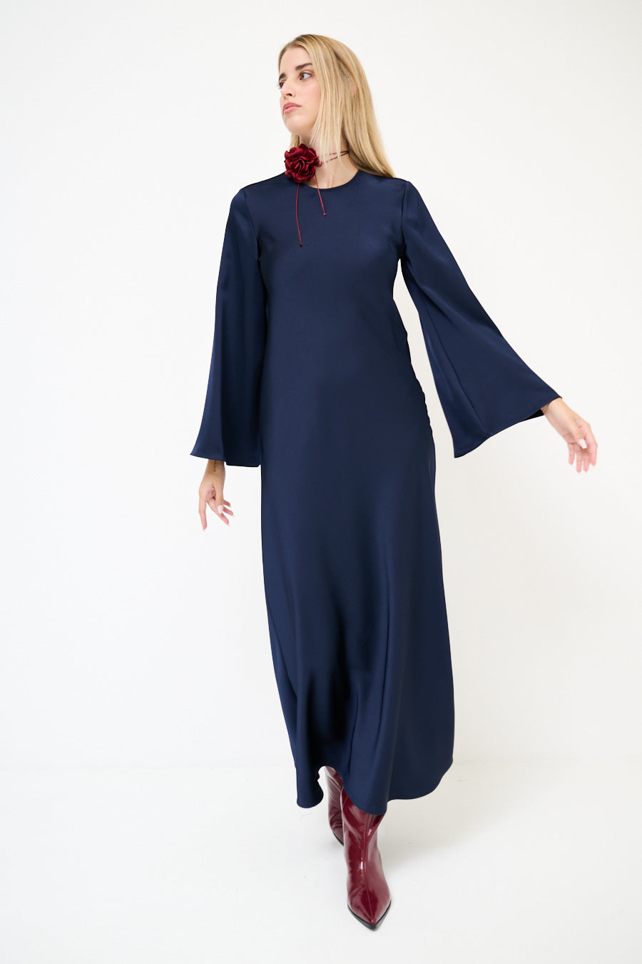اندلعت طويلة الأكمام الساتان-تأثير الفستان ماكسي بالجملة