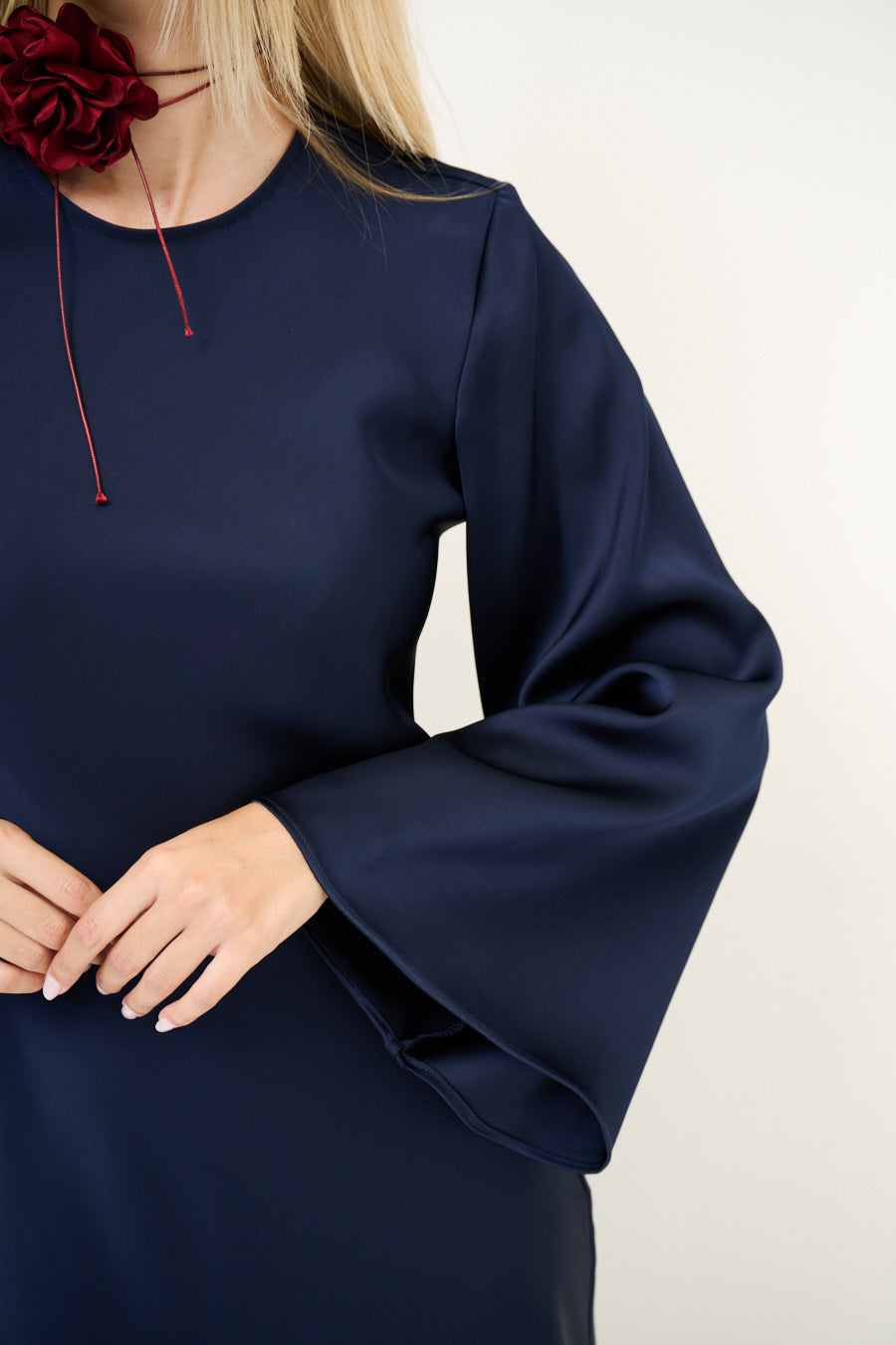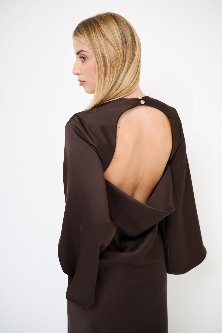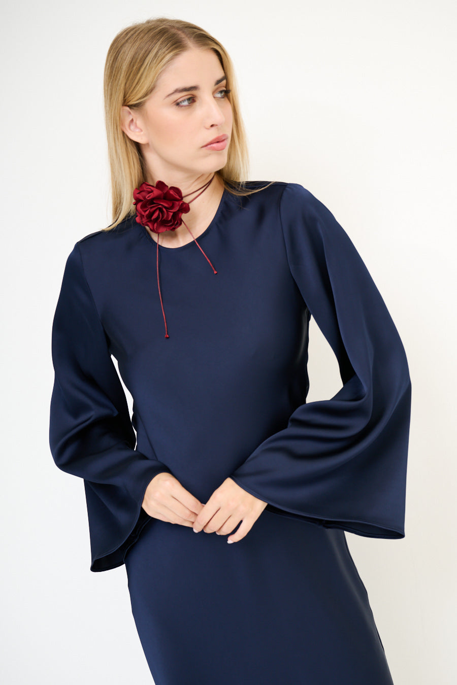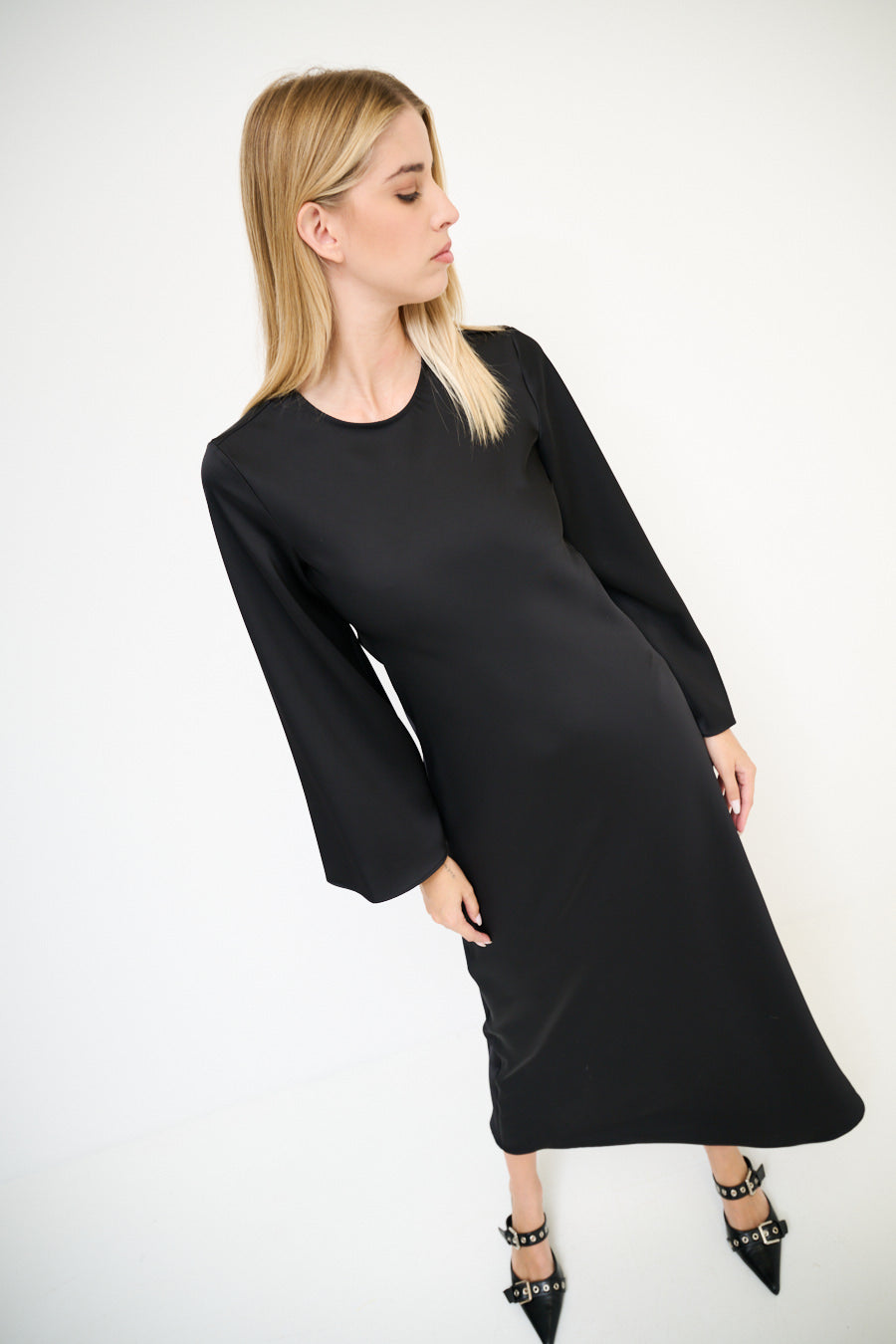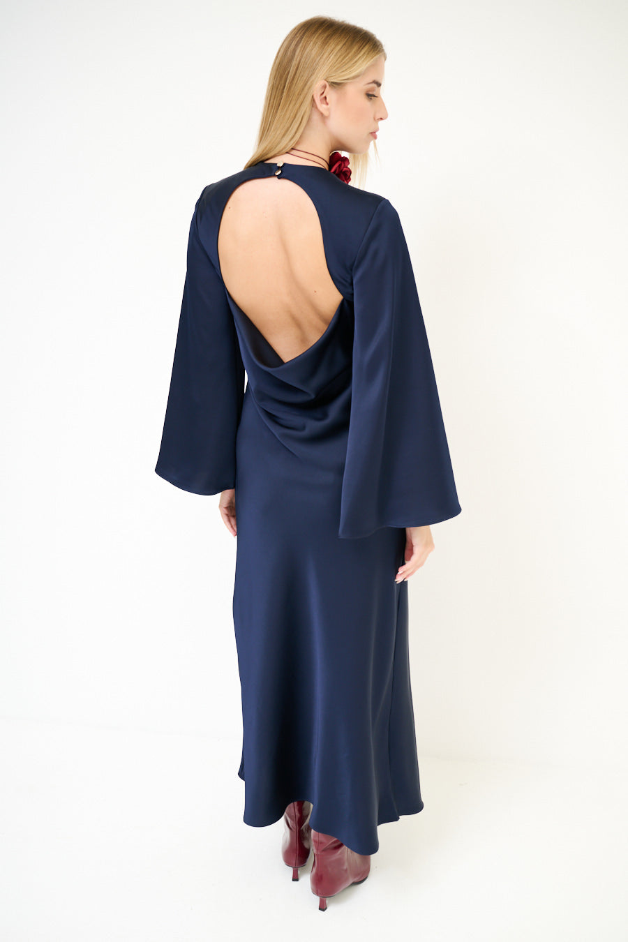 اندلعت طويلة الأكمام الساتان-تأثير الفستان ماكسي بالجملة