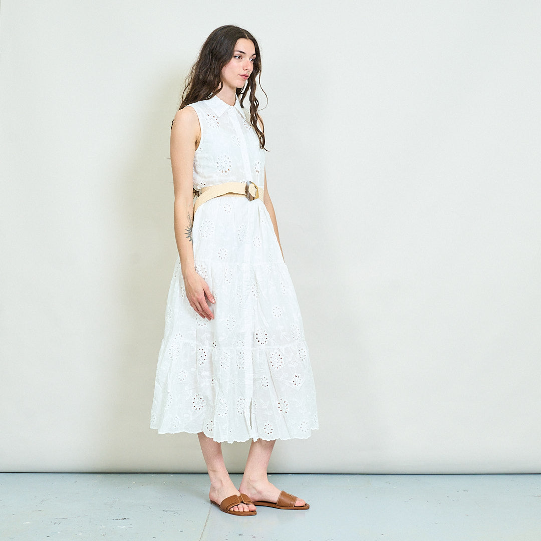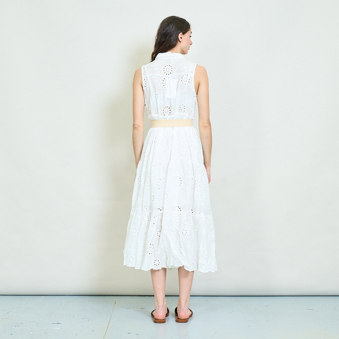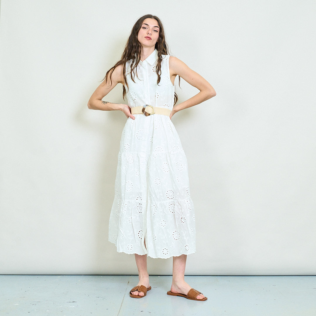 - يتميز بتصميم بلا أكمام مع طوق قميص هش