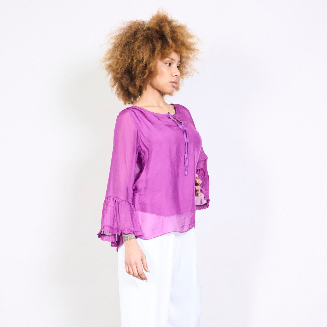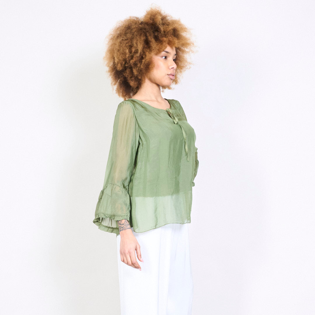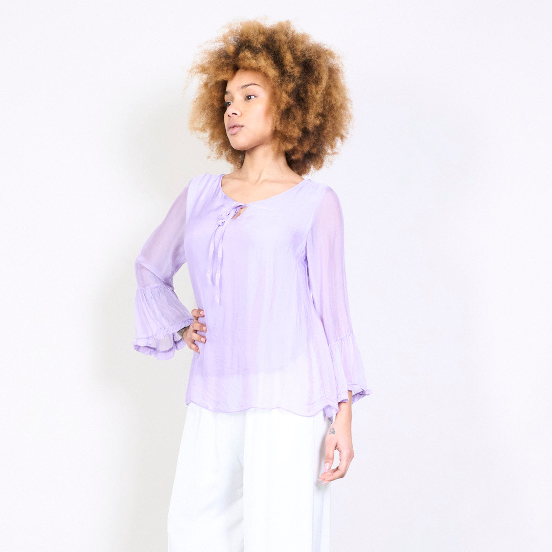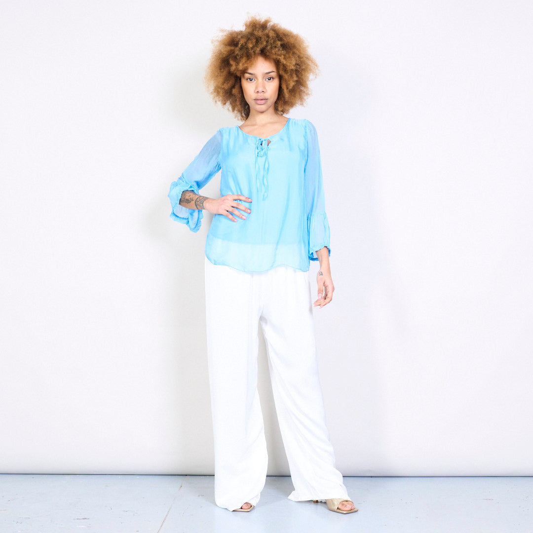 بلوزة شرق الرقبة مع الأكمام المذهلة بالجملة
