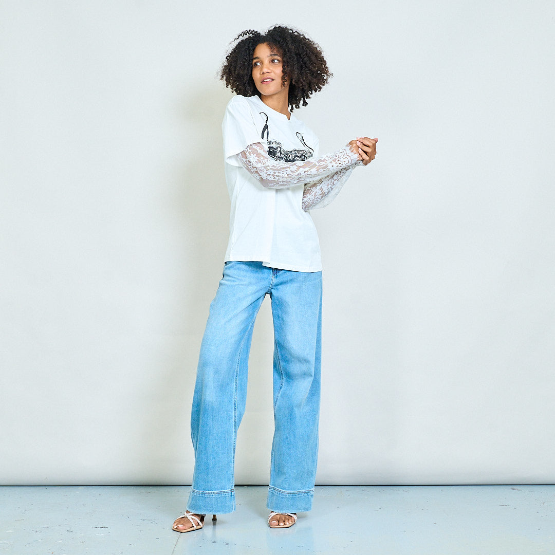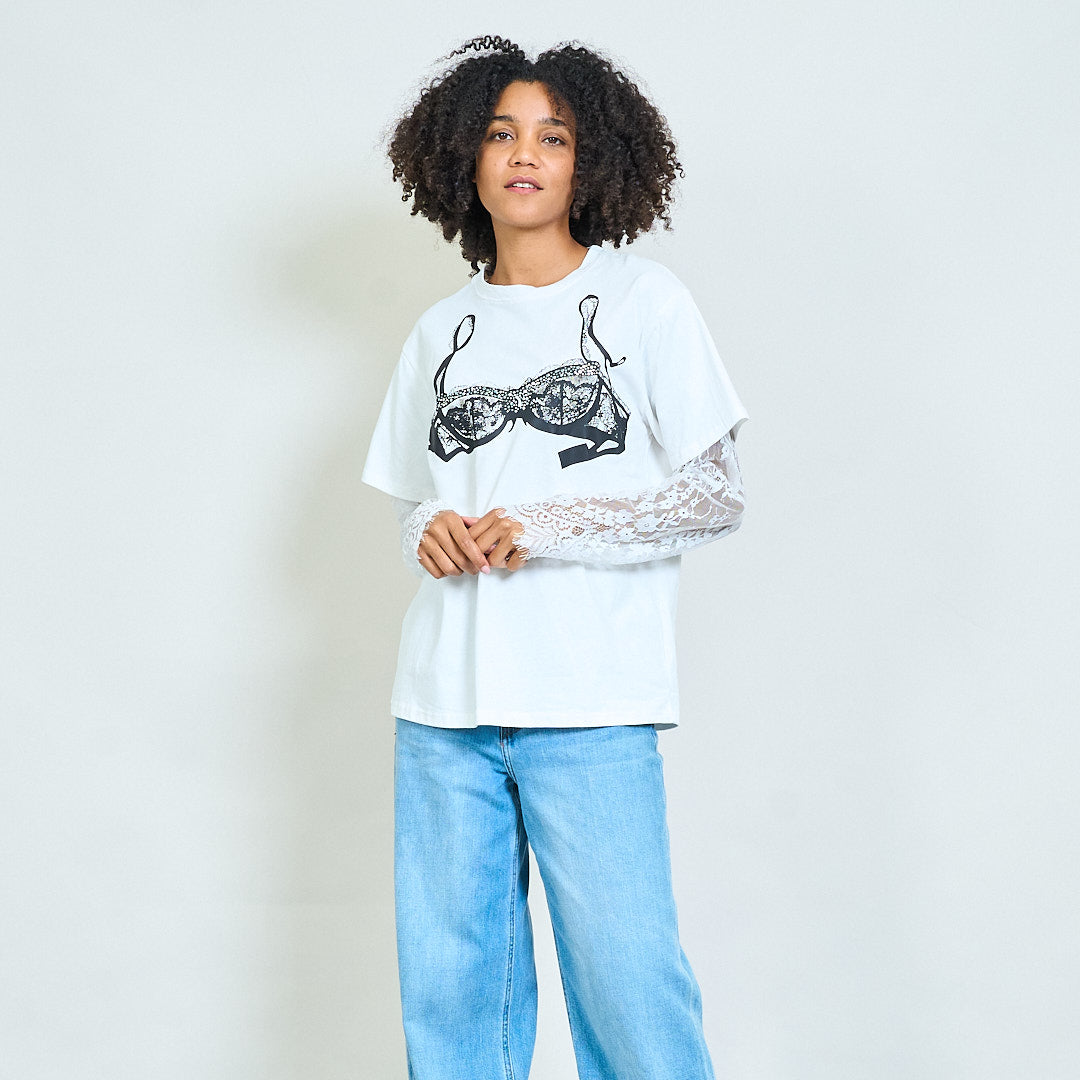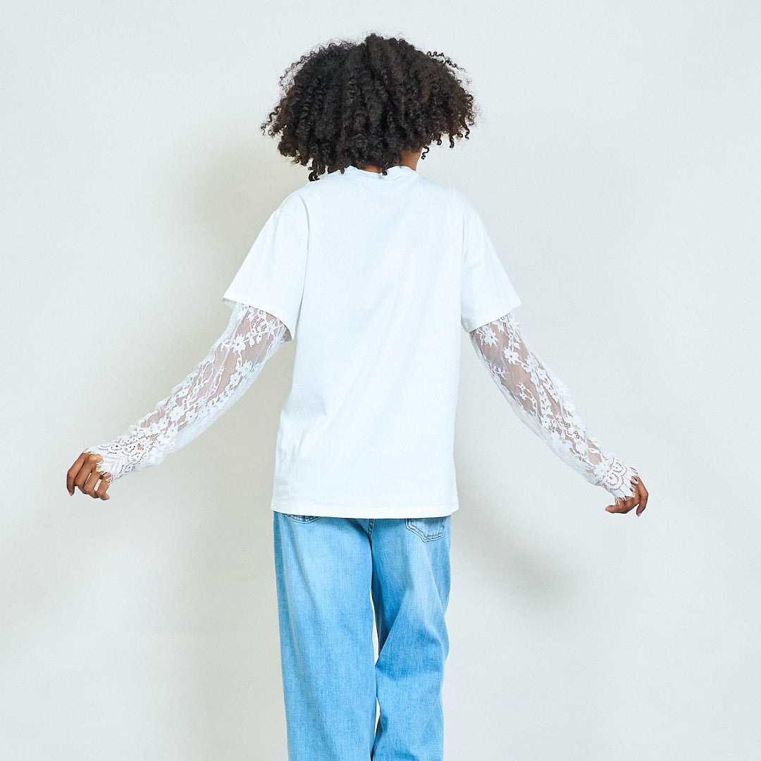 تي شيرت صدرية صدرية دانتيل مع أكمام شبكية بالجملة