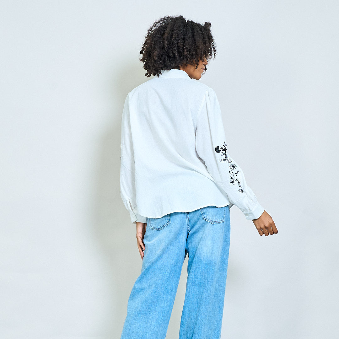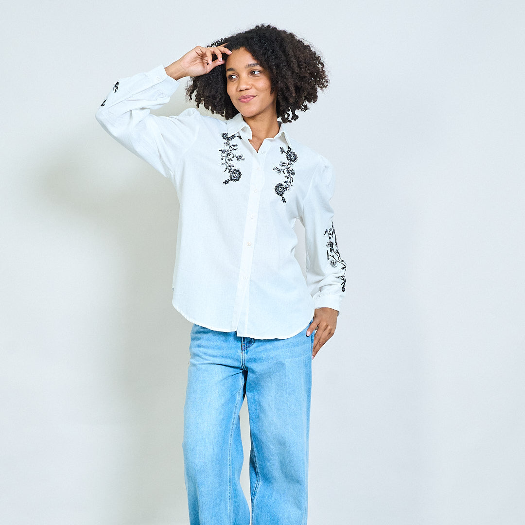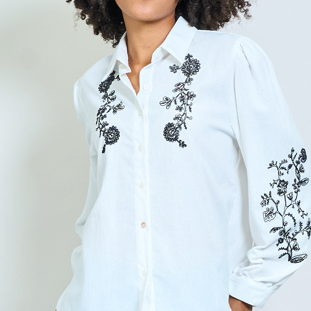 زهور كرمة مطرزة على الأكمام نفخة القميص بالجملة
