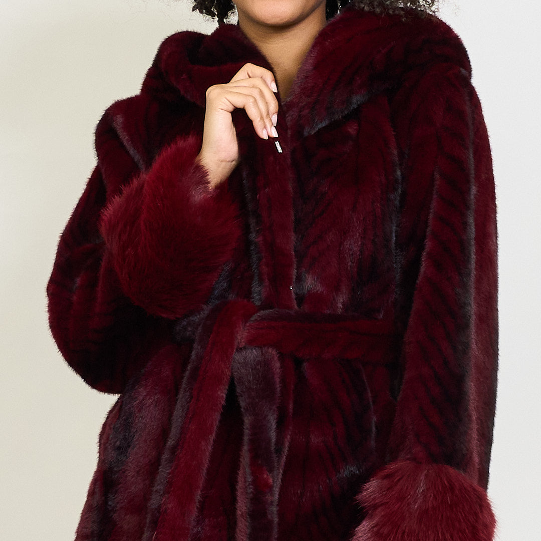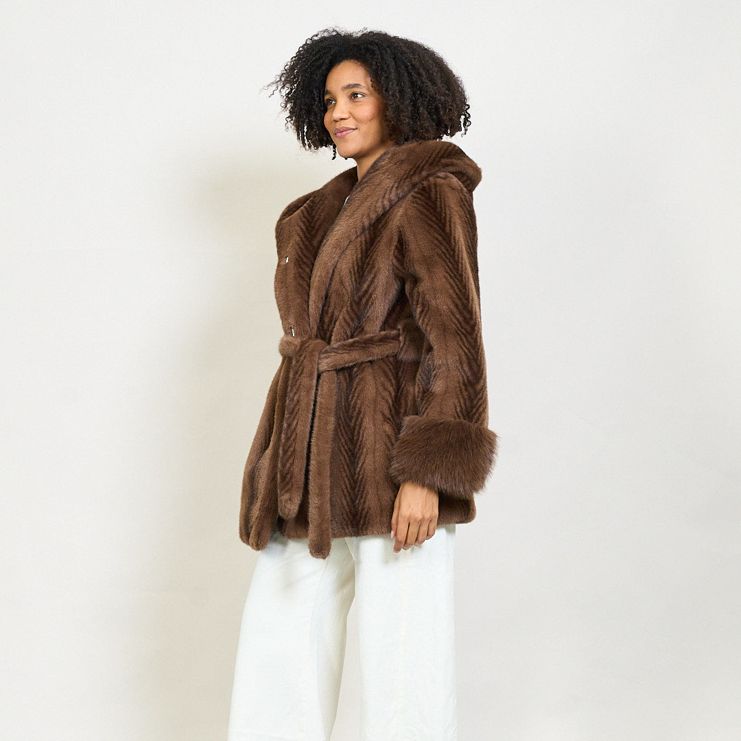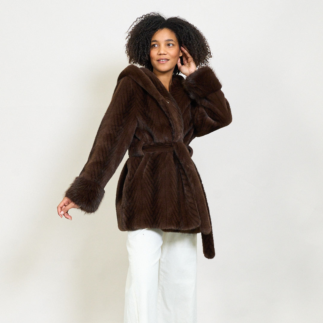 سترة فرو شيفرون فو مع غطاء محرك السيارة والأكمام المغطاة بالجملة