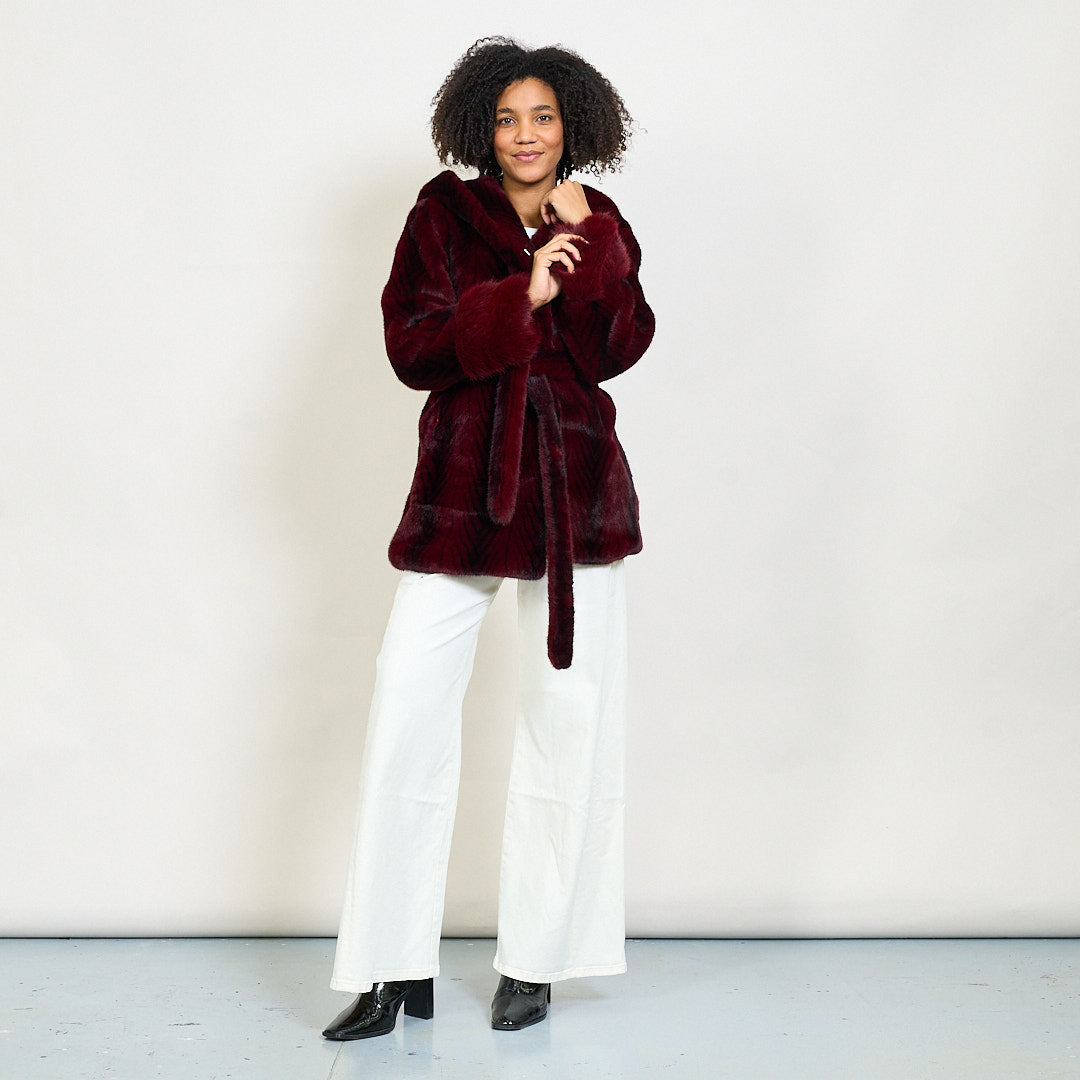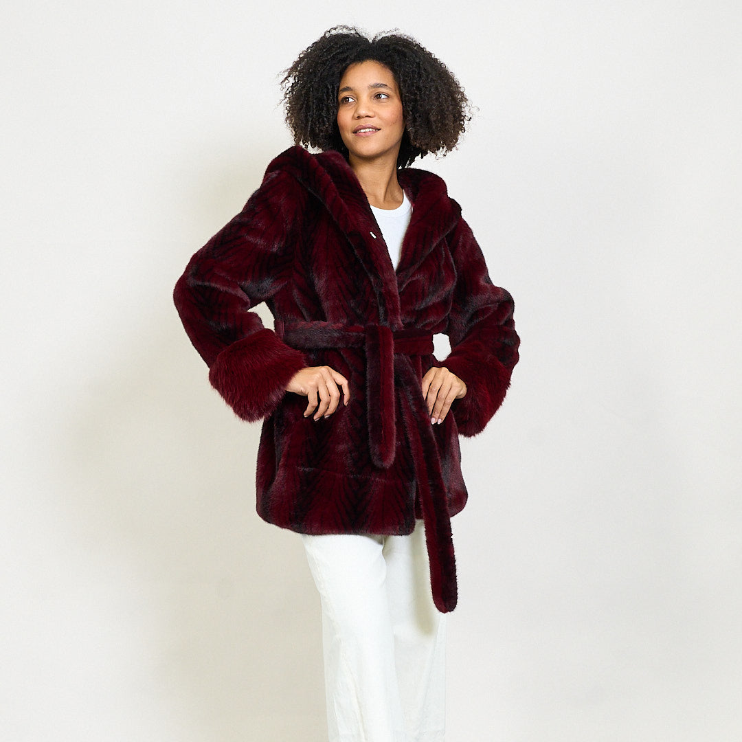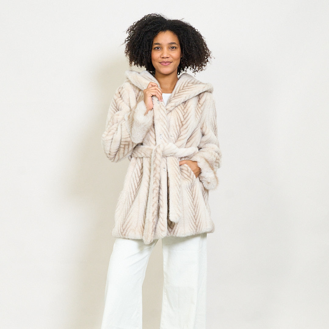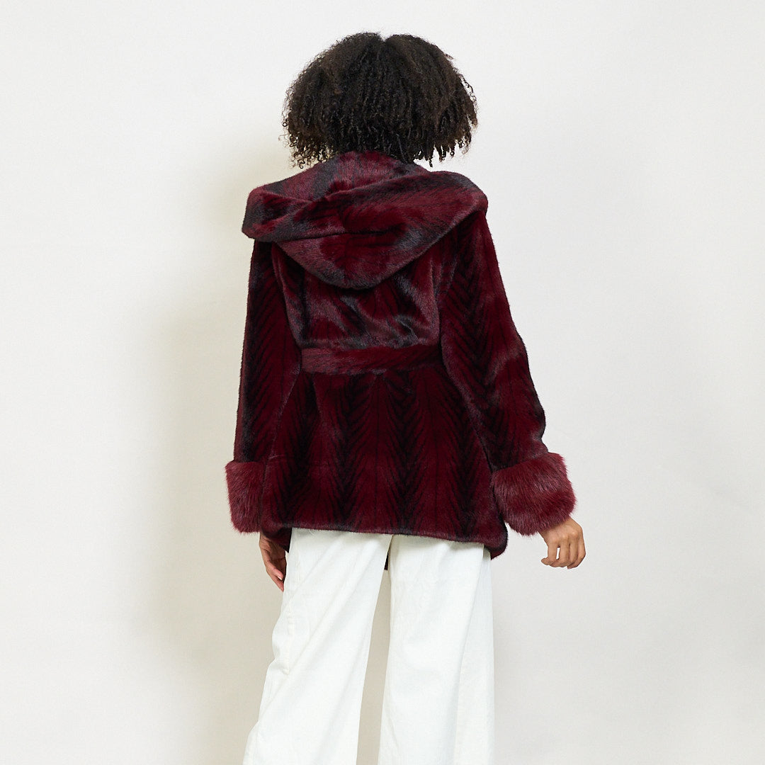 سترة فرو شيفرون فو مع غطاء محرك السيارة والأكمام المغطاة بالجملة